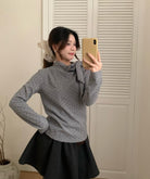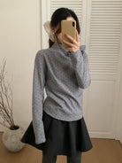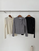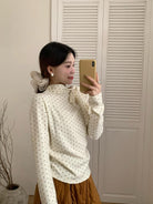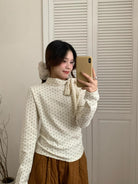 【C7914】韓系波點綁帶氣質休閒上衣女冬季新款顯瘦簡約設計感疊穿打底衫