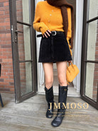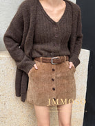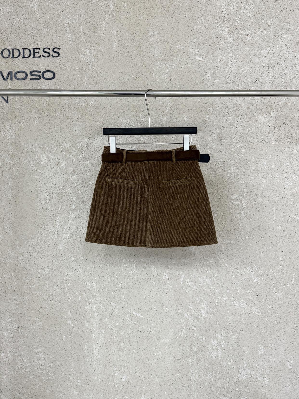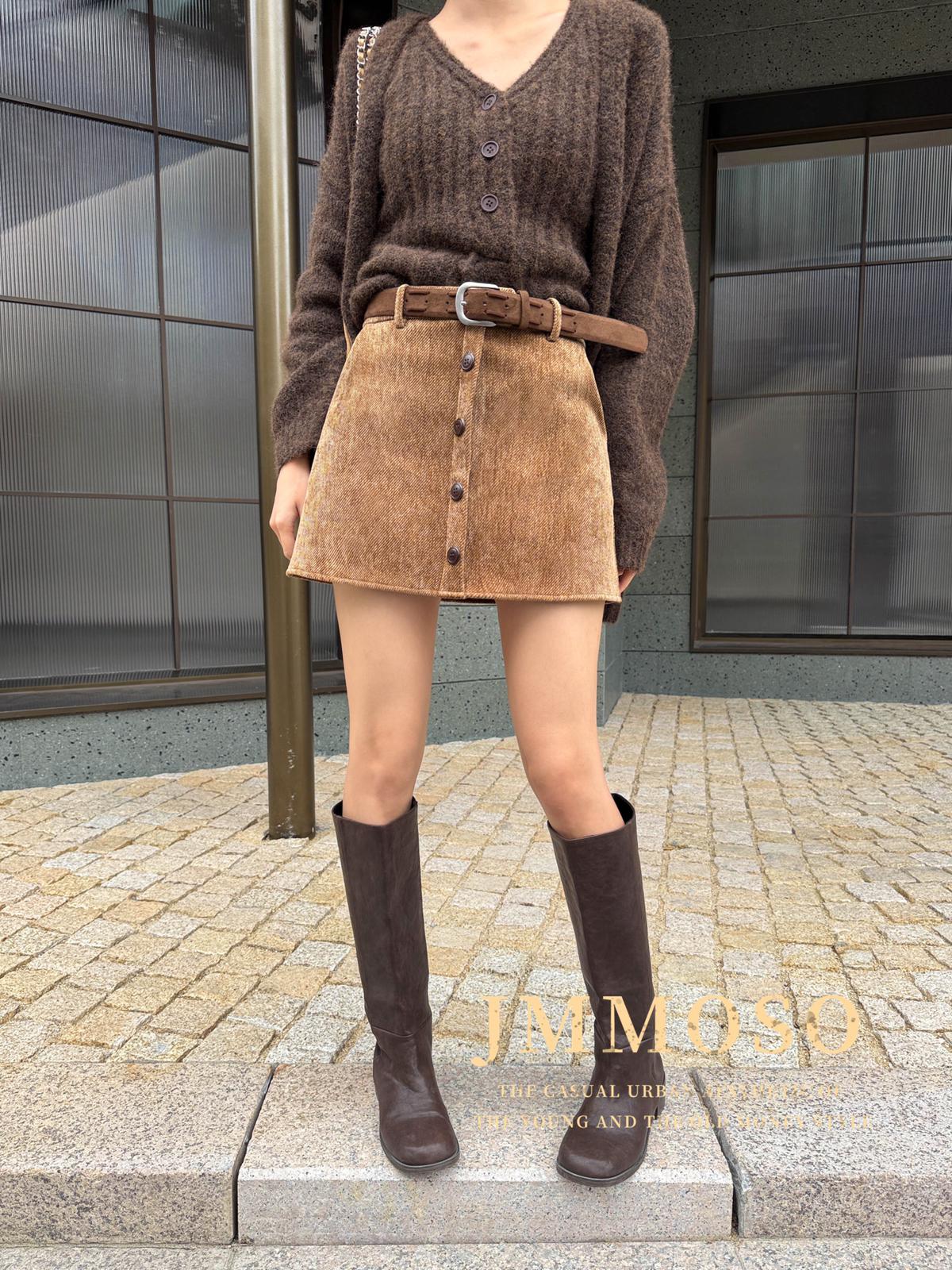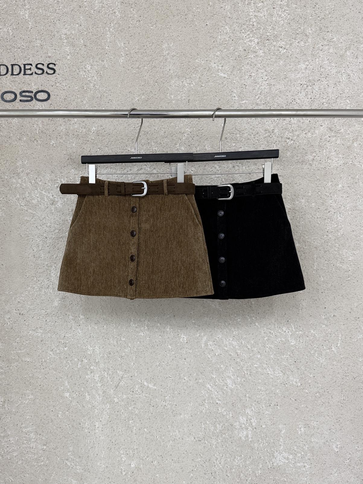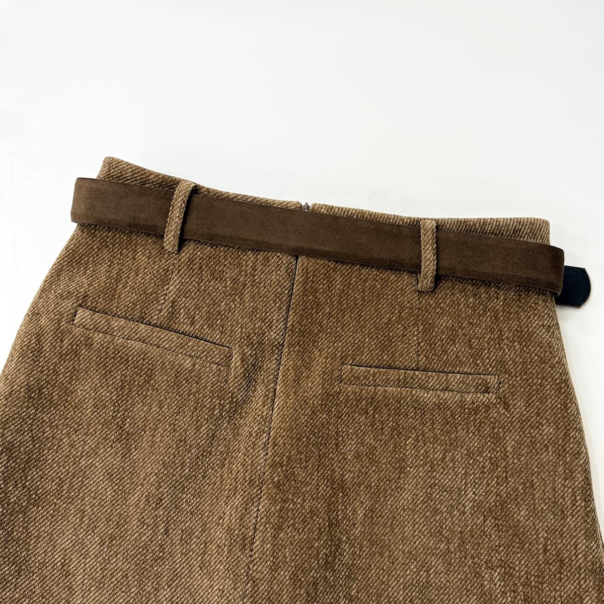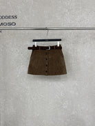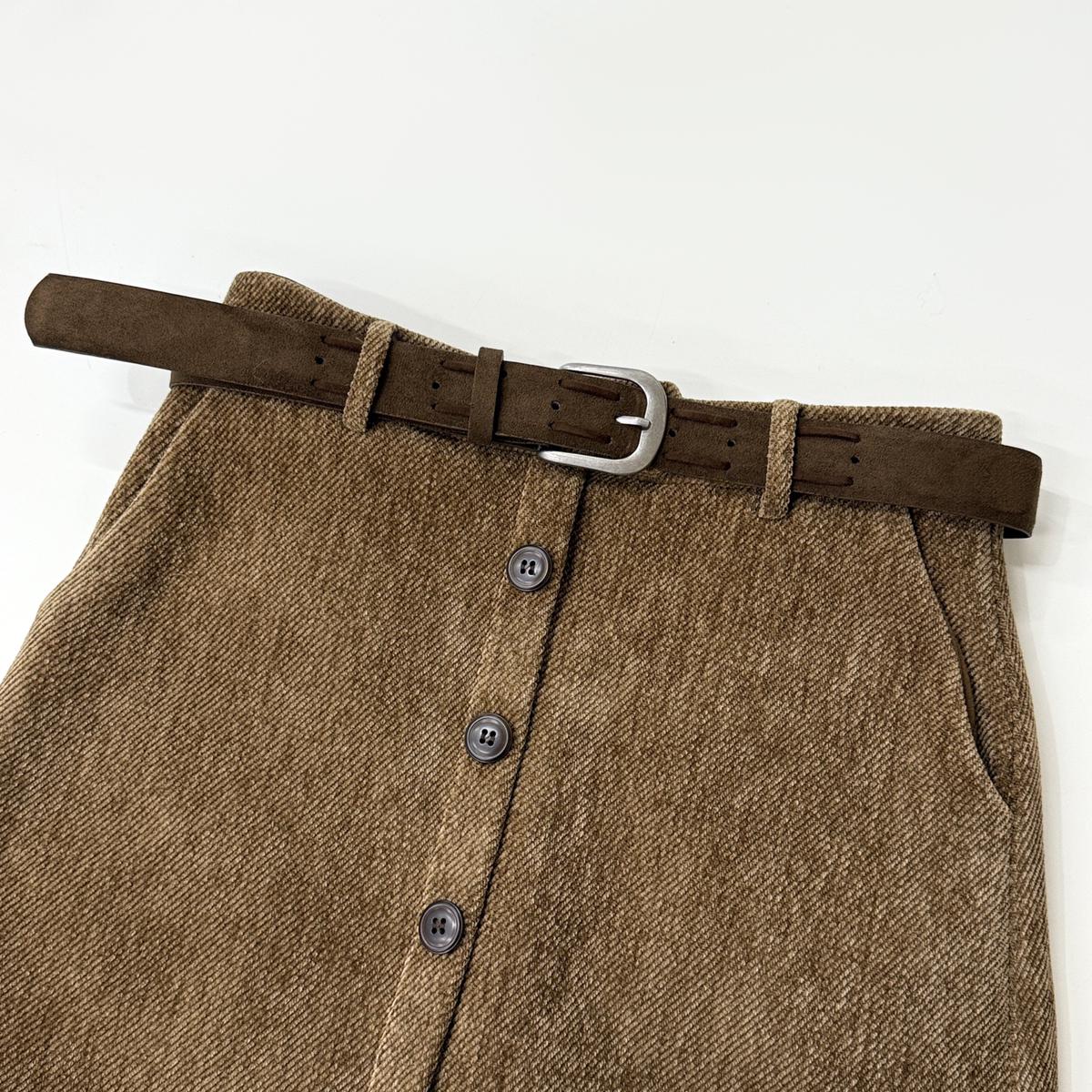 3. 【C7918】爆款神裙!韓版簡約通勤復古仿燈芯絨高腰單排扣顯瘦A字短裙半身裙(配腰帶)