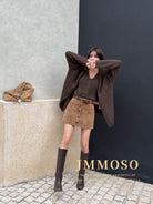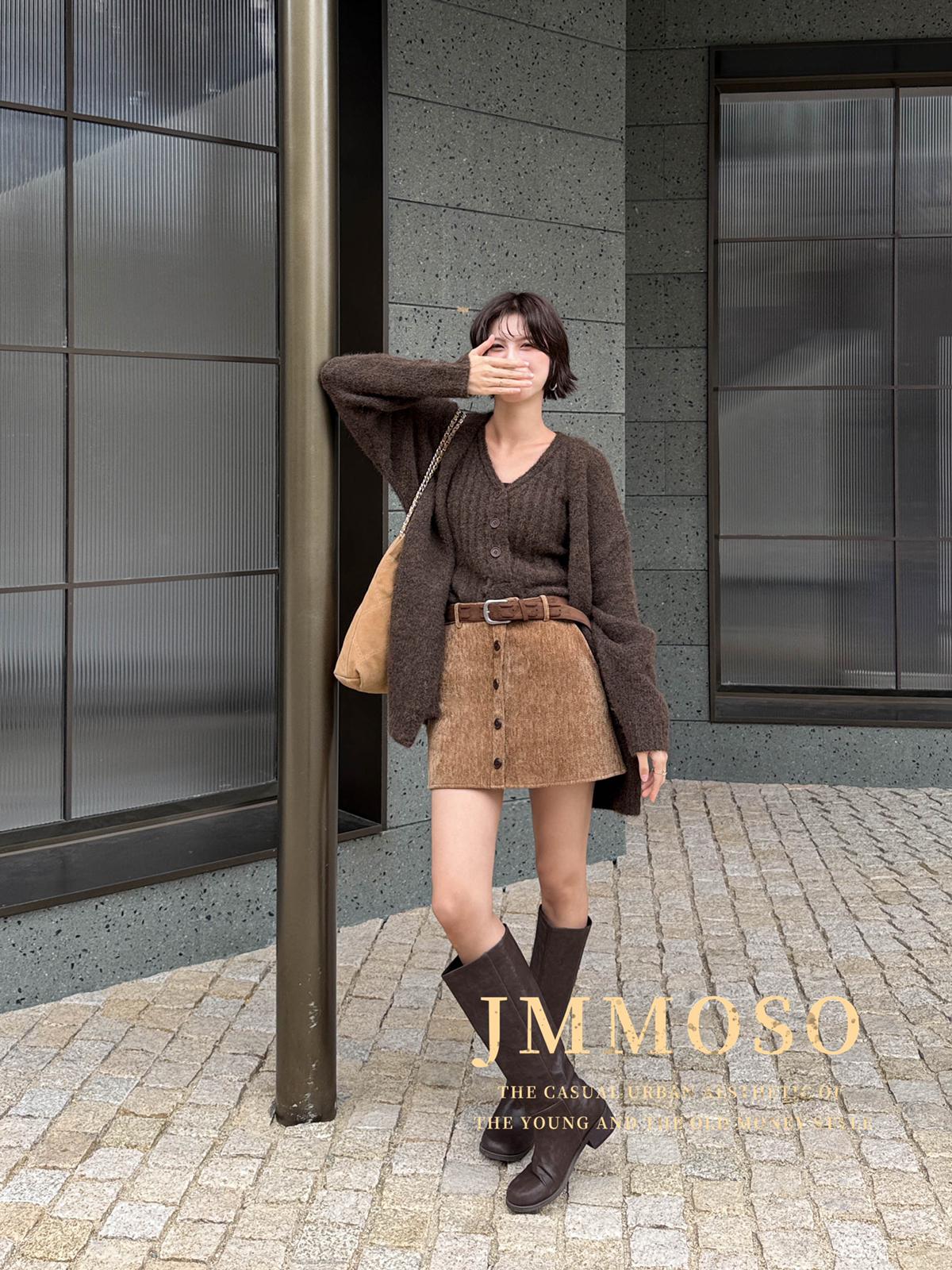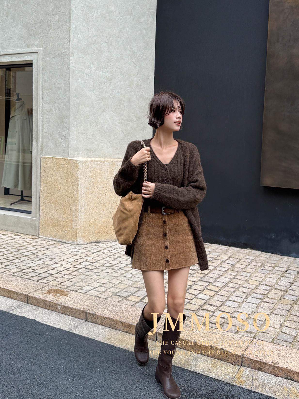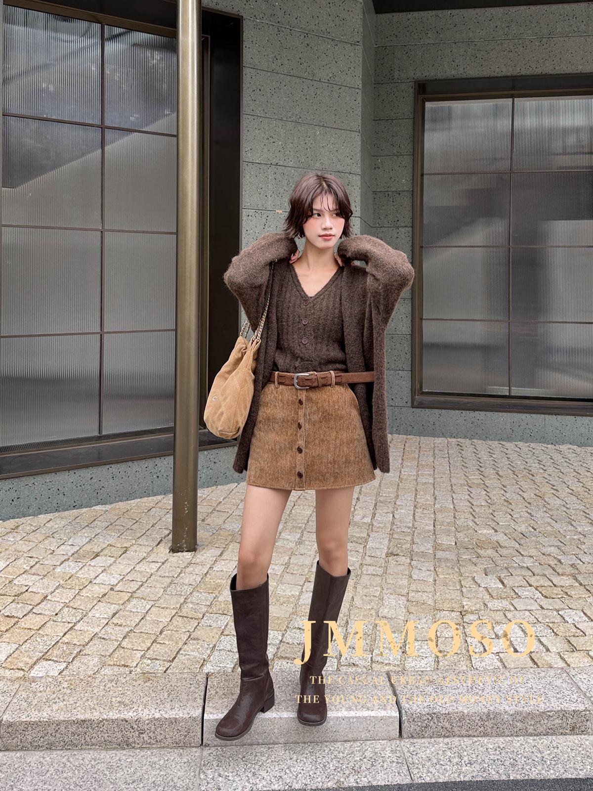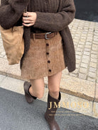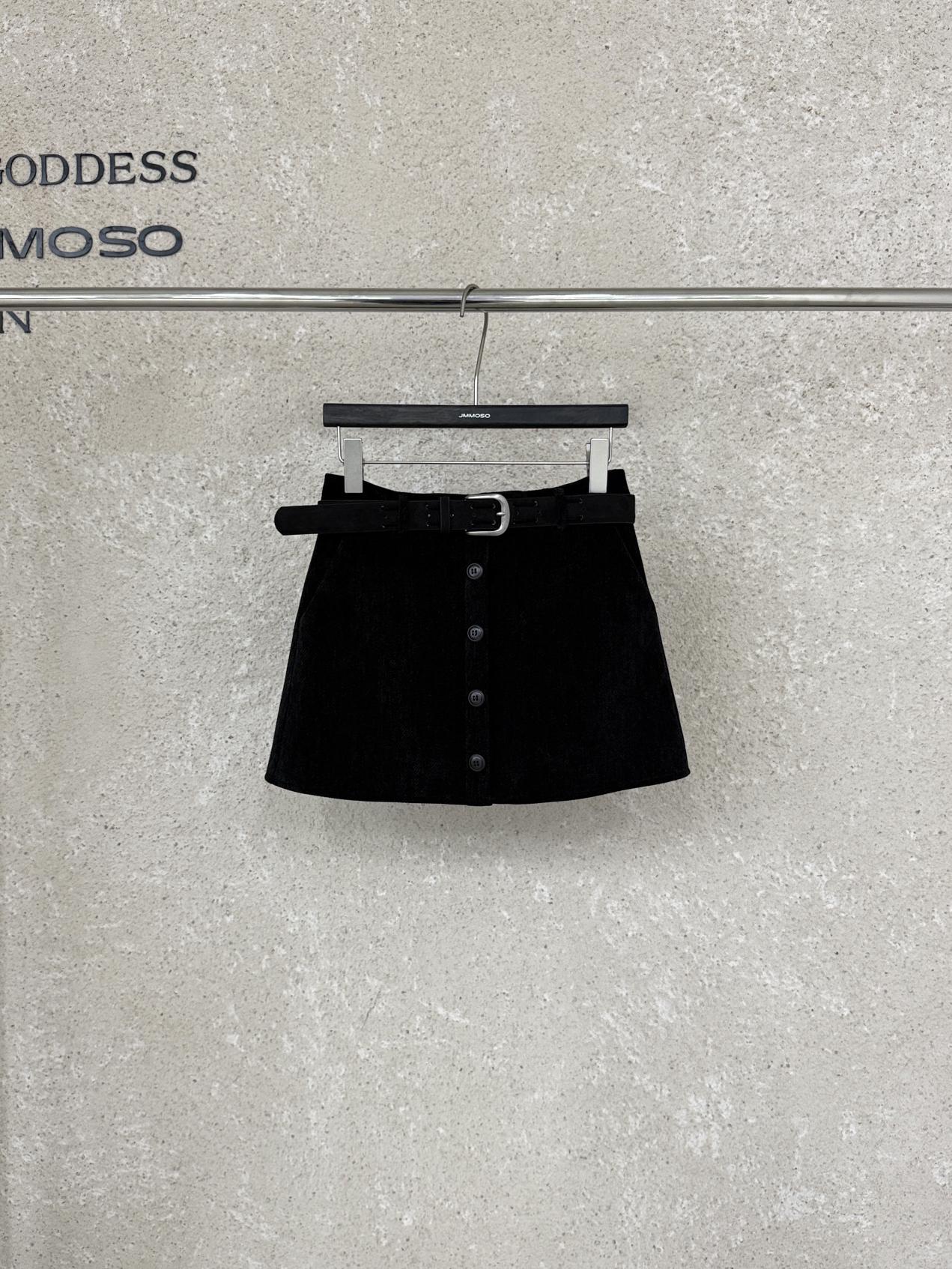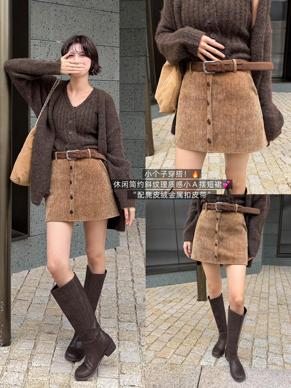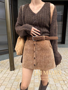 3. 【C7918】爆款神裙!韓版簡約通勤復古仿燈芯絨高腰單排扣顯瘦A字短裙半身裙(配腰帶)