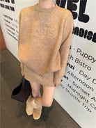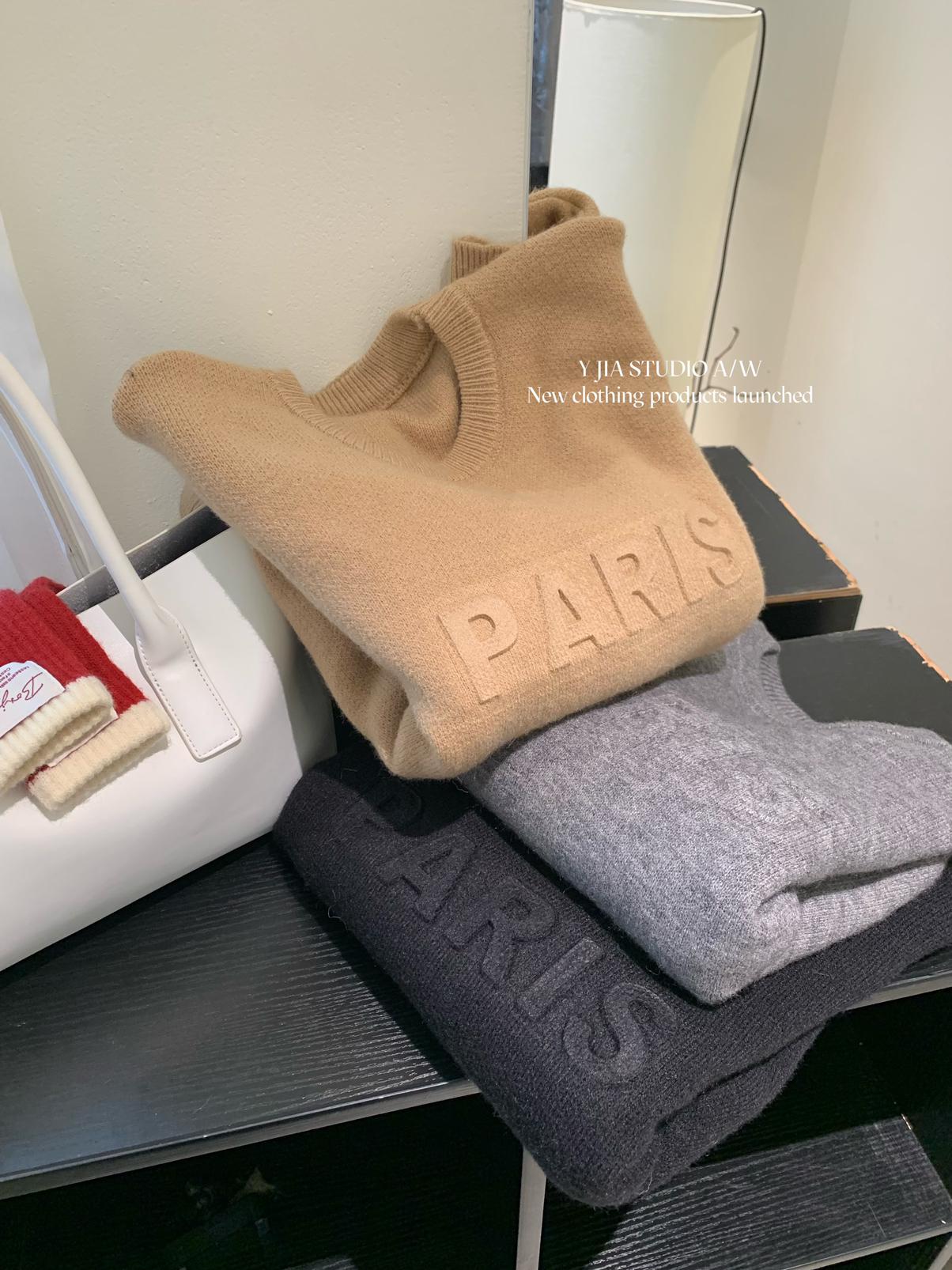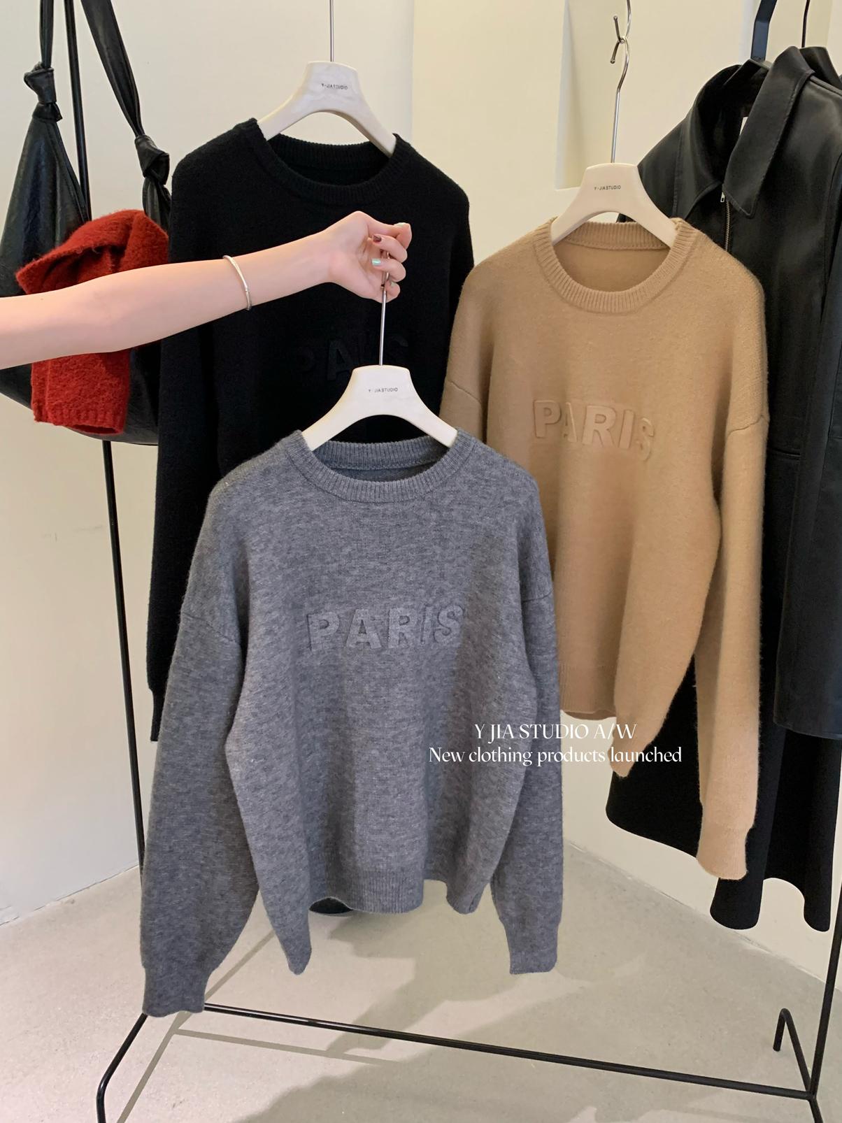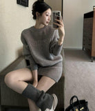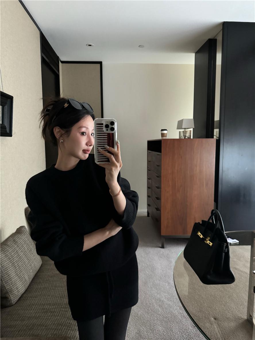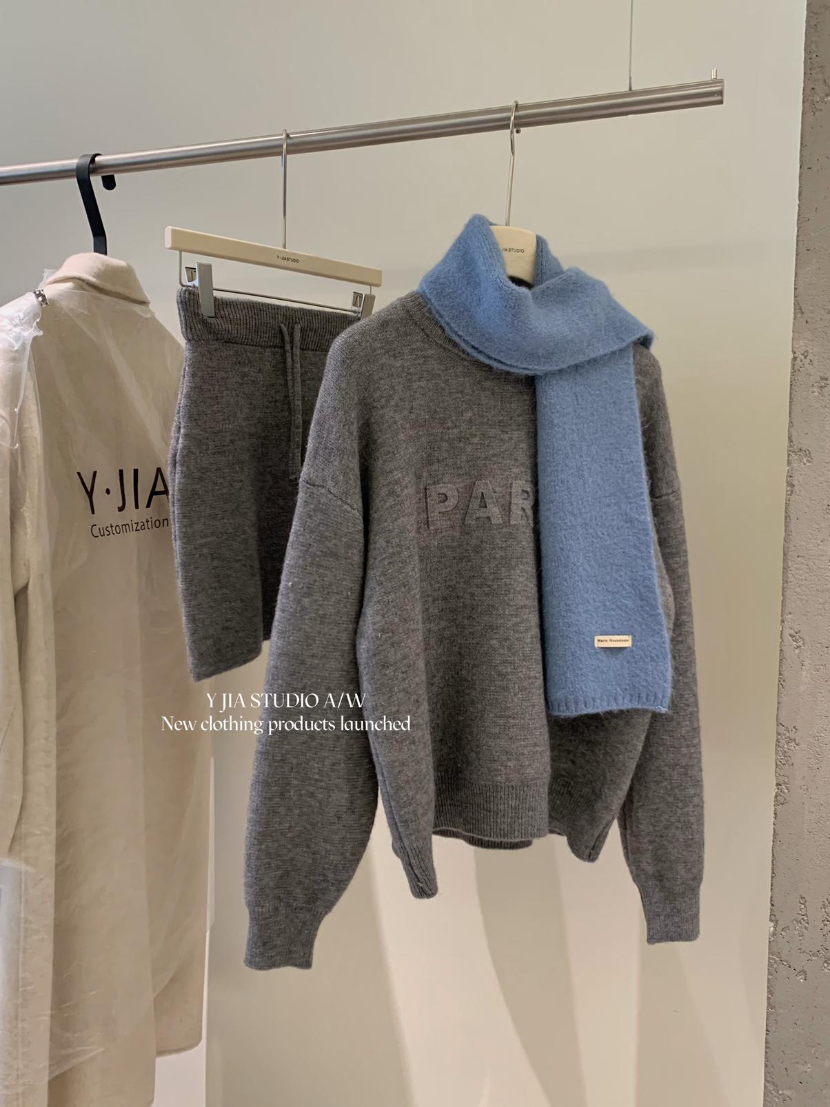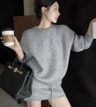【C7920】高級感休閒立體字母壓印套頭毛衣+高腰顯瘦包臀短裙套裝