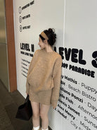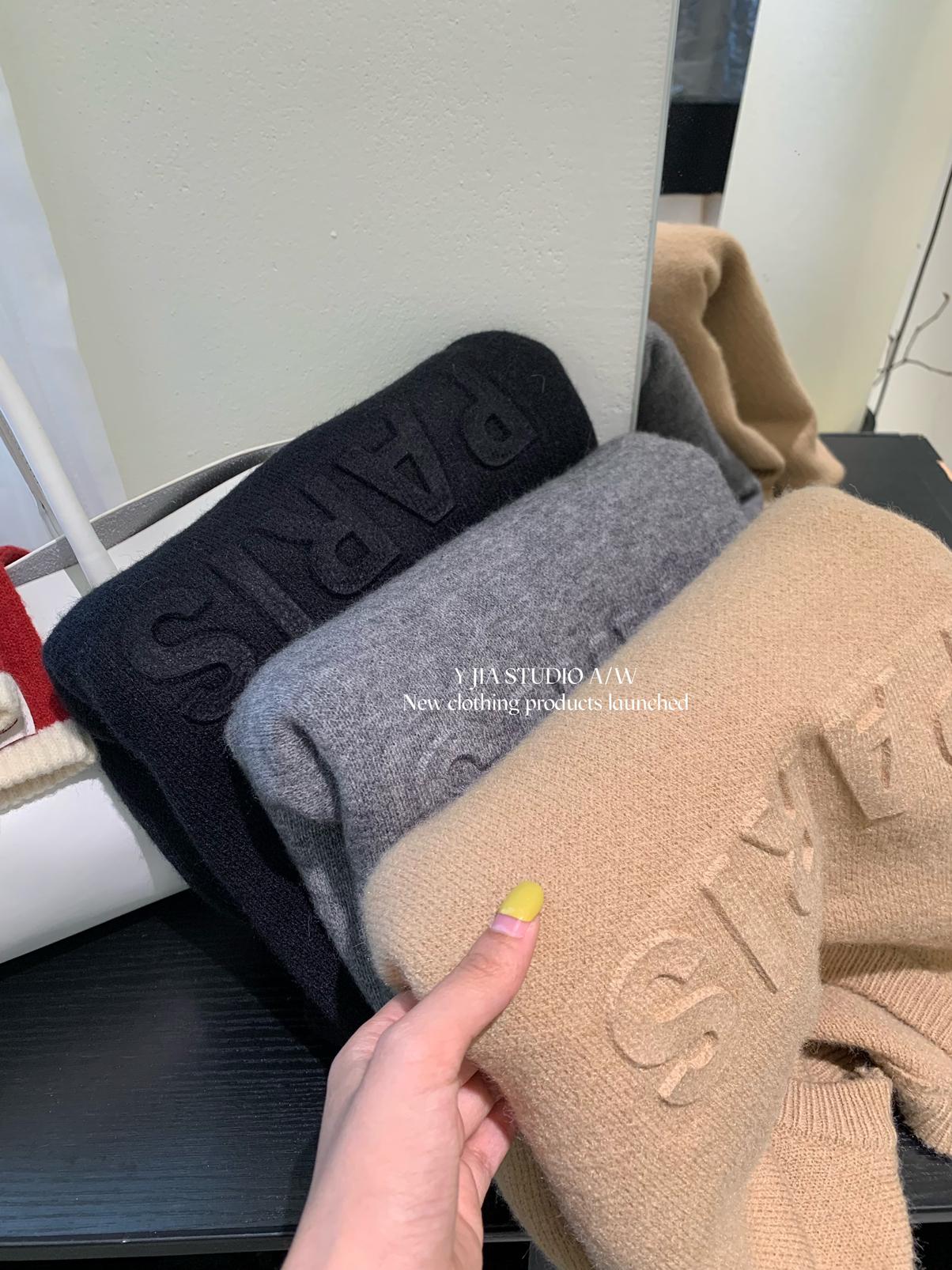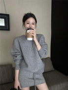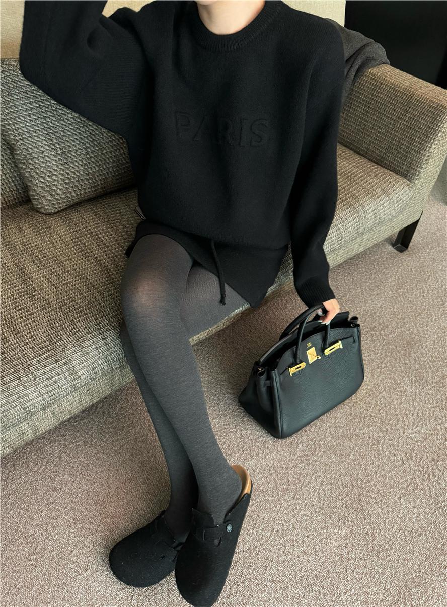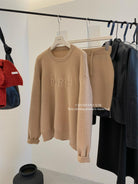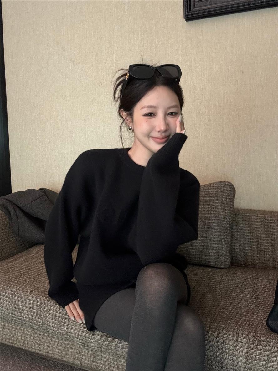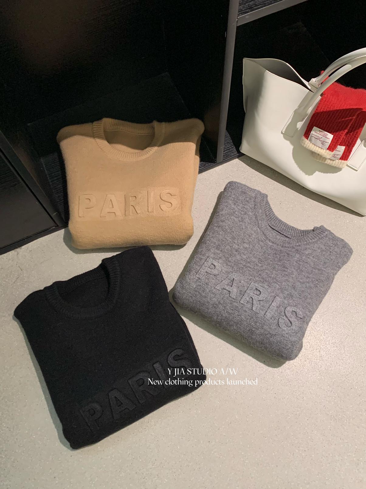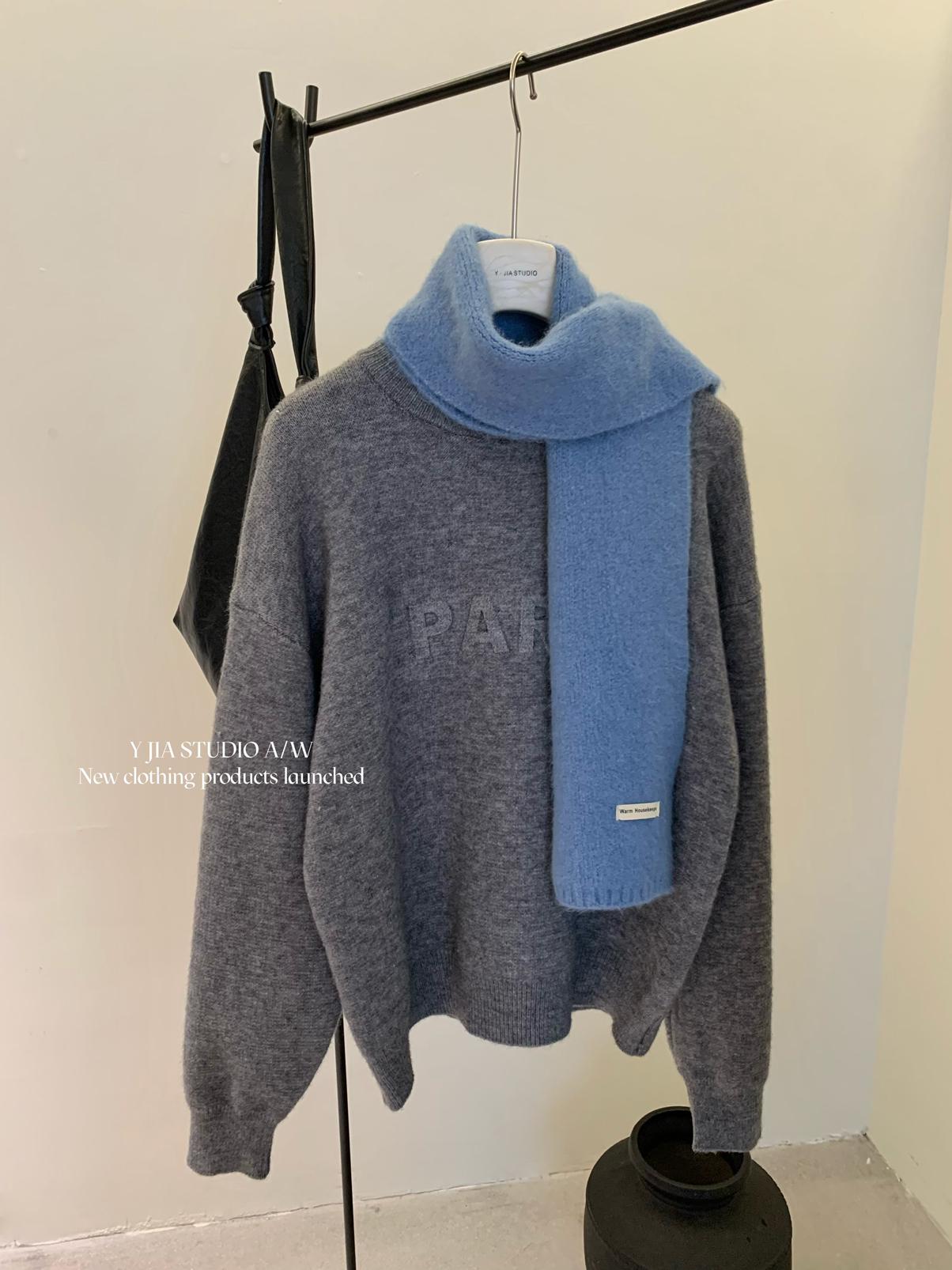【C7920】高級感休閒立體字母壓印套頭毛衣+高腰顯瘦包臀短裙套裝