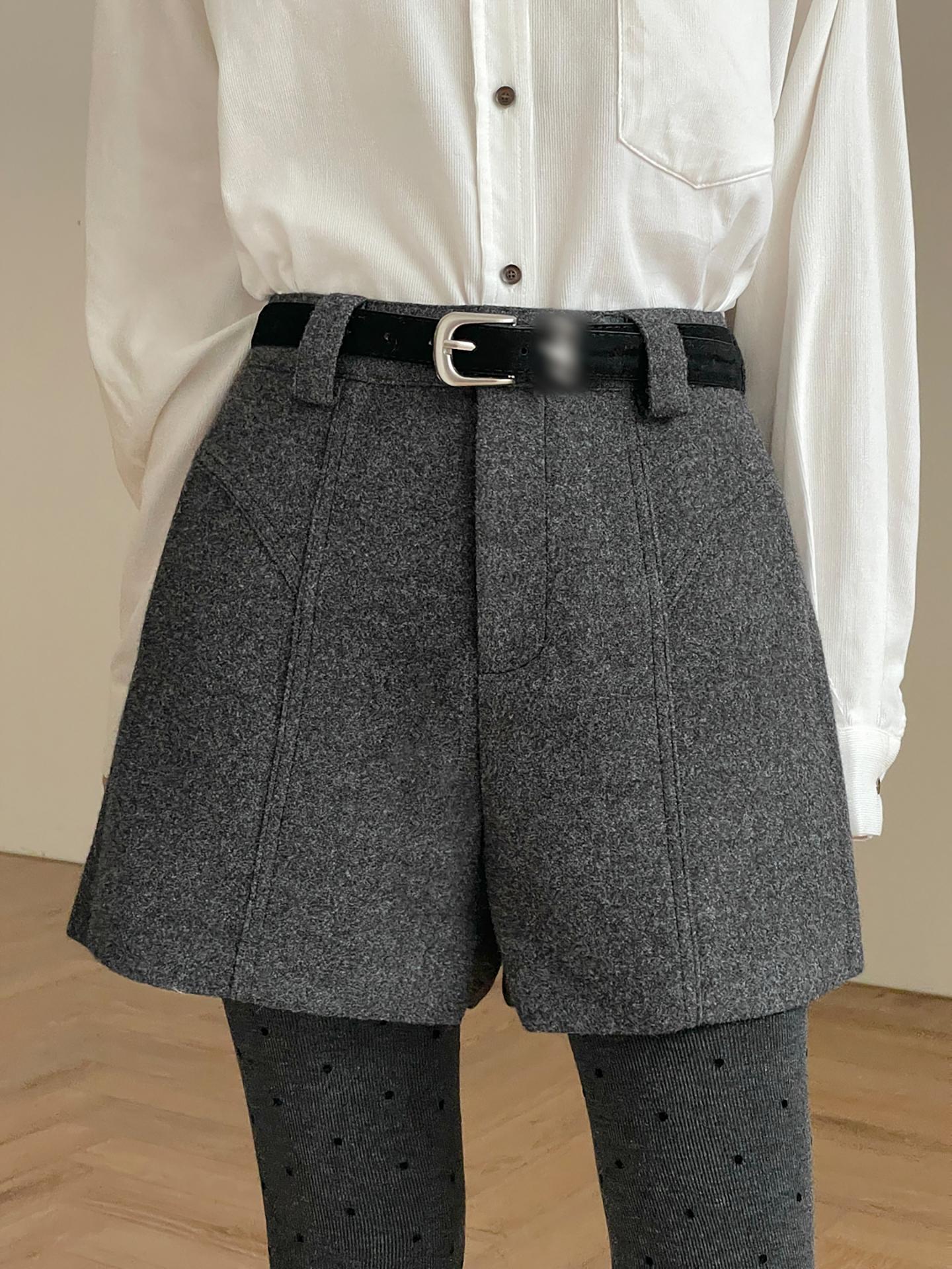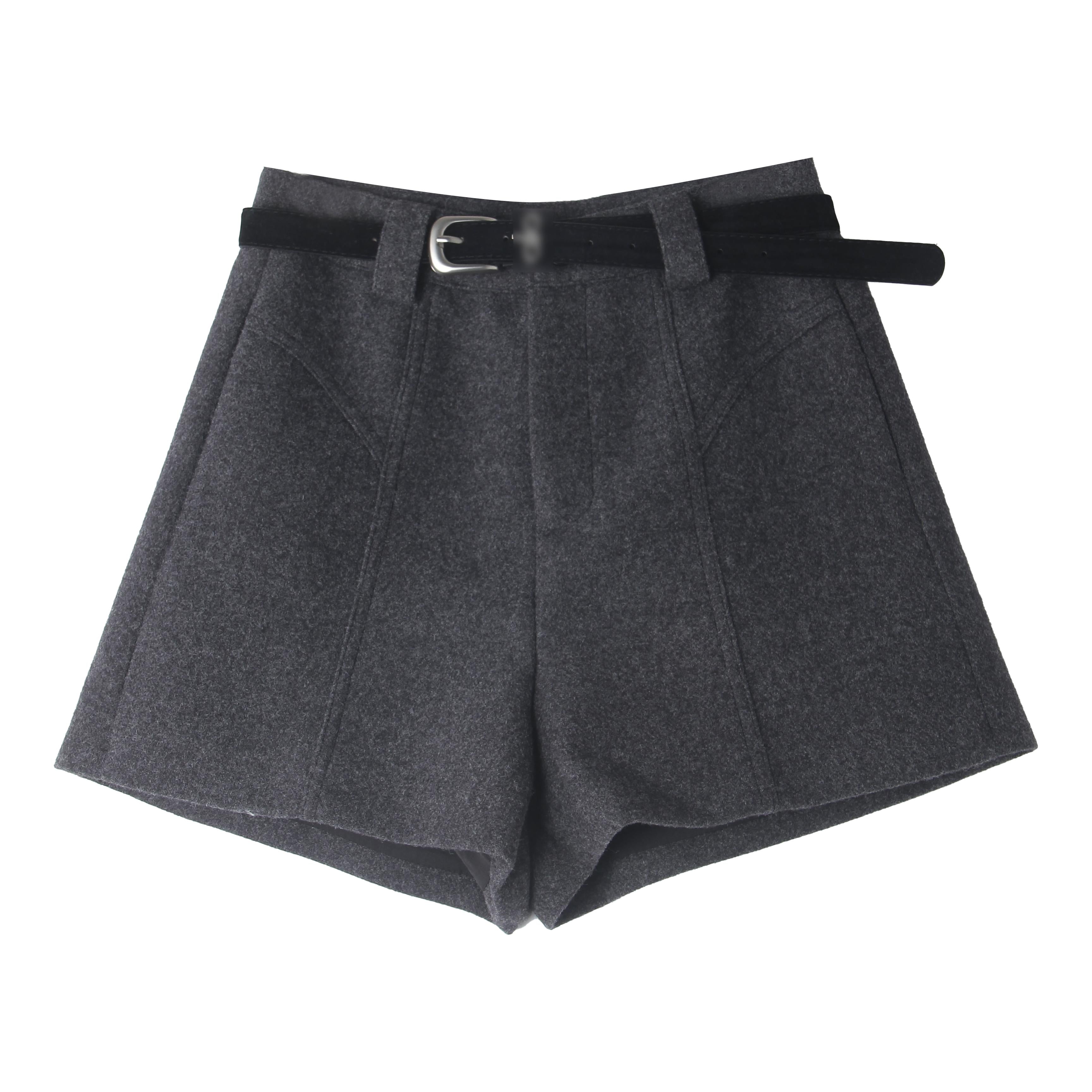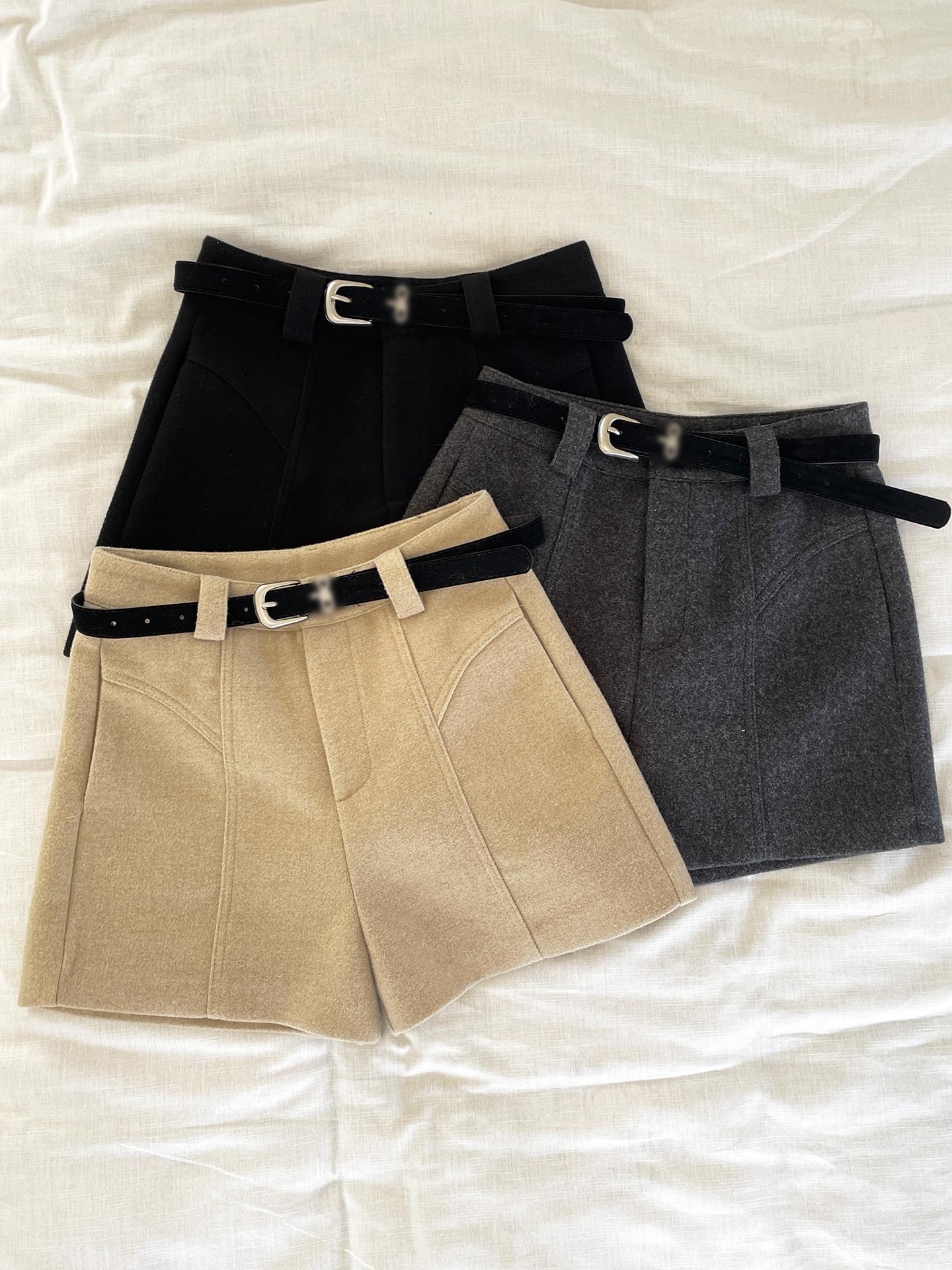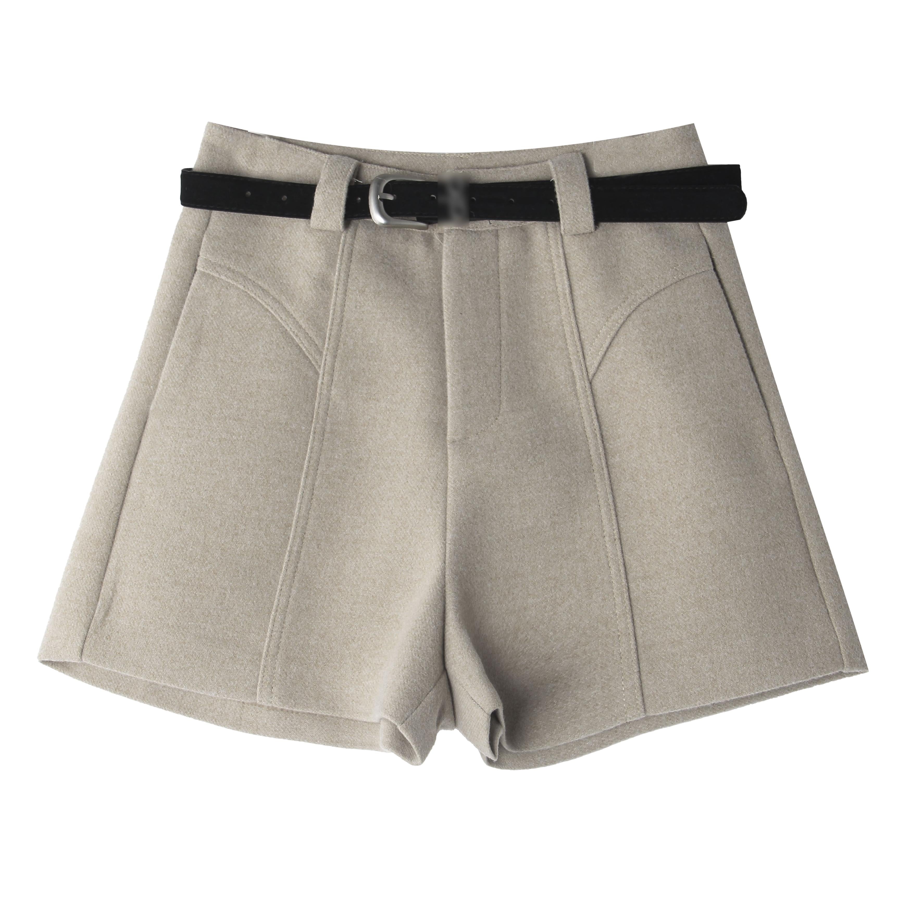 3. 【C7926】冬上新!韓系通勤高腰加絨a字西裝休閒短褲(配皮帶)(含5%羊毛)