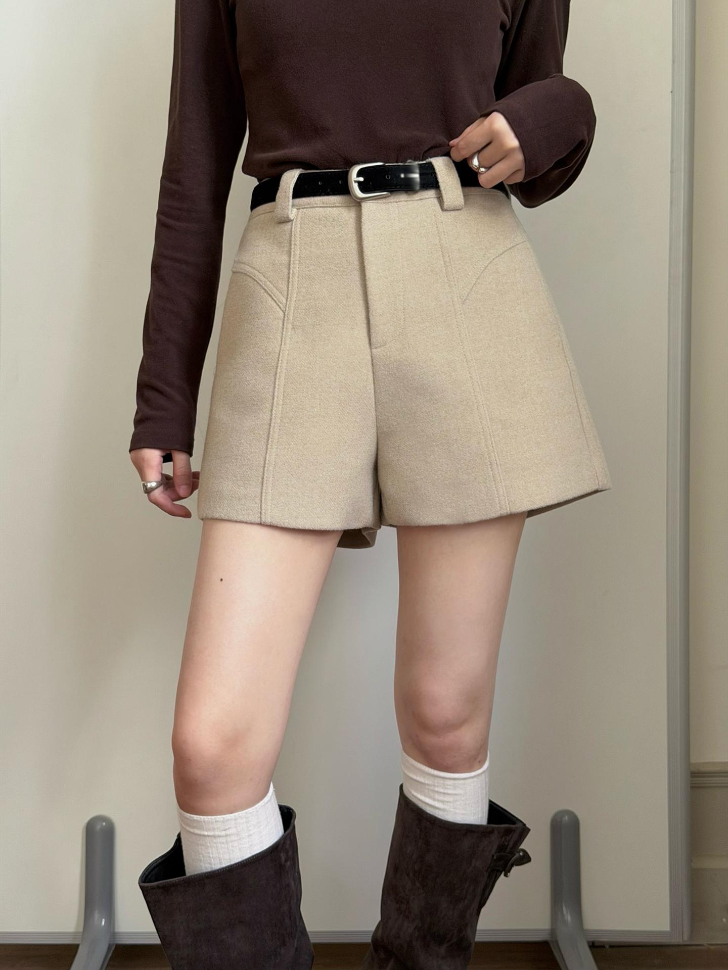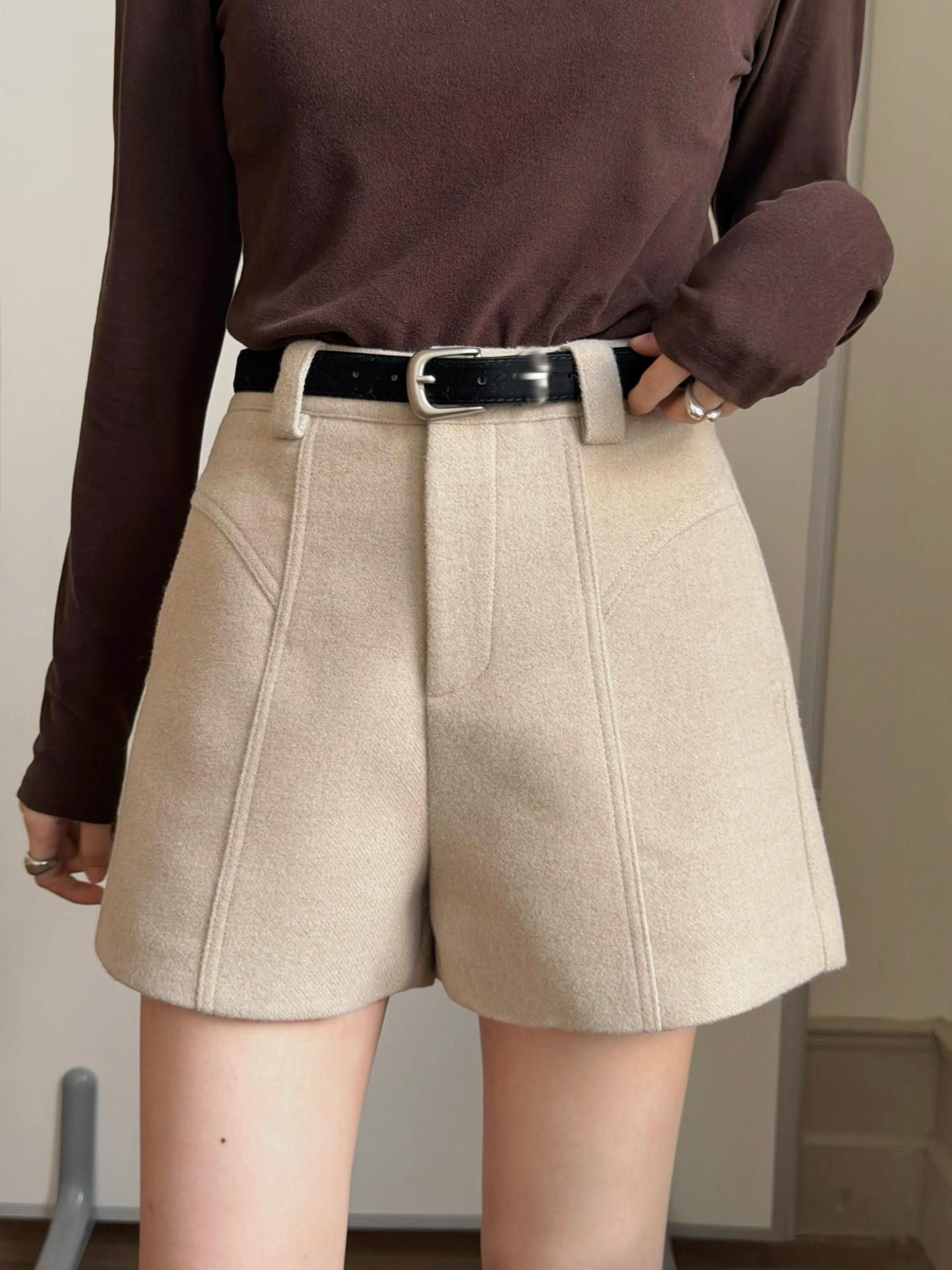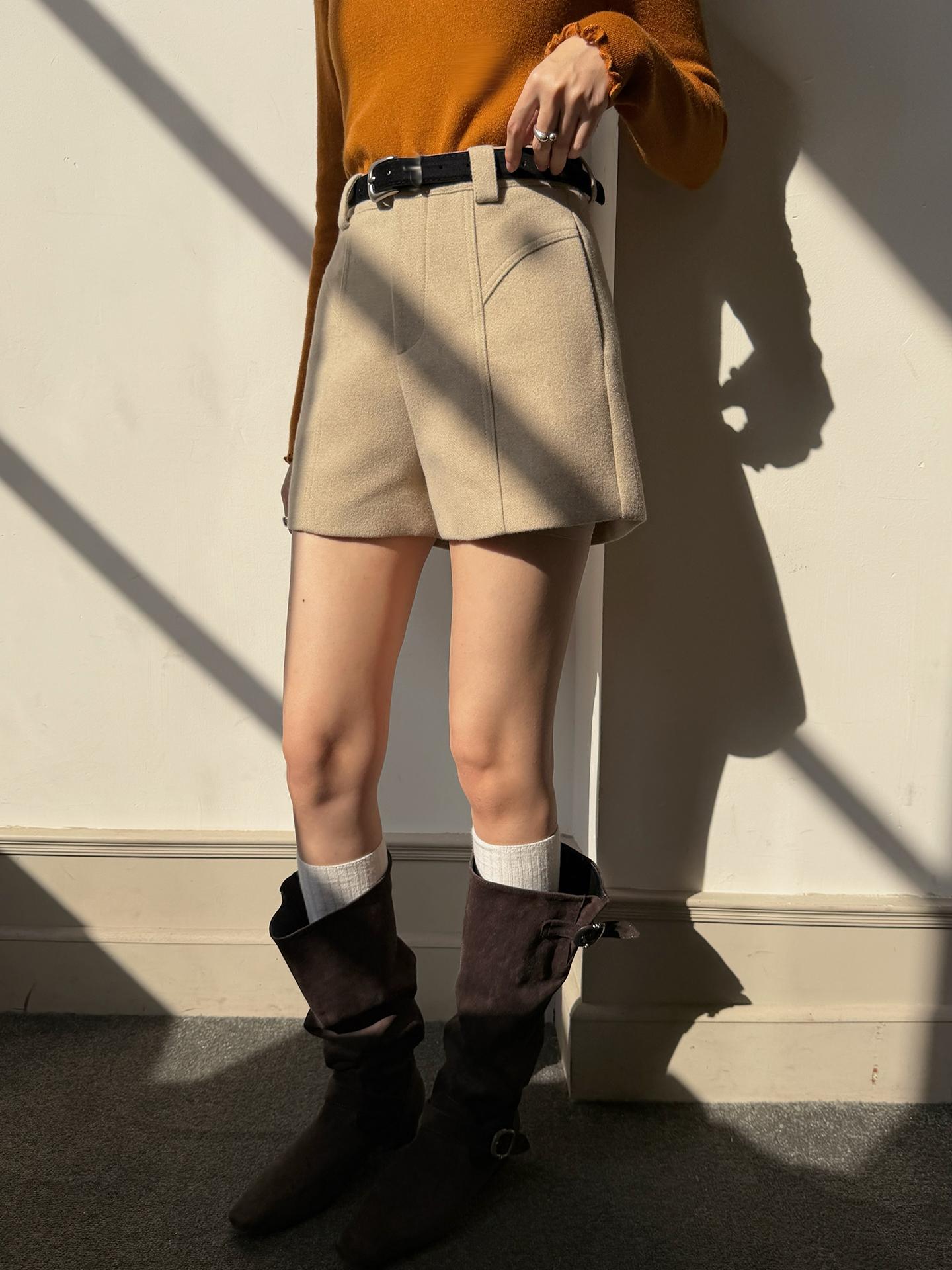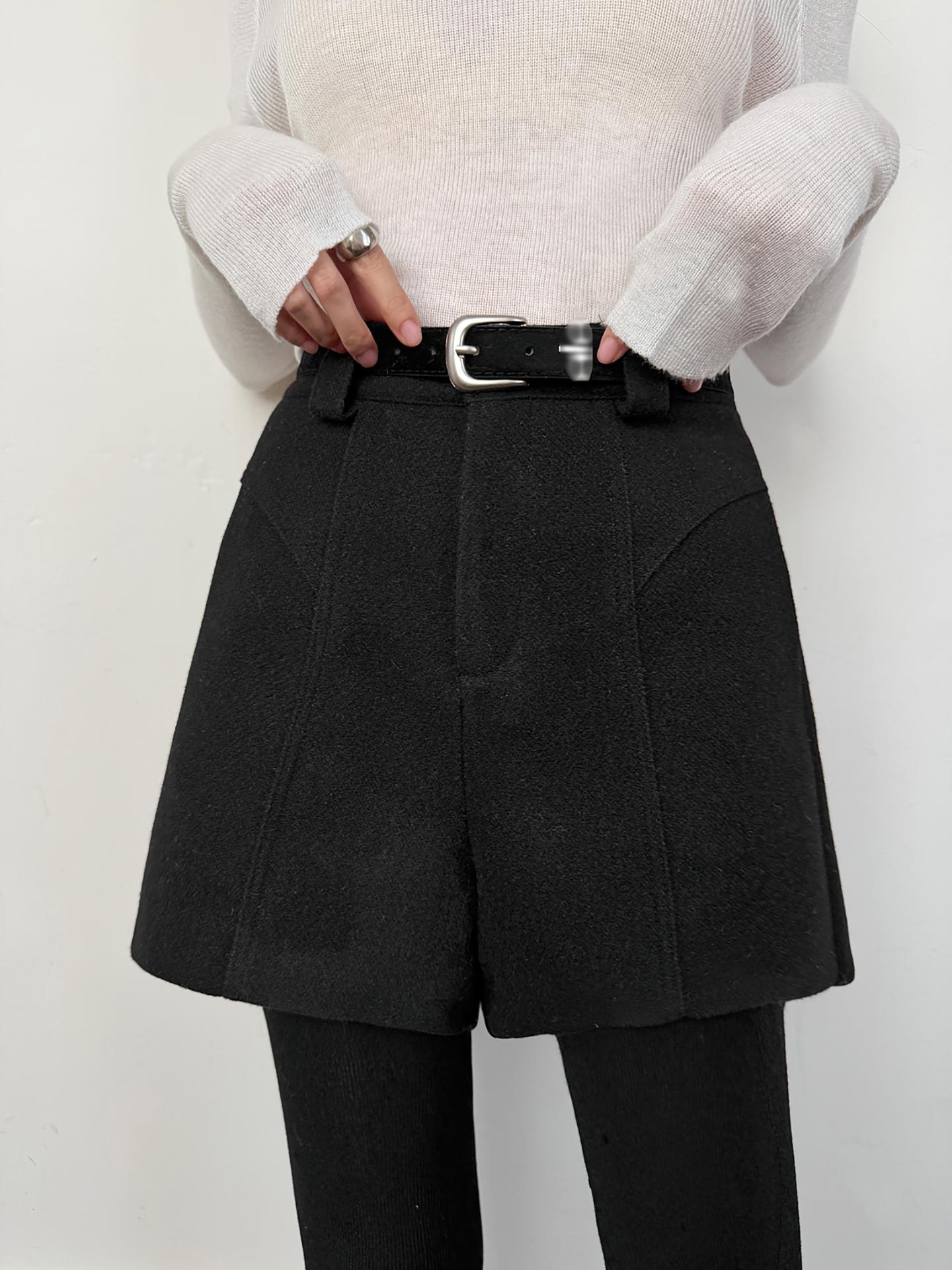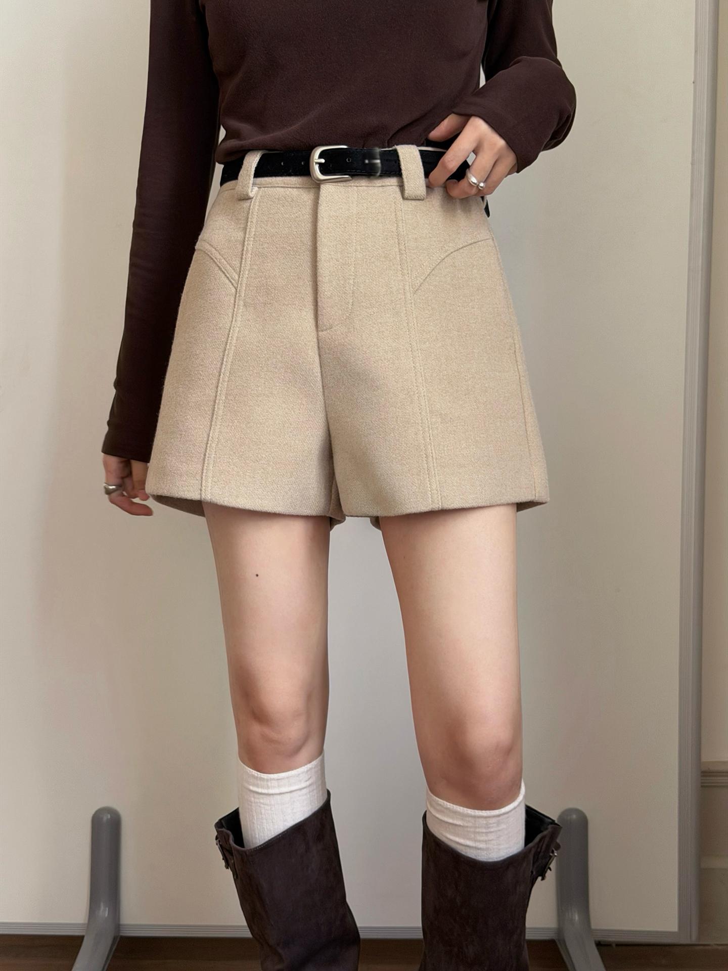3. 【C7926】冬上新!韓系通勤高腰加絨a字西裝休閒短褲(配皮帶)(含5%羊毛)