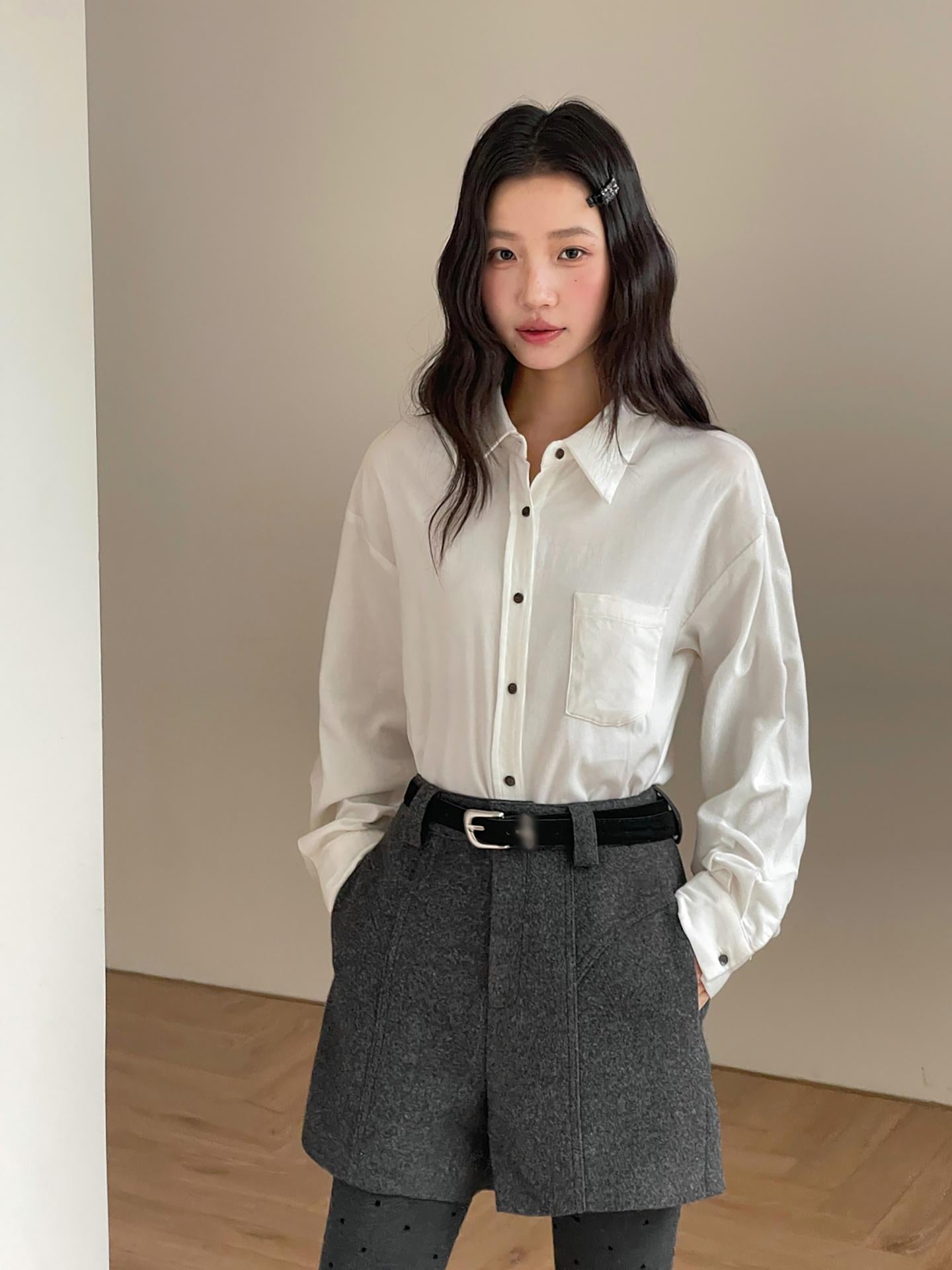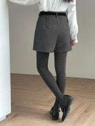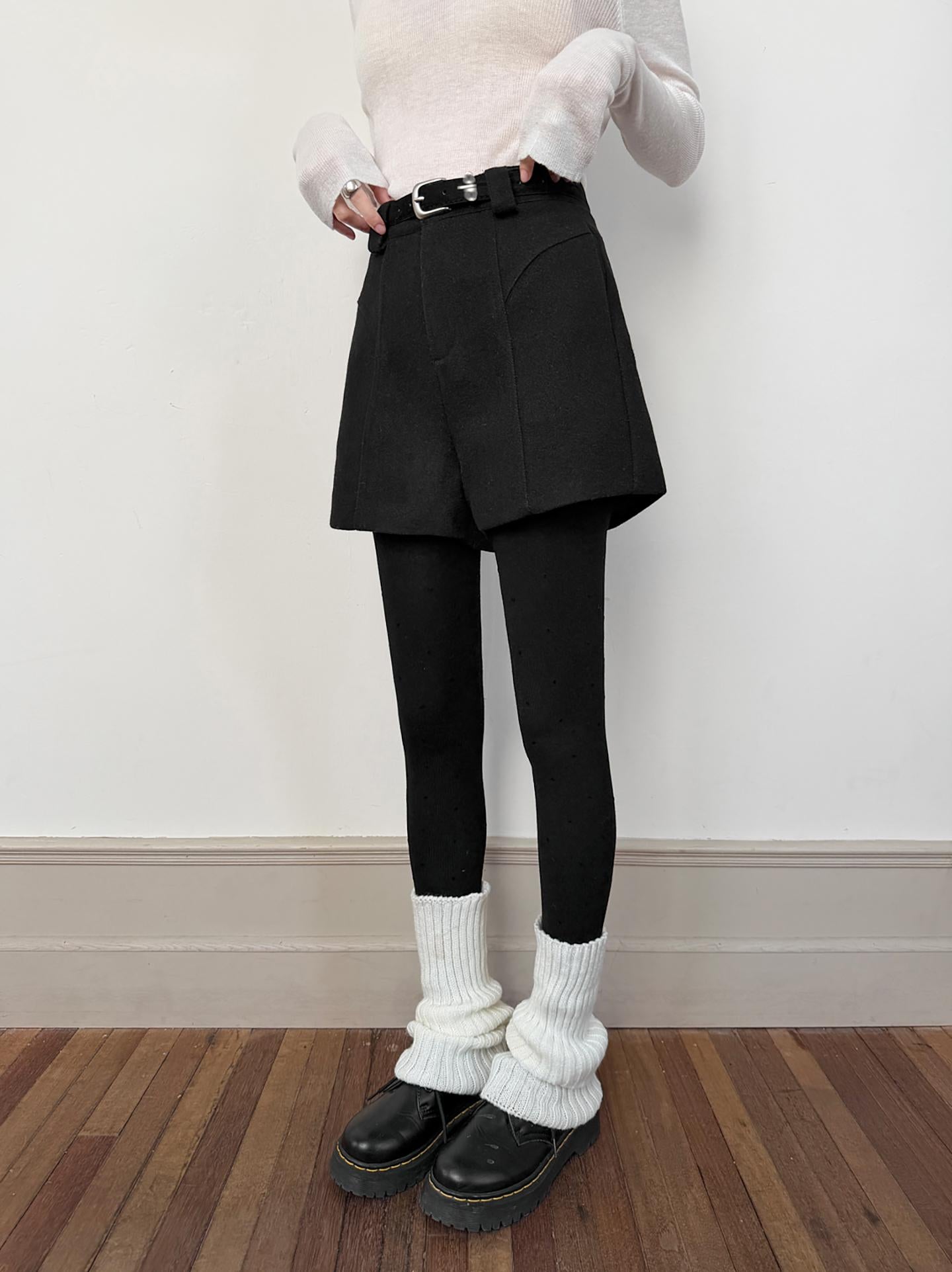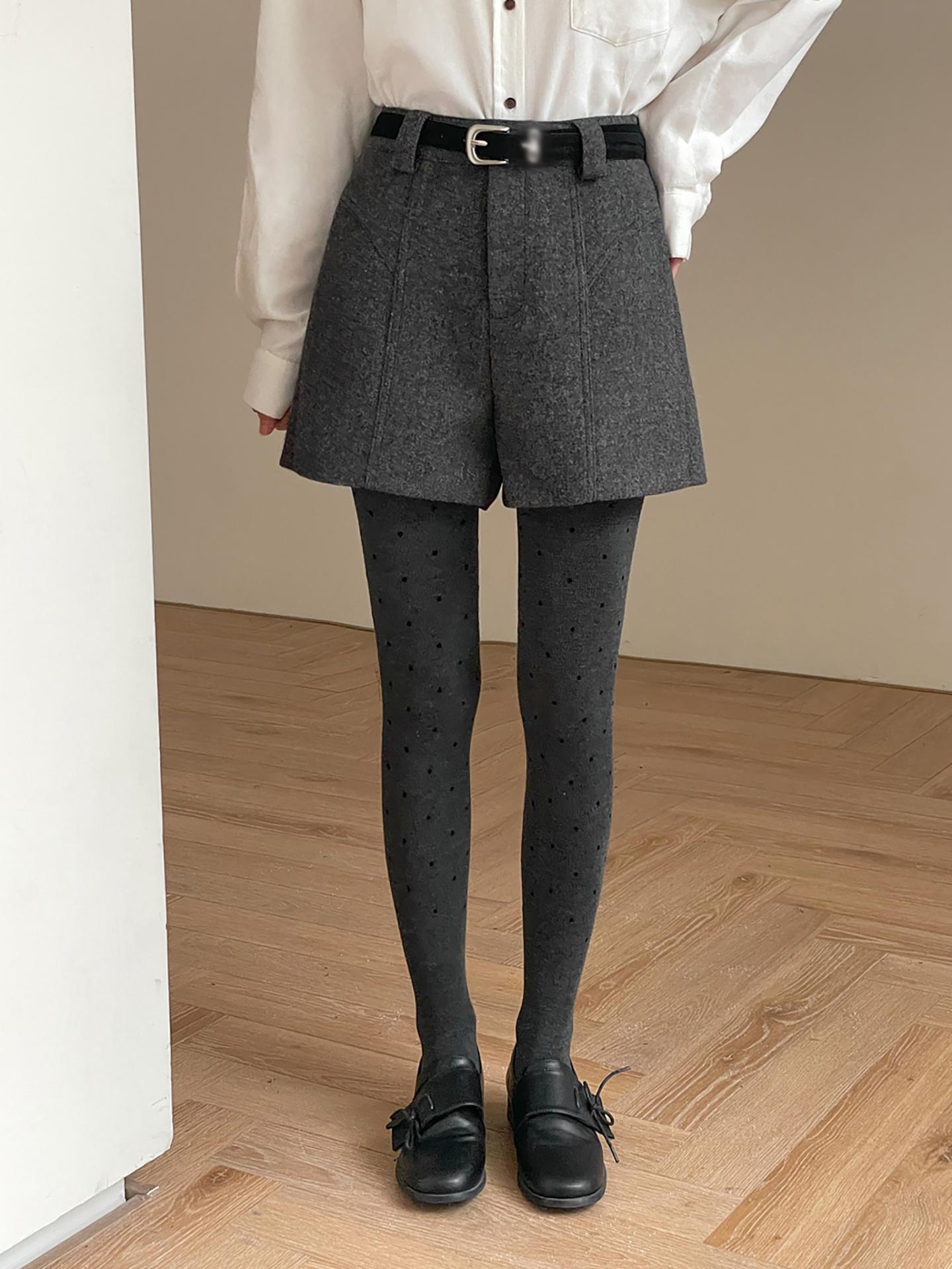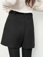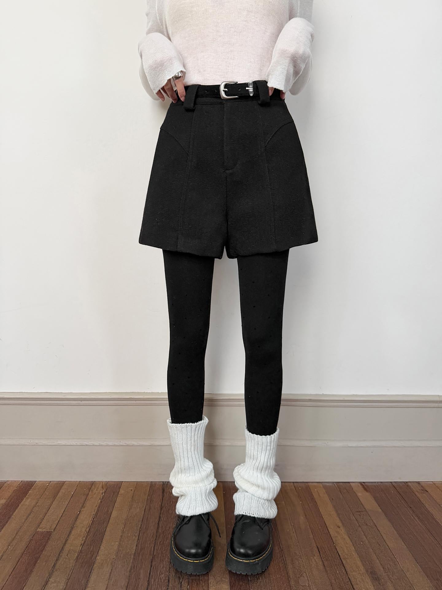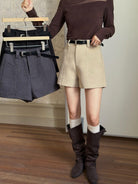 3. 【C7926】冬上新!韓系通勤高腰加絨a字西裝休閒短褲(配皮帶)(含5%羊毛)