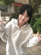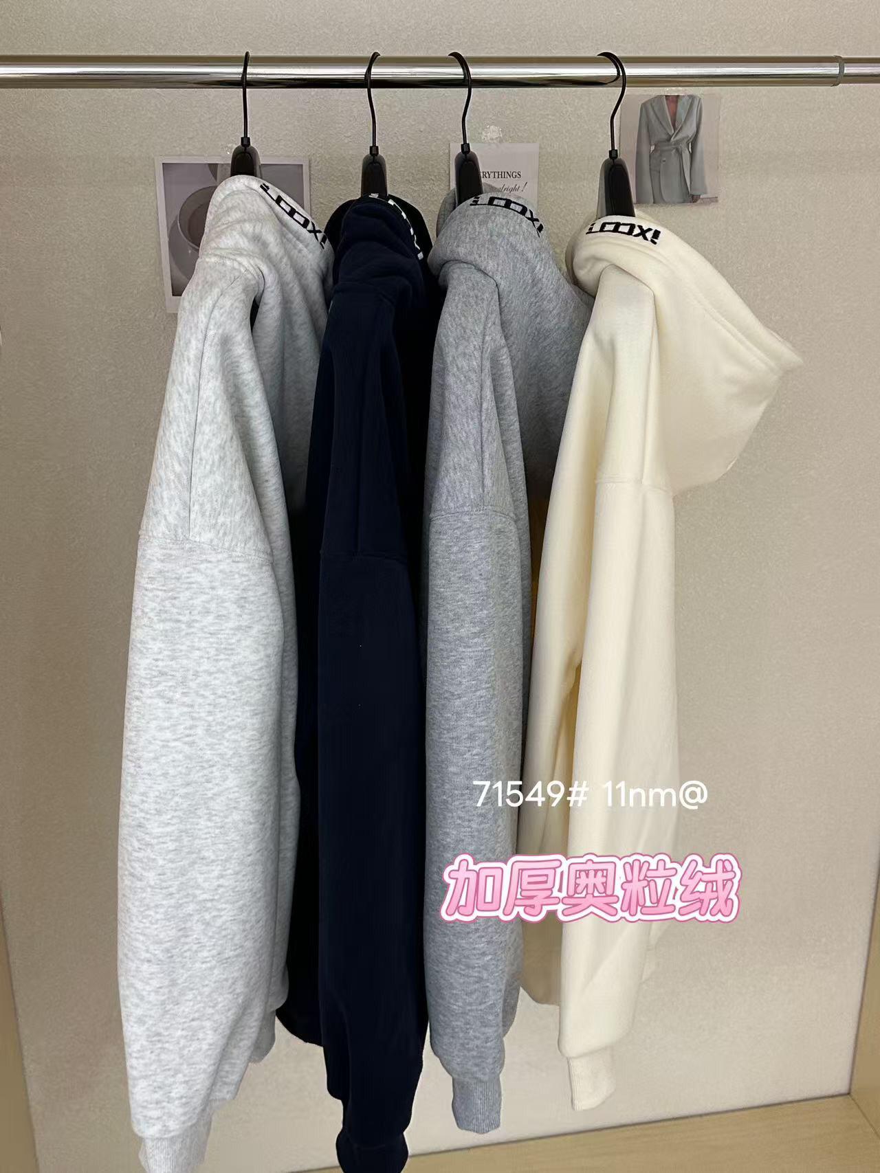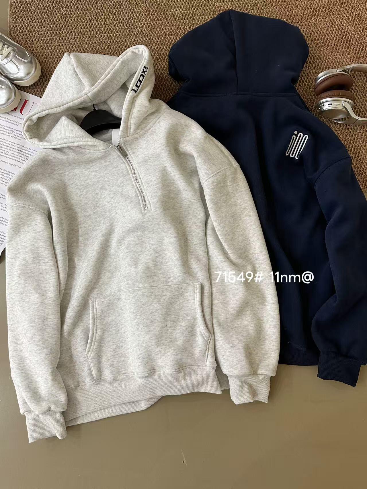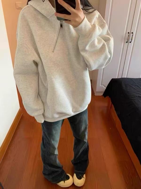 【C7931】美式高街字母刺繡拉鍊加絨加厚慵懶風寬鬆休閒衛衣