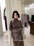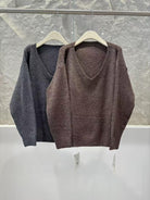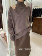 3. 【C7932】高級感針織兩件套V領寬鬆百搭毛衣+掛脖露肩背心套裝(含10%羊毛)