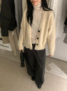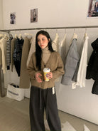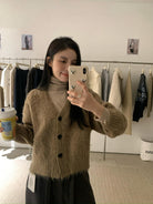 【C7935】慵懶風復古v領拉絨保暖毛衣