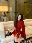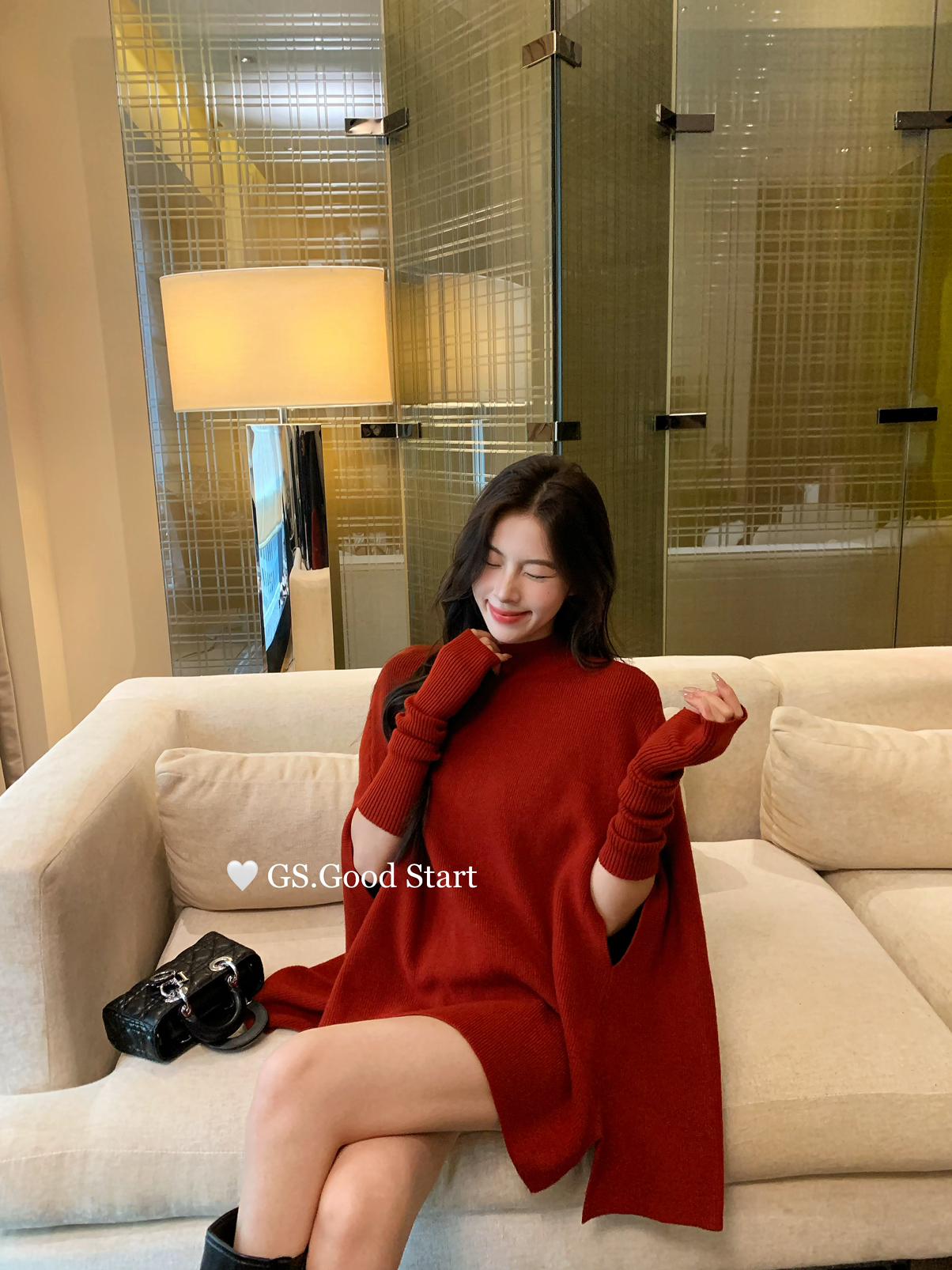 【C7939】氣質擔當*閉眼入系列!巨好賣!秋冬復古氣質小女人斗篷半高領保暖毛衣(配可拆卸袖套)