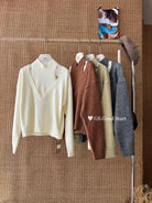 【C7940】小心機設計~不挑身形*誰穿都好看!秋冬氣質慵懶假兩件疊穿針織衫