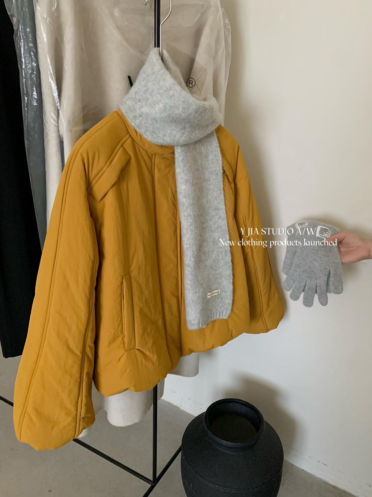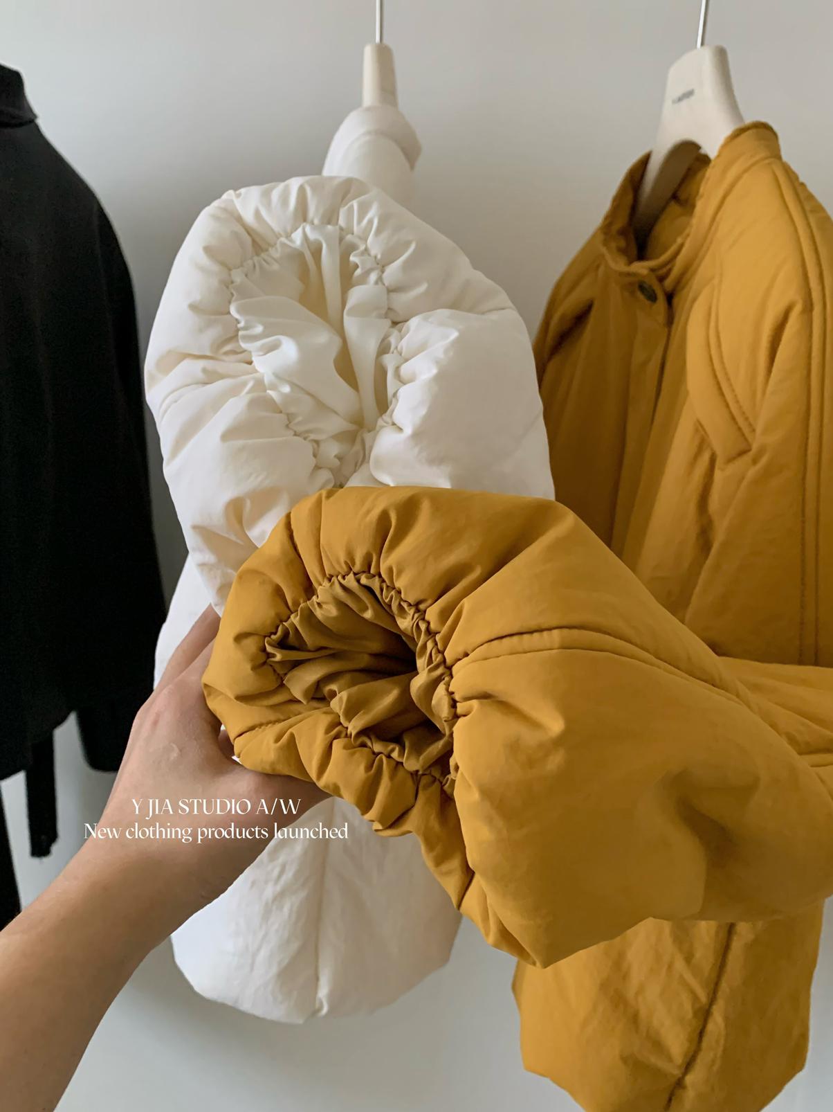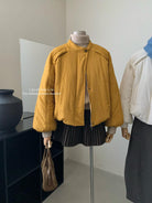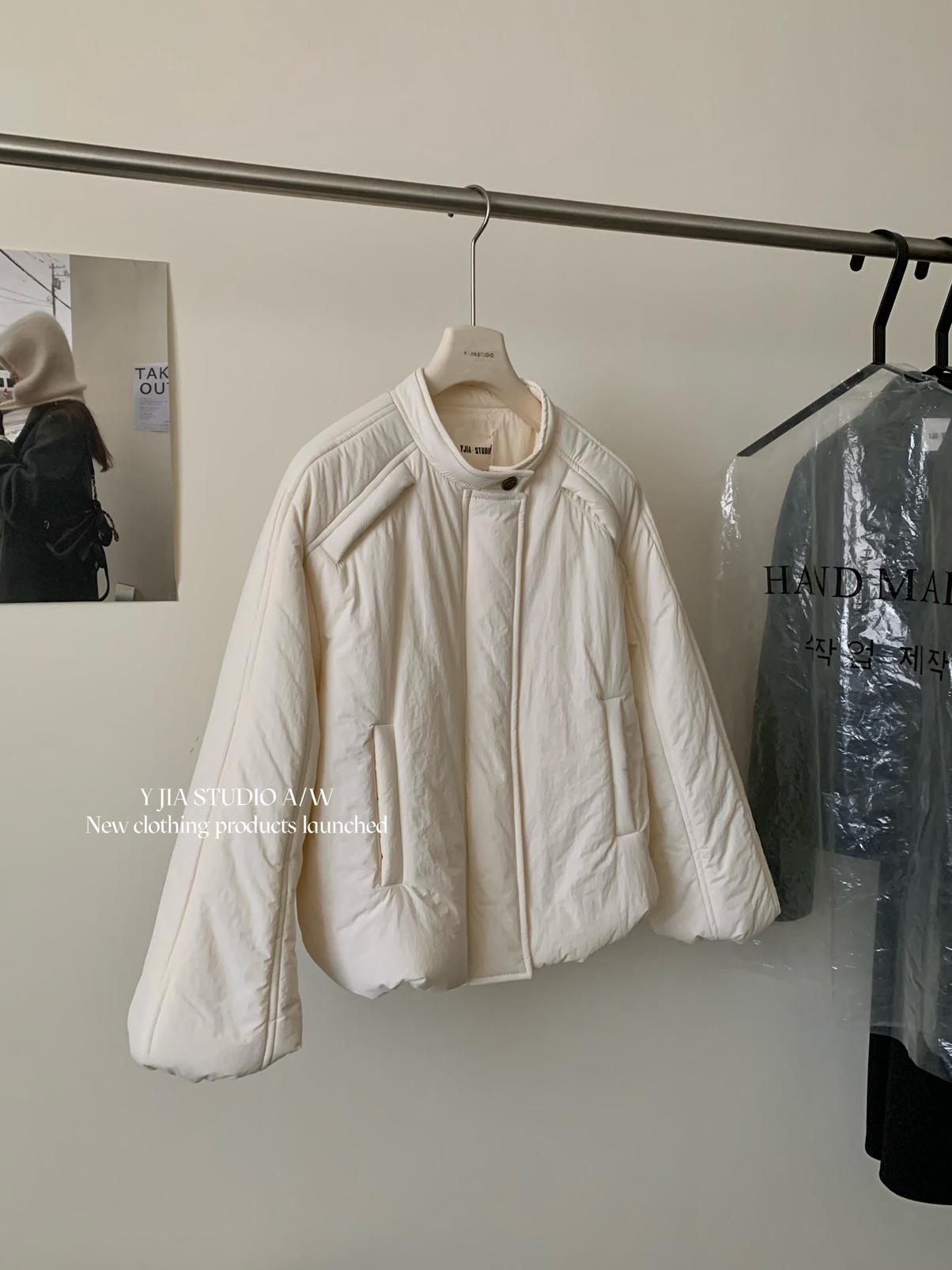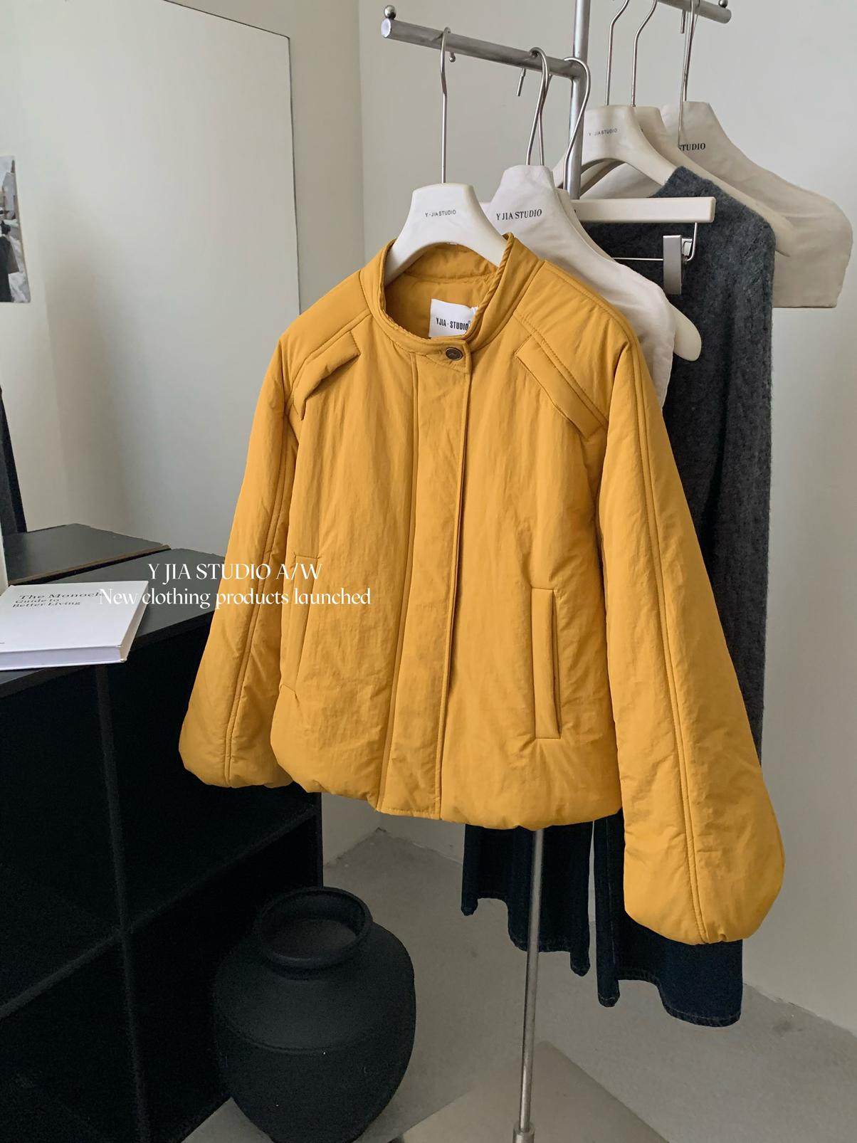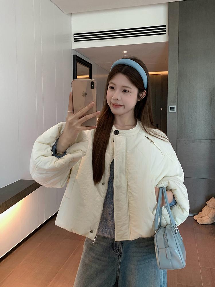 【C7944】甜美風減齡花苞袖圓領百搭保暖棉服外套短外套