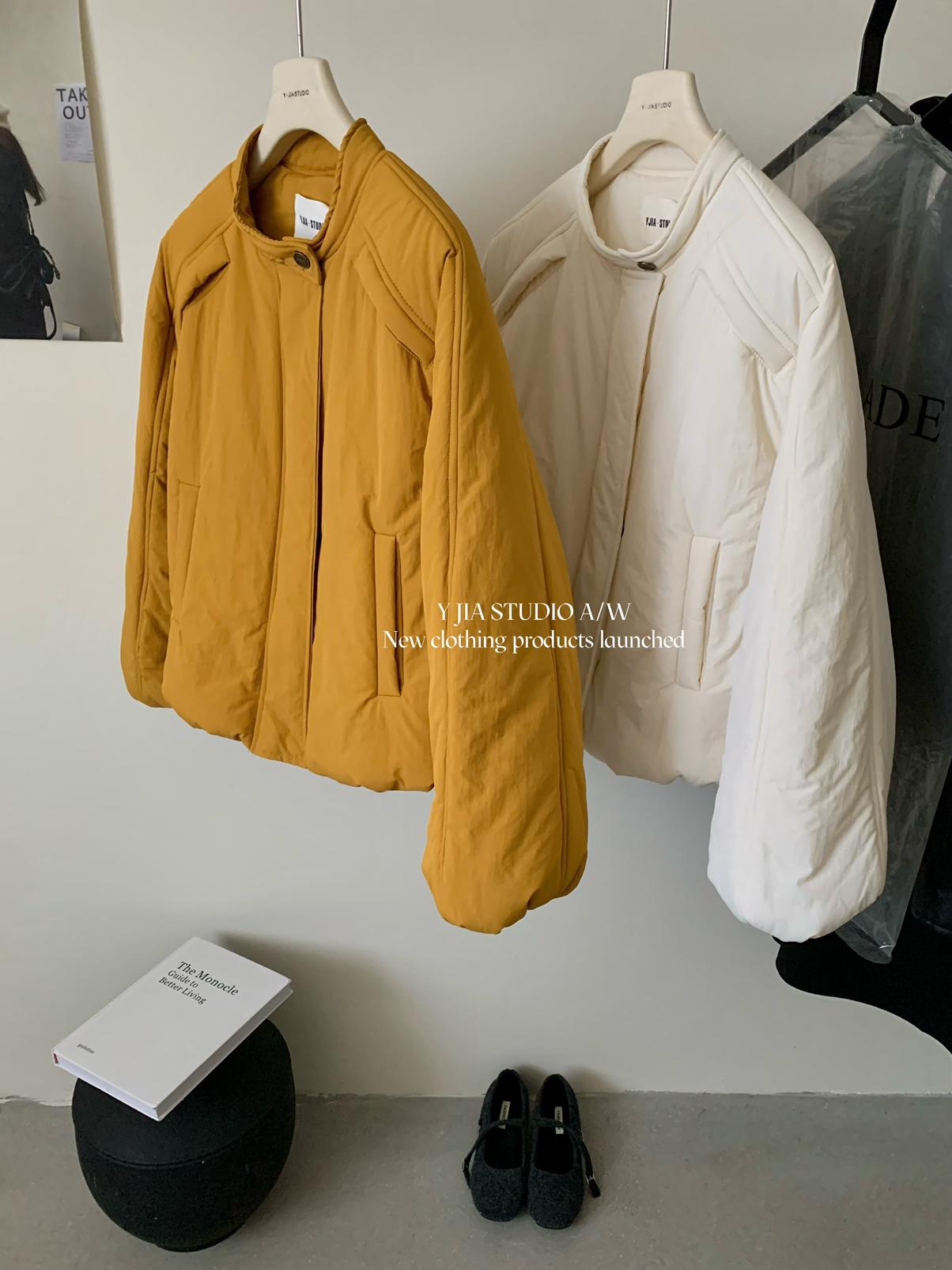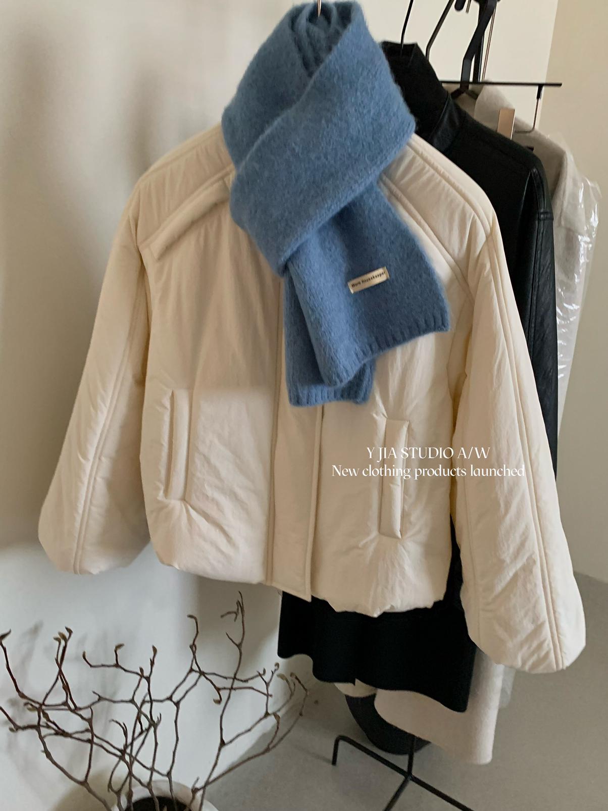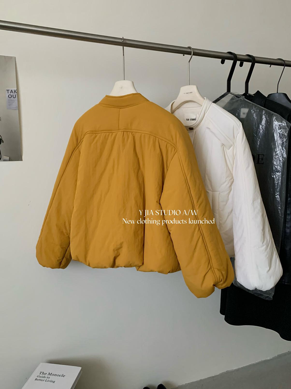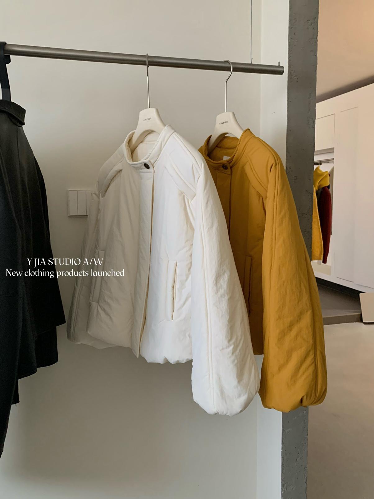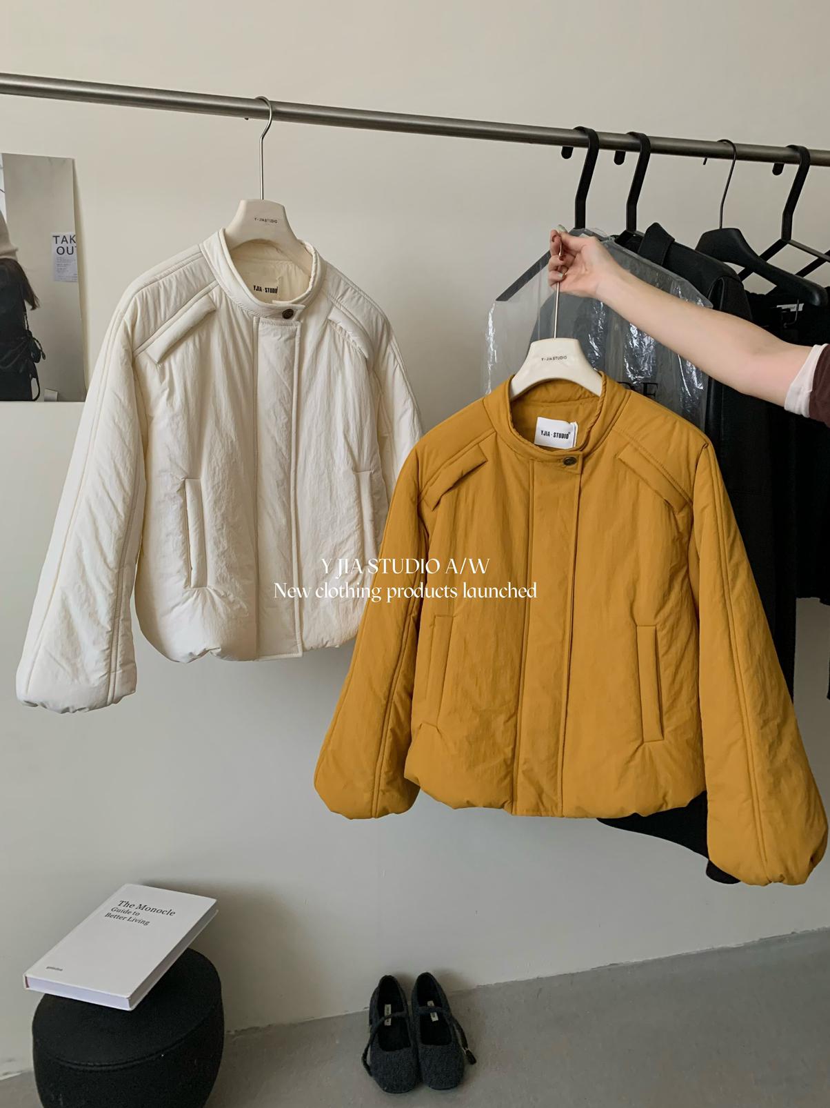 【C7944】甜美風減齡花苞袖圓領百搭保暖棉服外套短外套