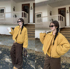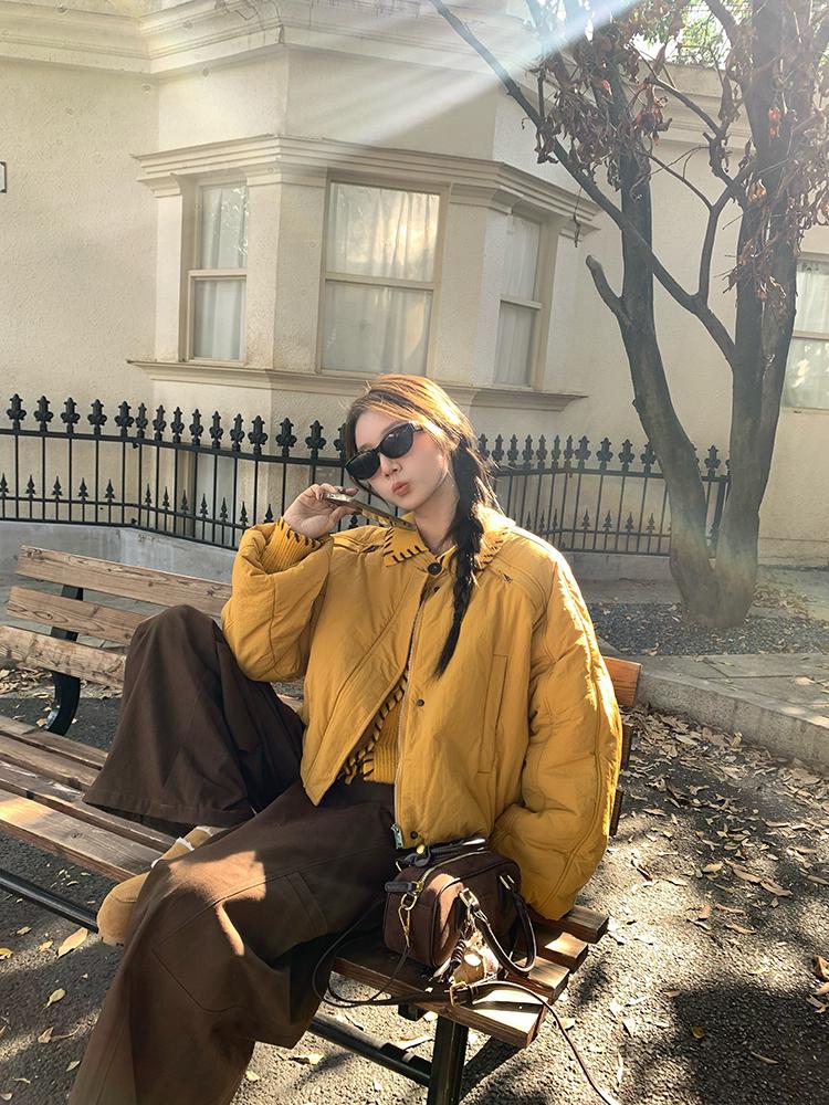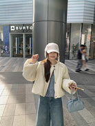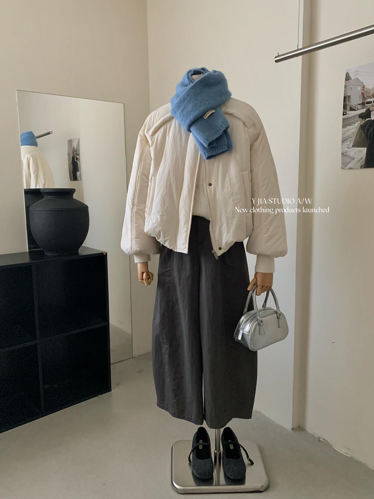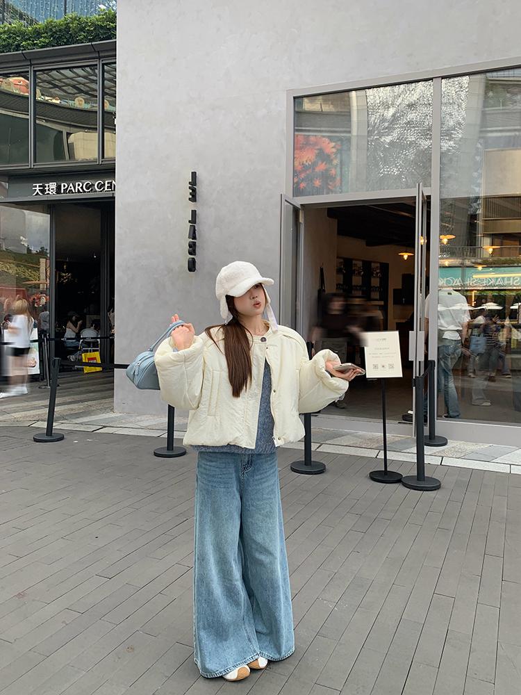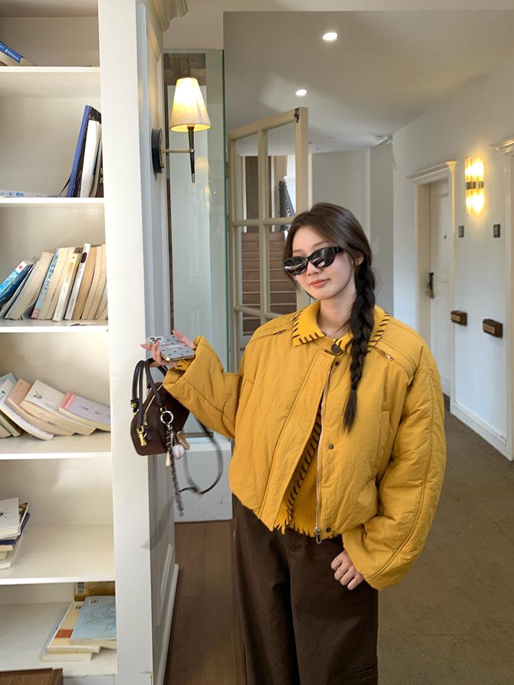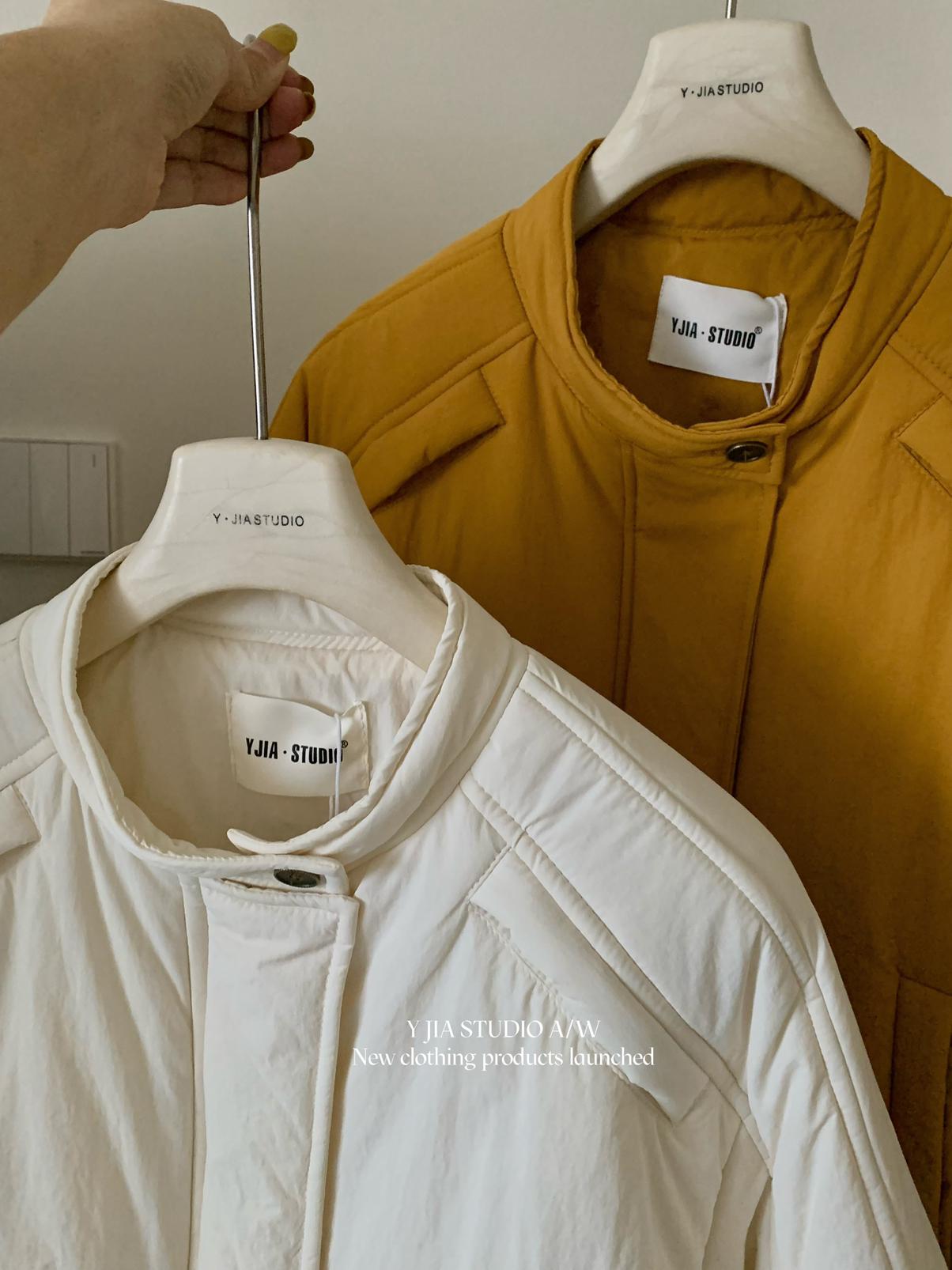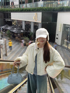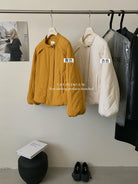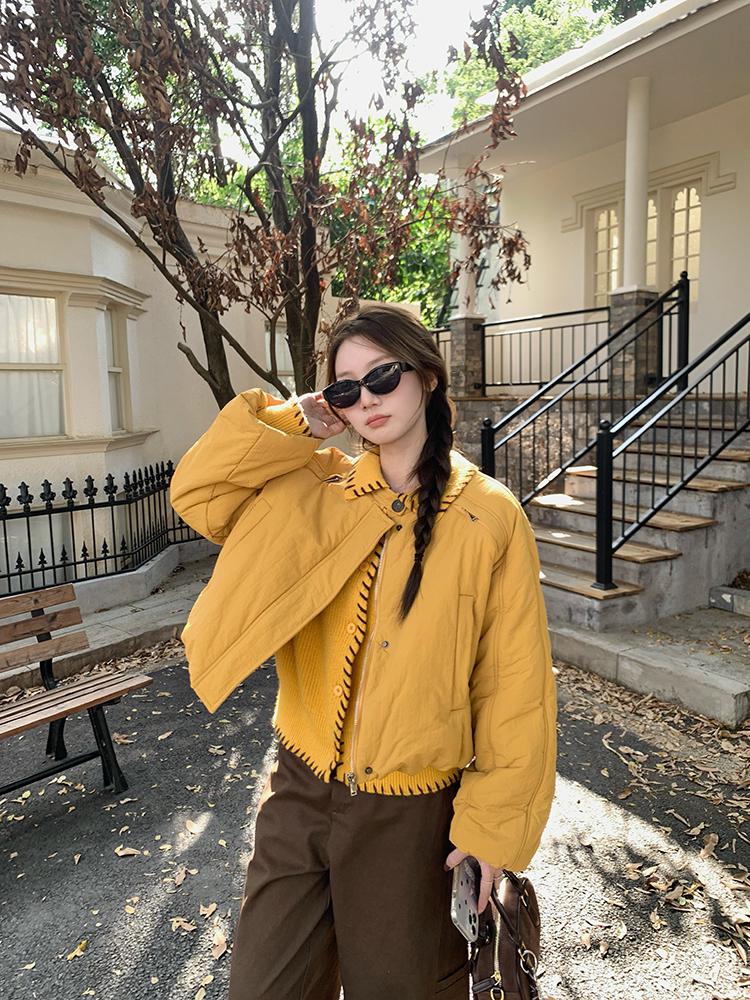 【C7944】甜美風減齡花苞袖圓領百搭保暖棉服外套短外套