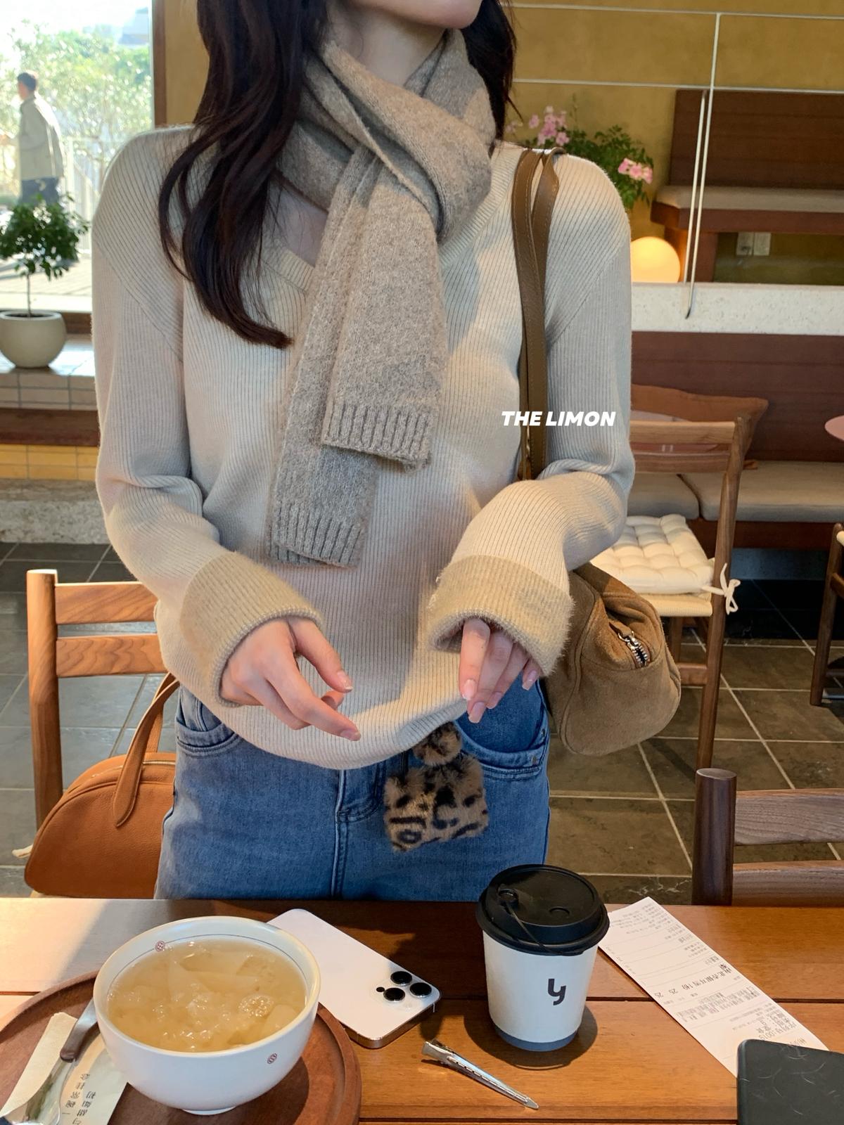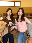 【C7947】U領設計感一體絨打底針織衫