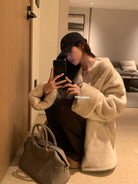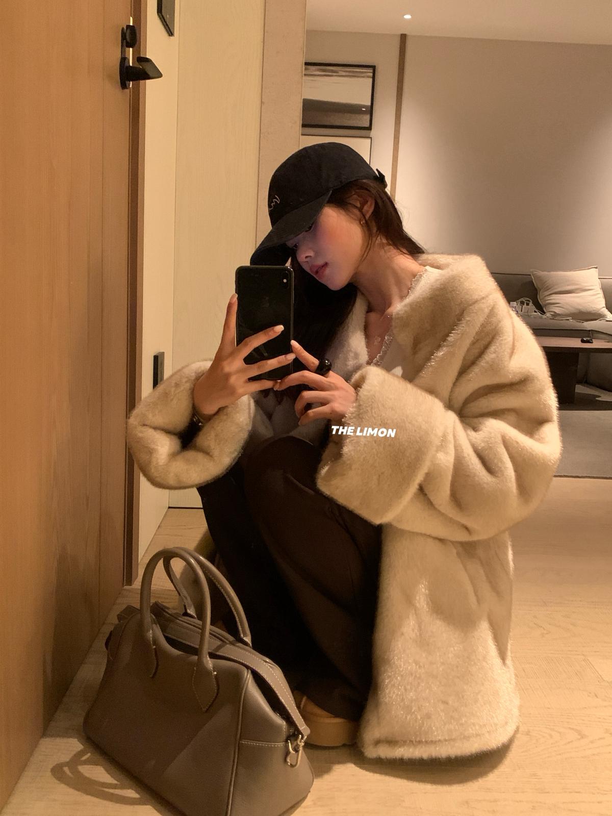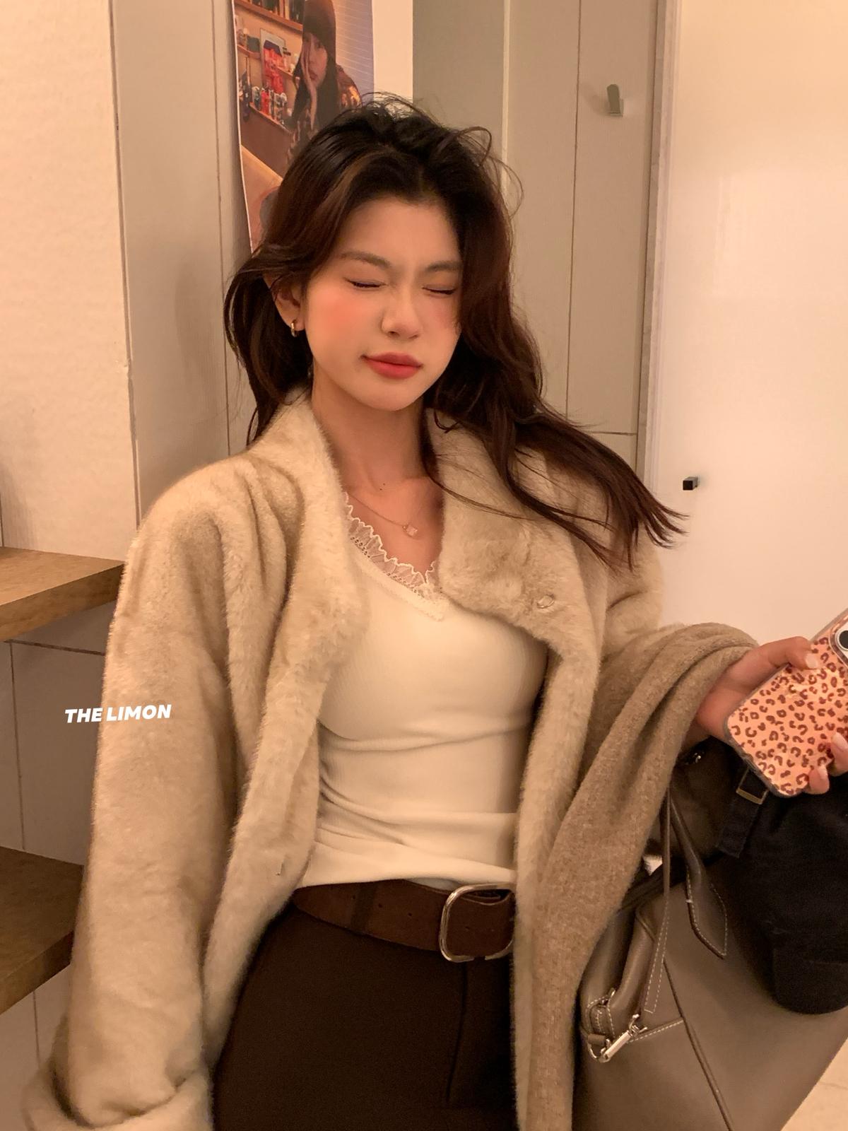 【C7949】老錢慵懶風百搭洋氣環保毛短外套