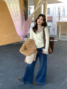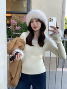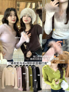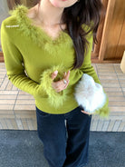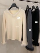 【C7950】法式氣質優雅毛毛拼接打底衫針織衫