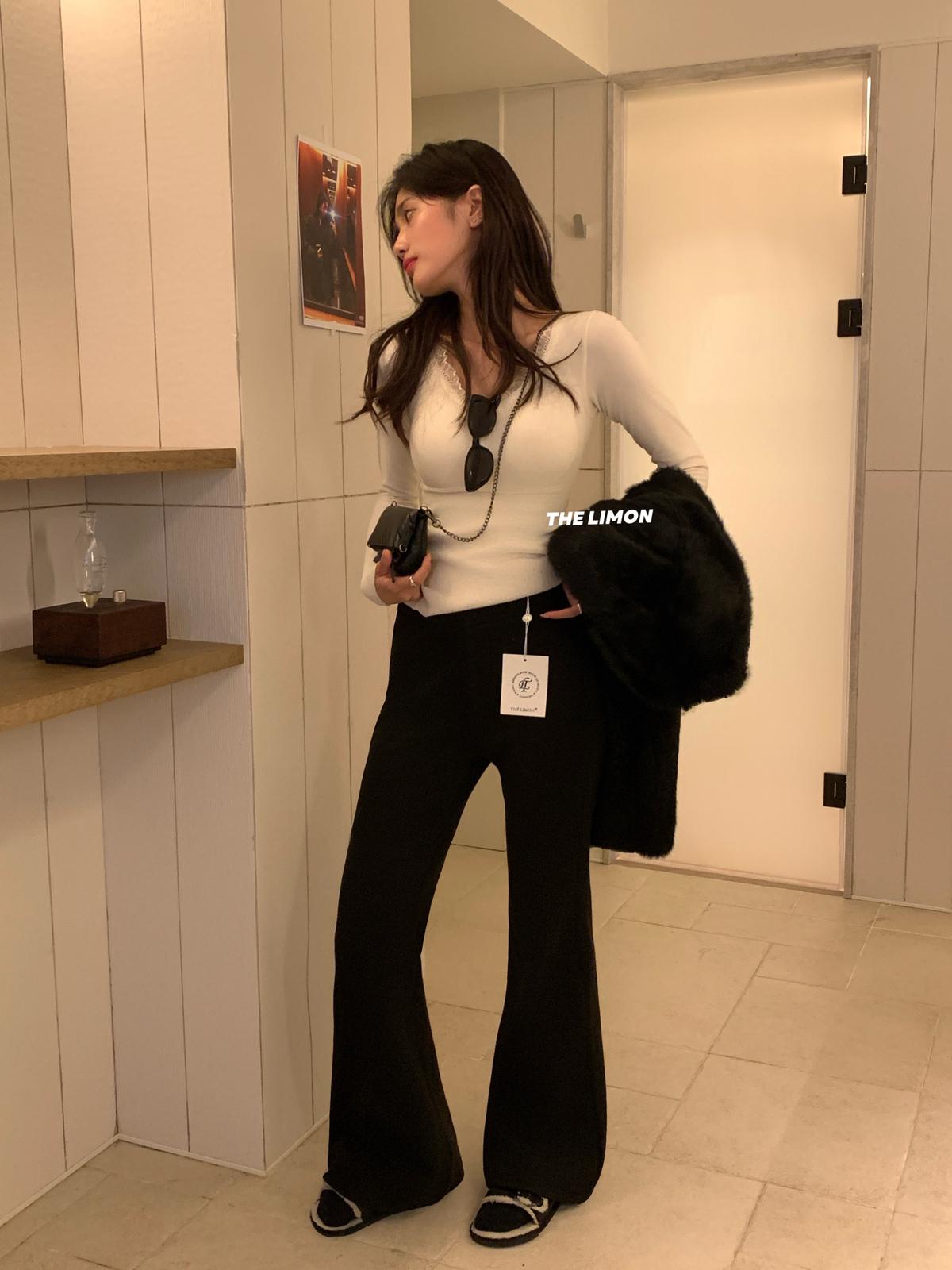【C7951】Lu系高腰無痕加絨微喇顯瘦休閒褲