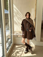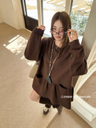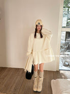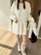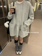 【C7953】韓貨秋冬懶人荷葉邊雙插袋內裏抓絨衛衣裙連衣裙