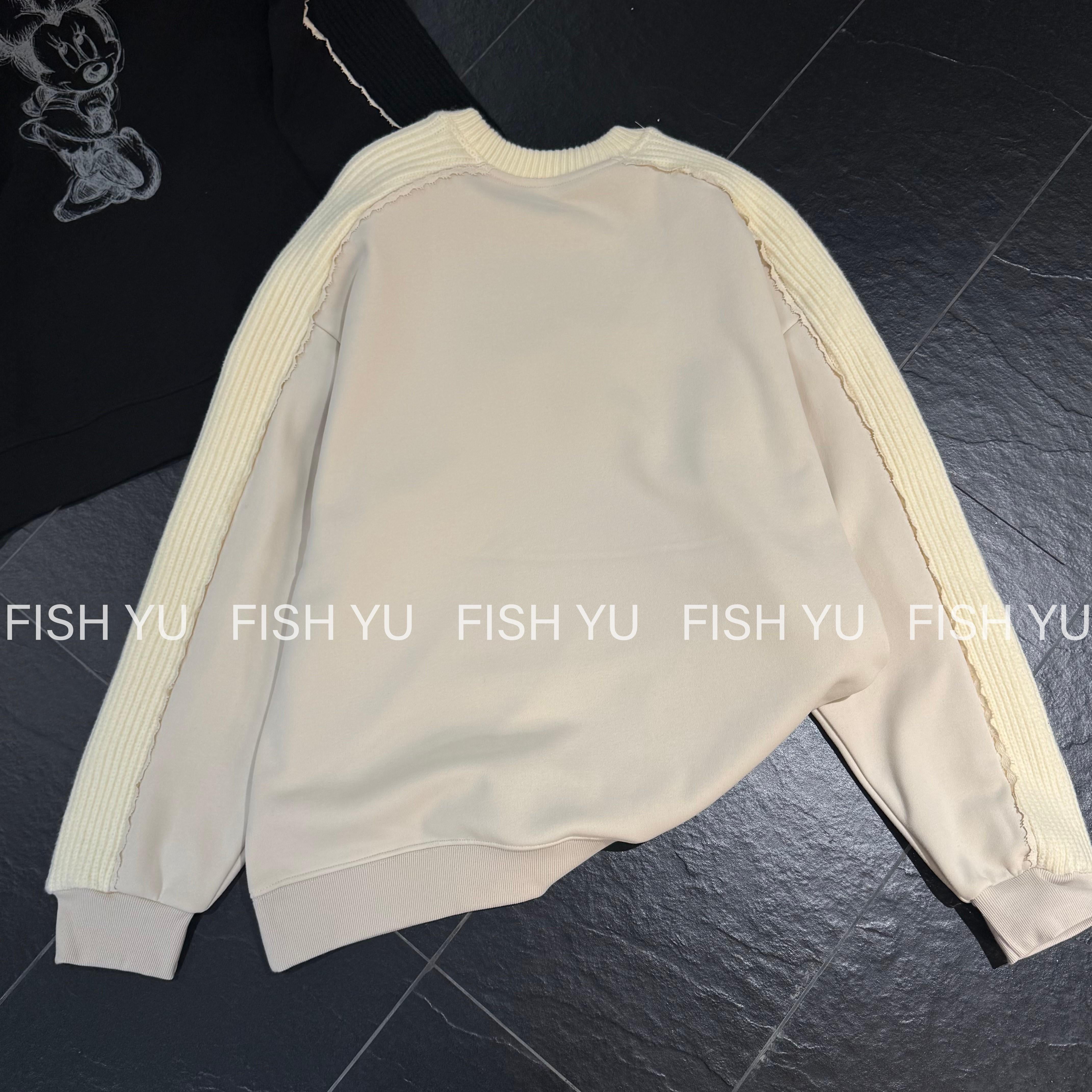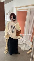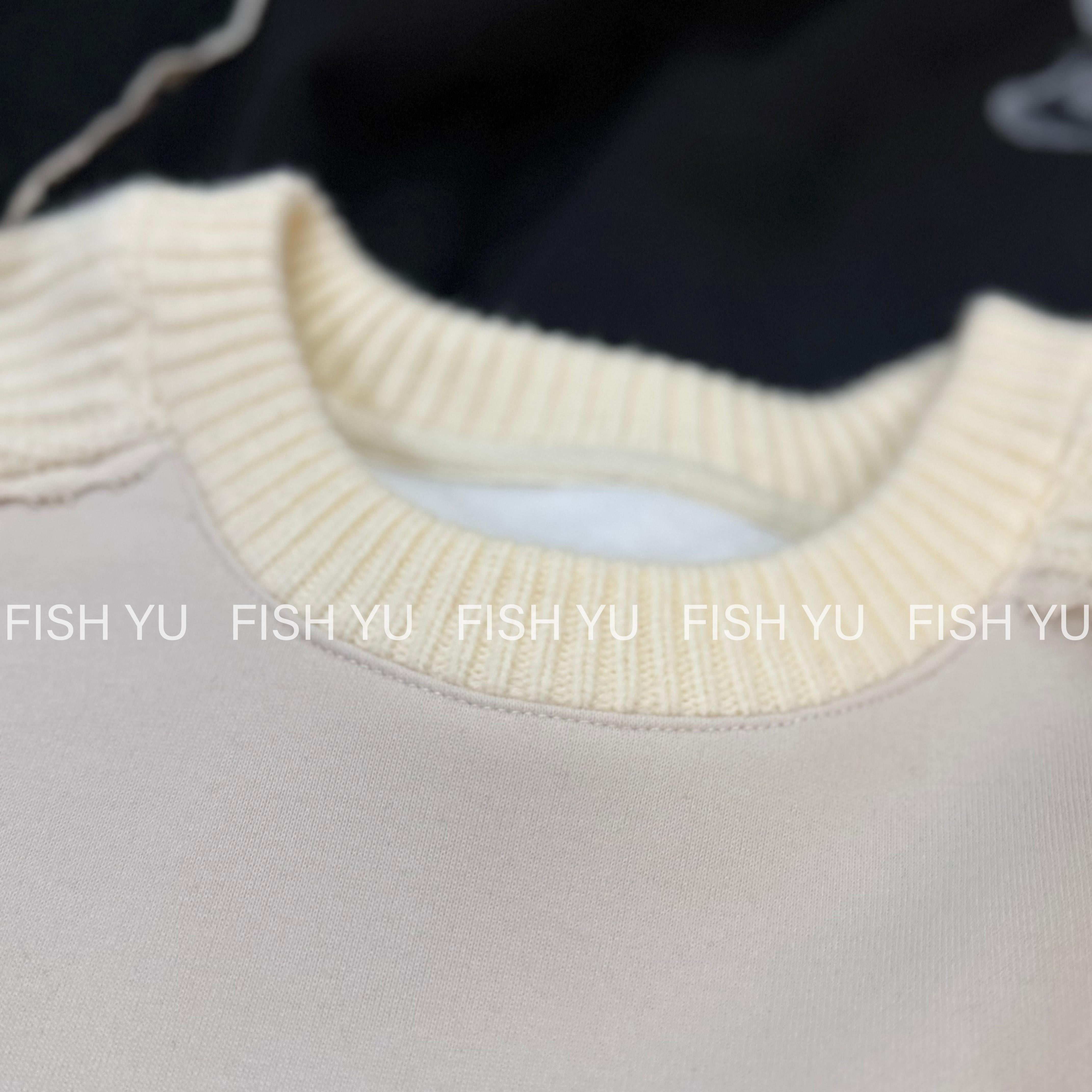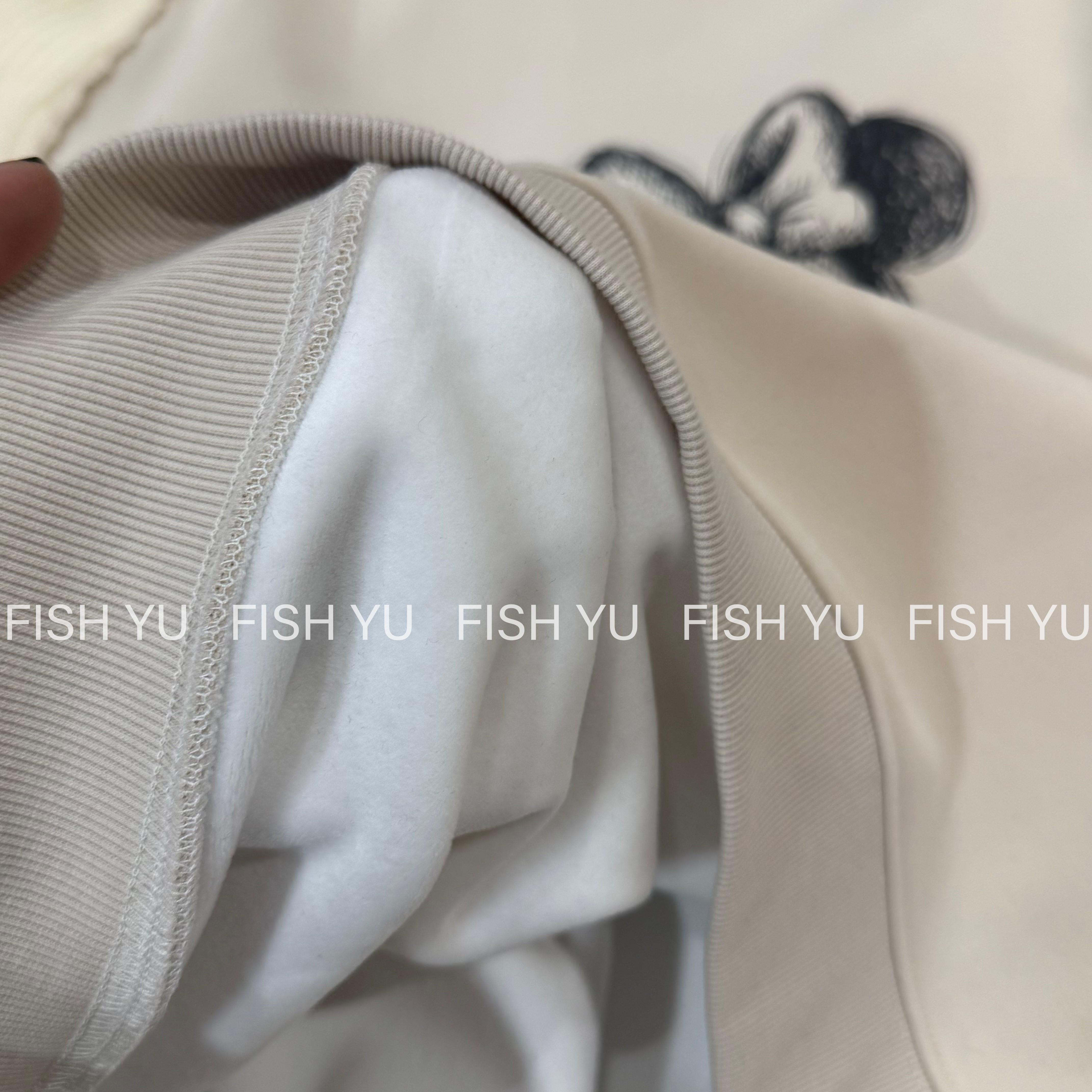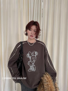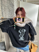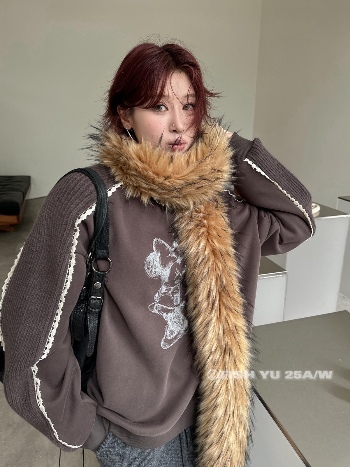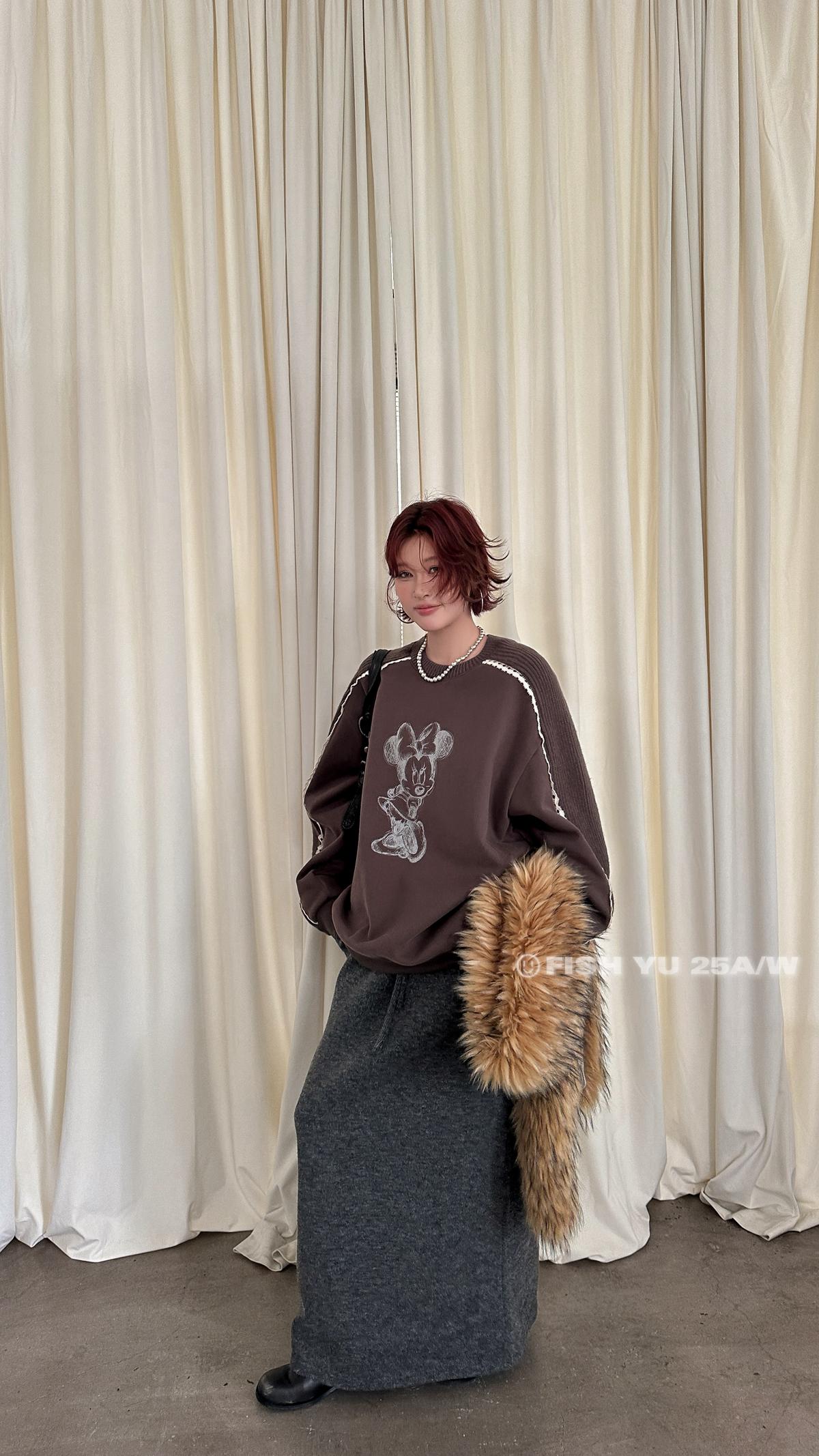 【C7955】韓貨卡通塗鴉米奇印花北極絨毛織拼接花邊內裏複合搖粒絨寬鬆圓領衛衣