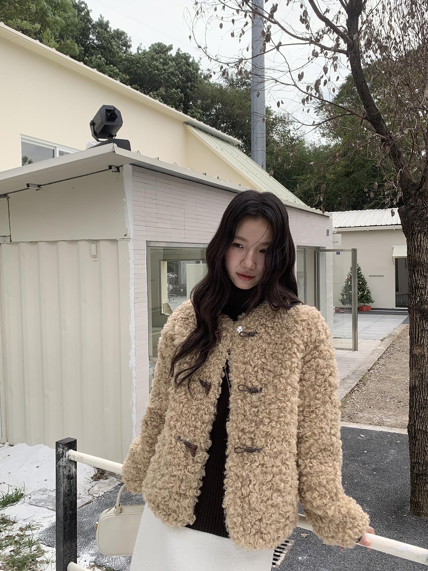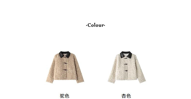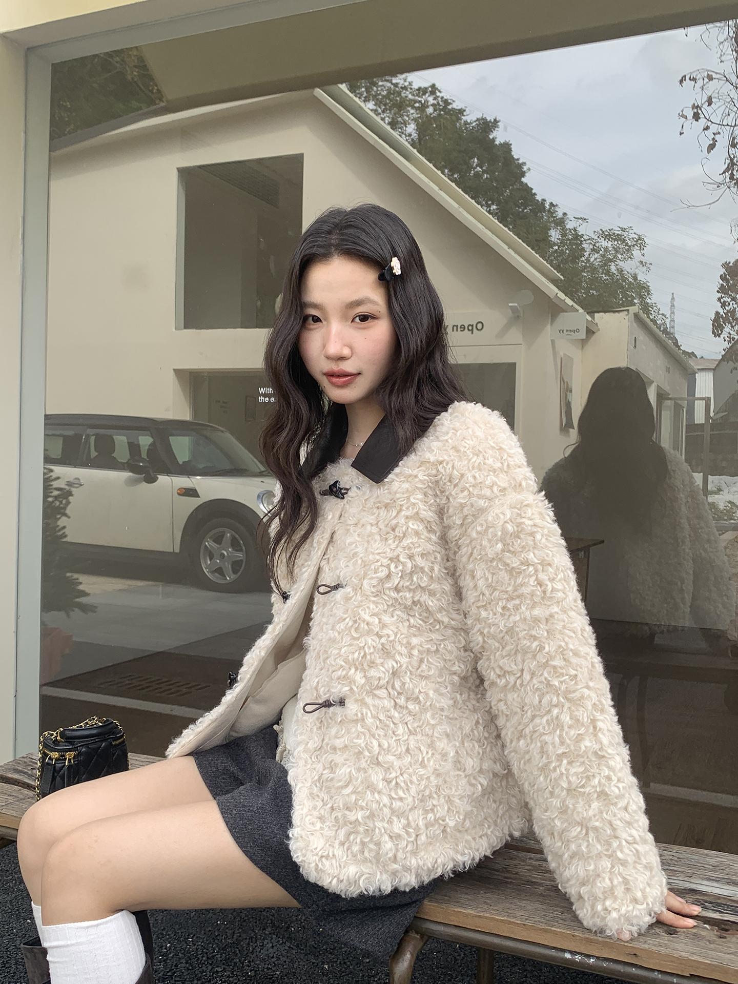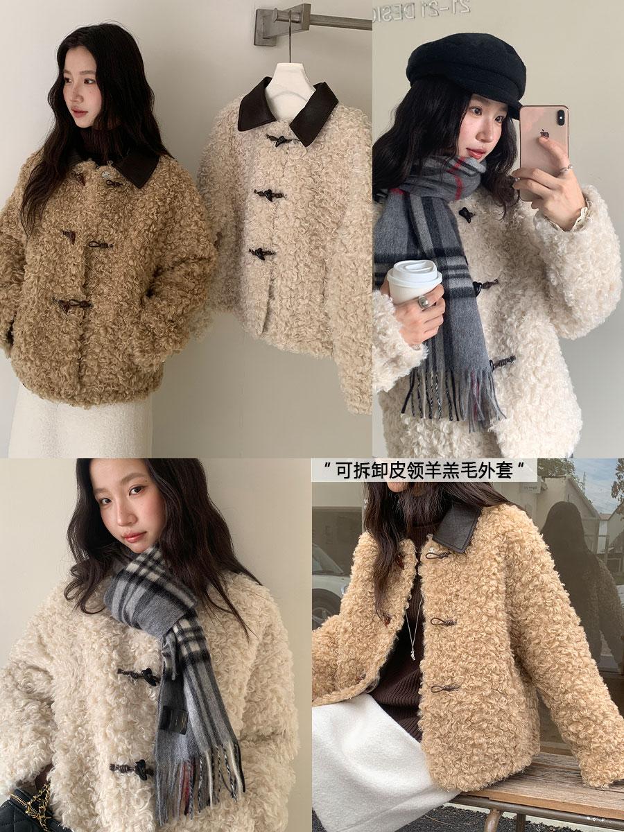 【C7961】冬上新!法式復古可拆皮領仿羊羔羊毛外套(可拆卸皮領)