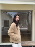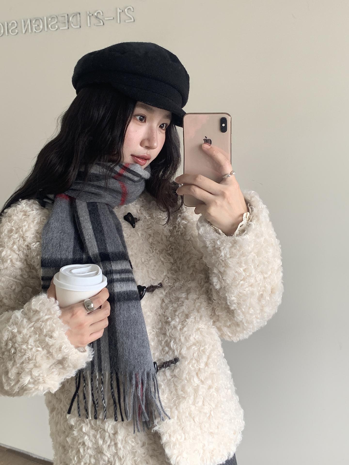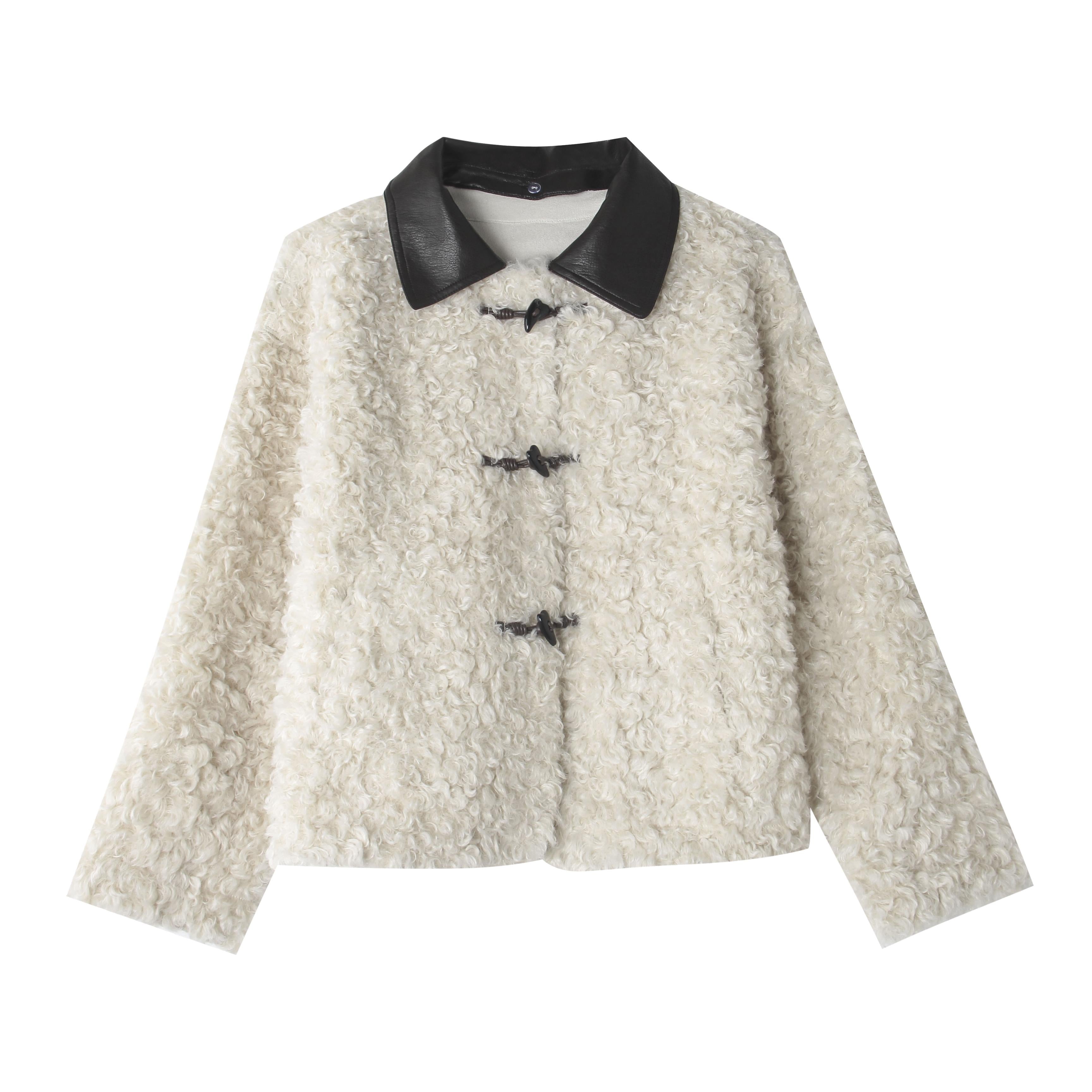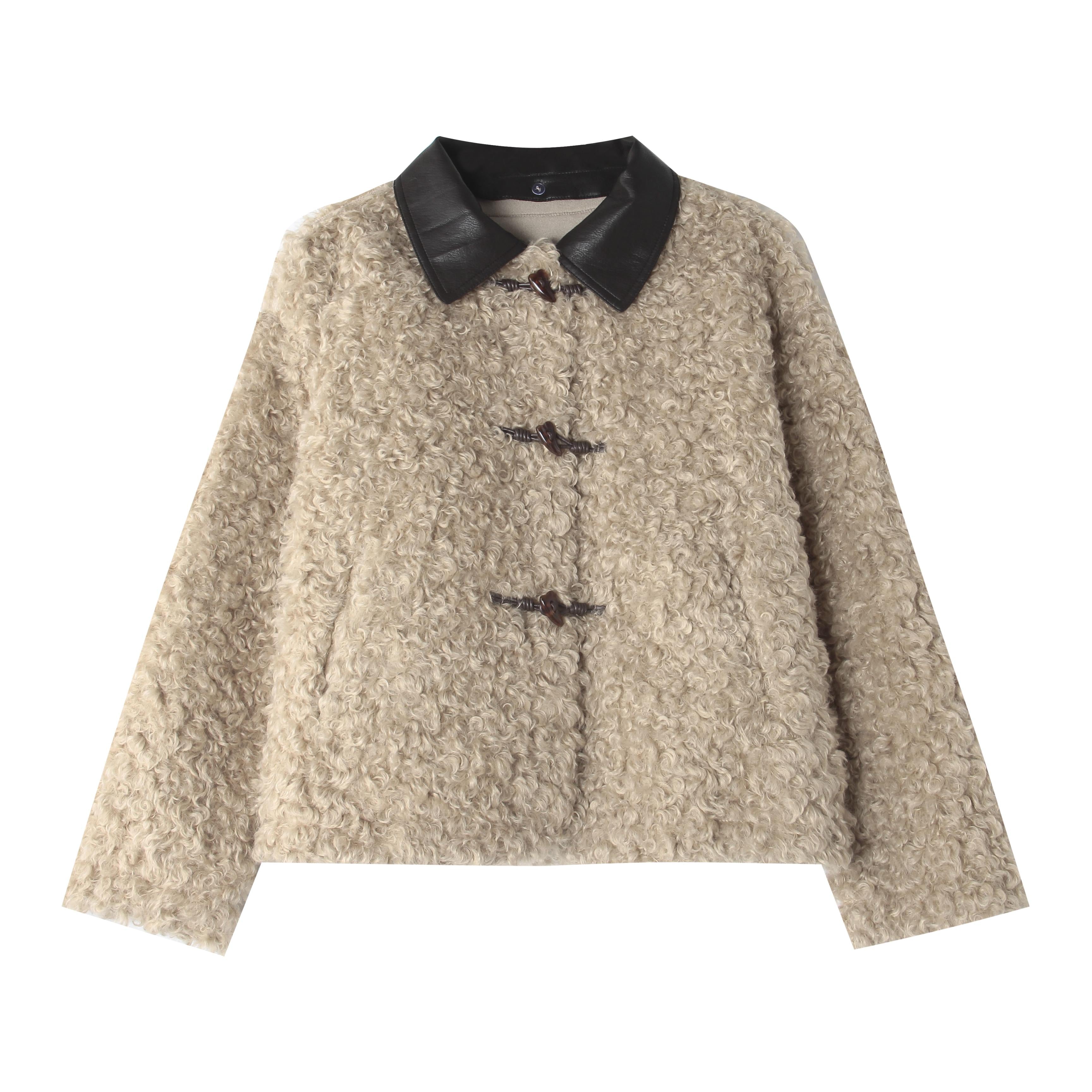 【C7961】冬上新!法式復古可拆皮領仿羊羔羊毛外套(可拆卸皮領)