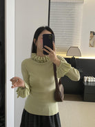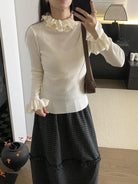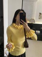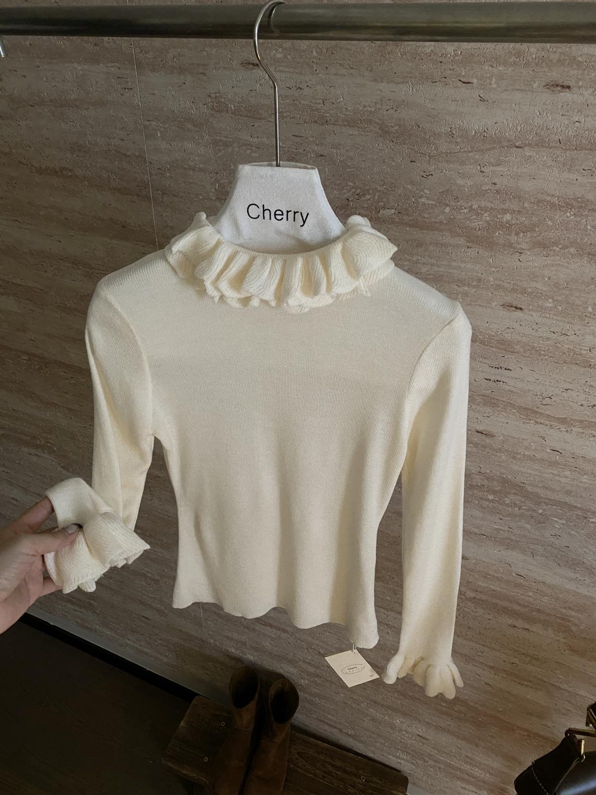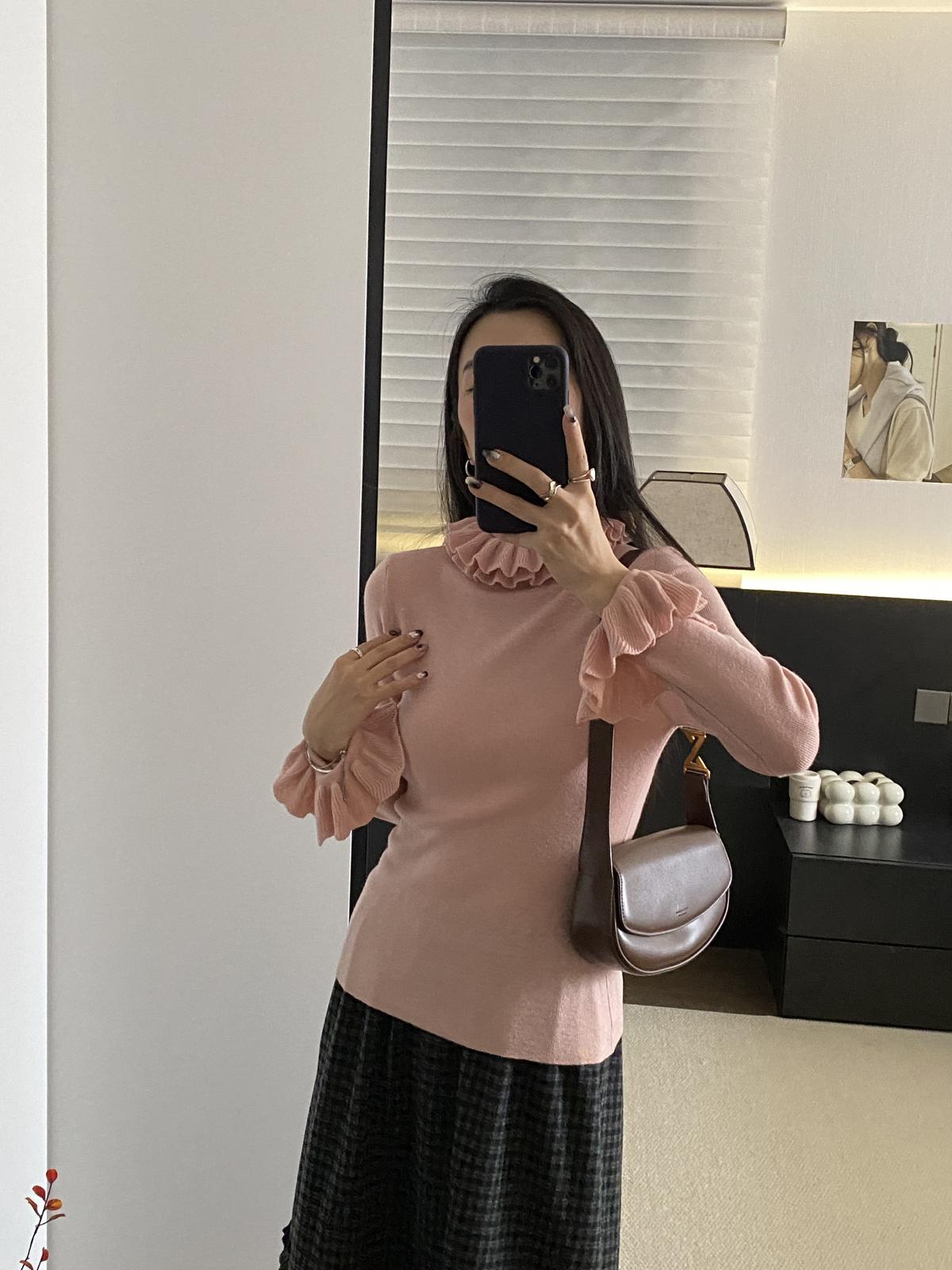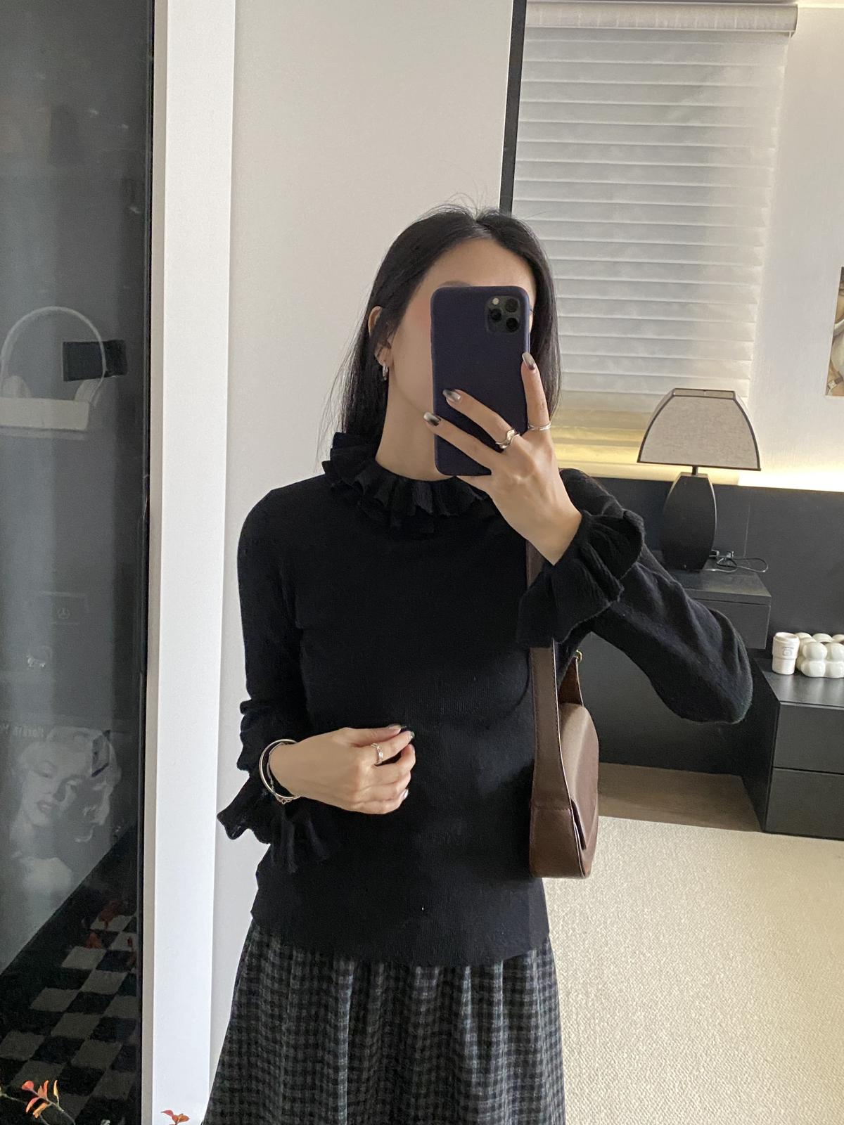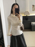 【C7964】韓系甜美翻領花邊純色修身打底衫