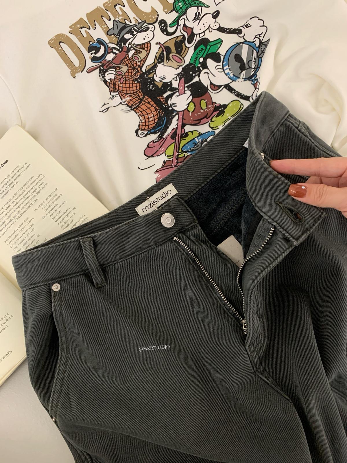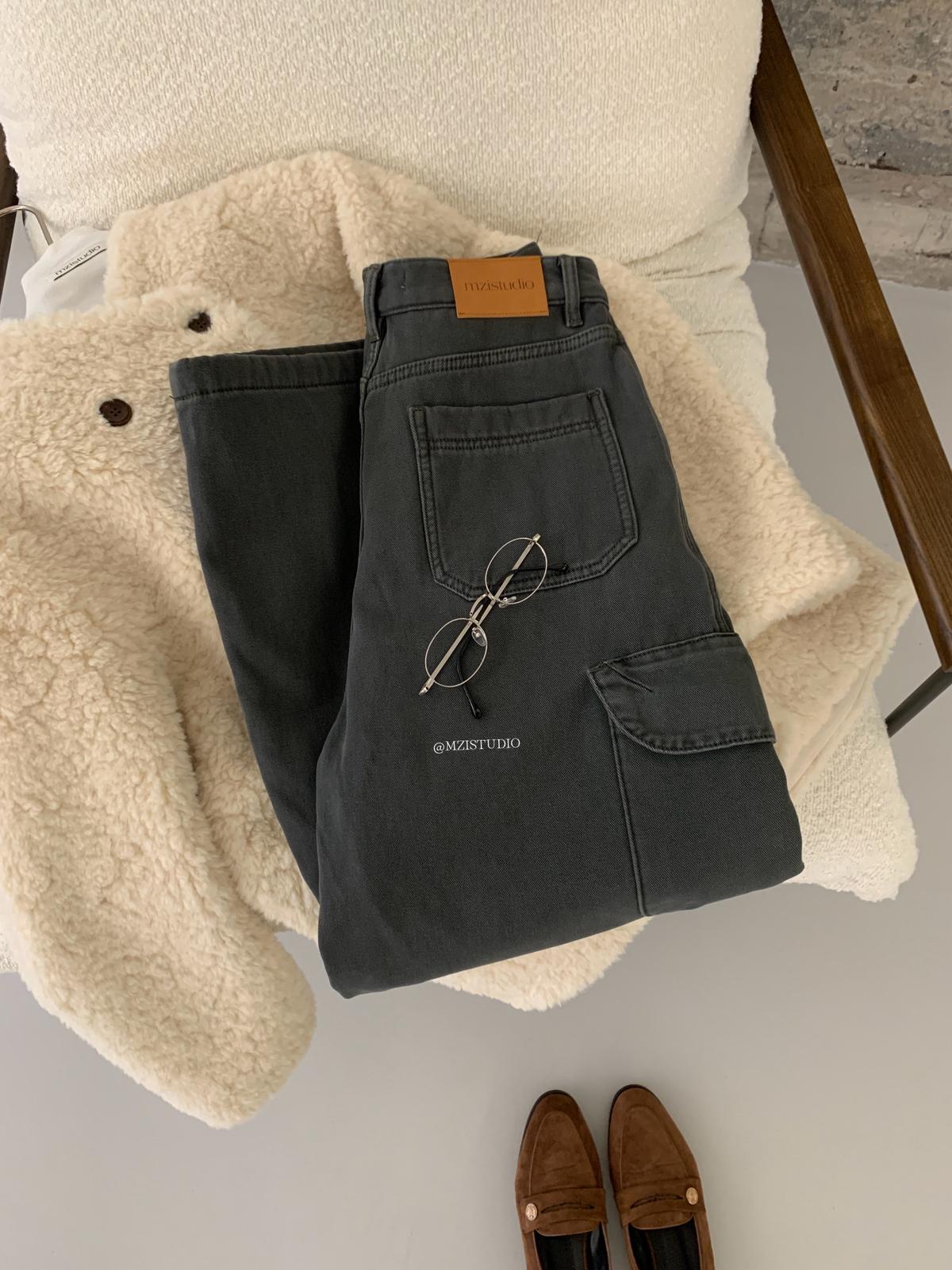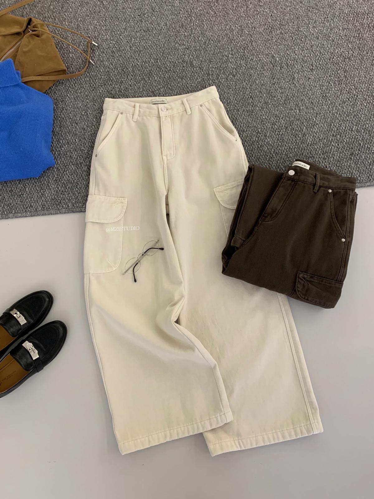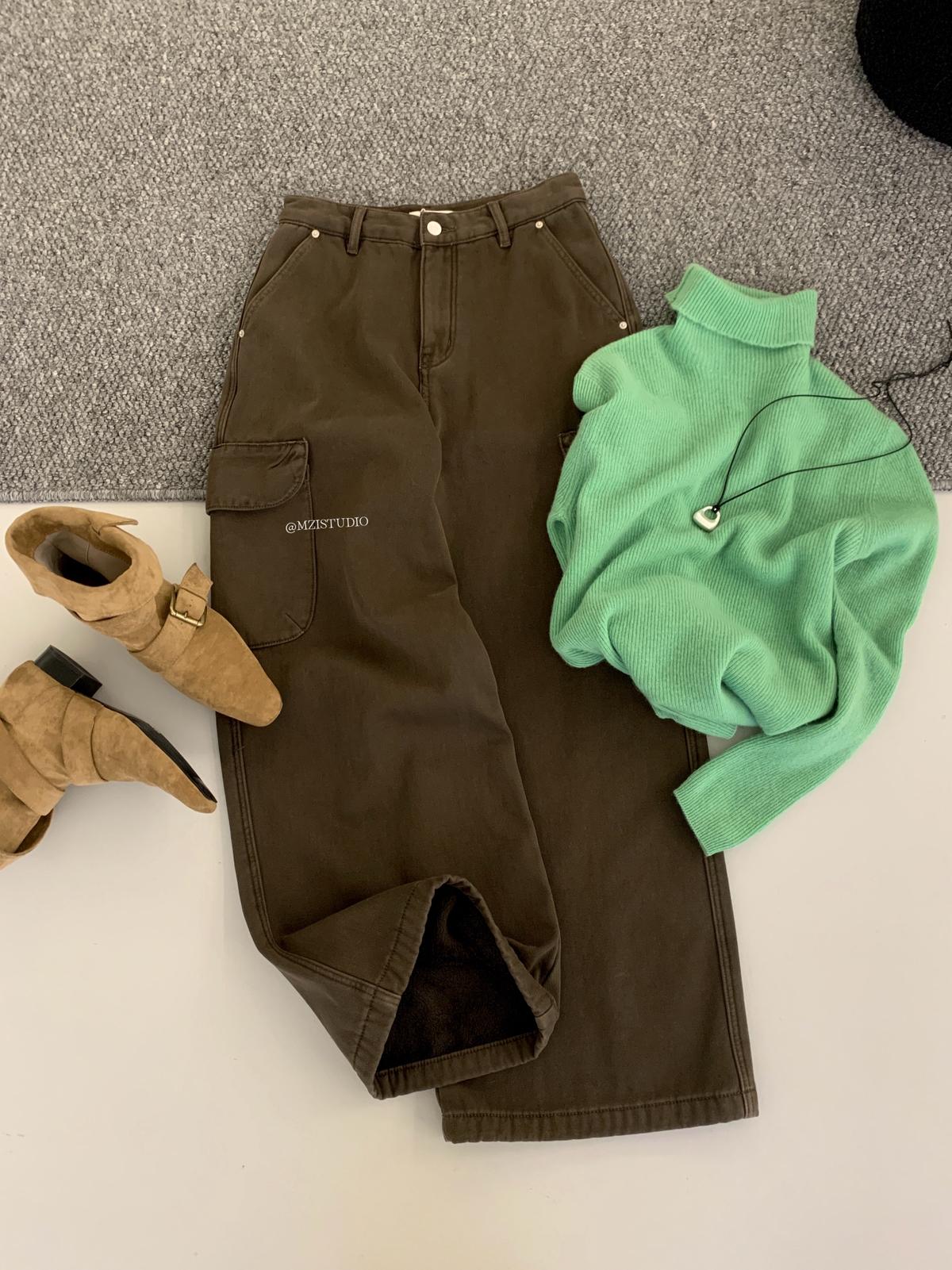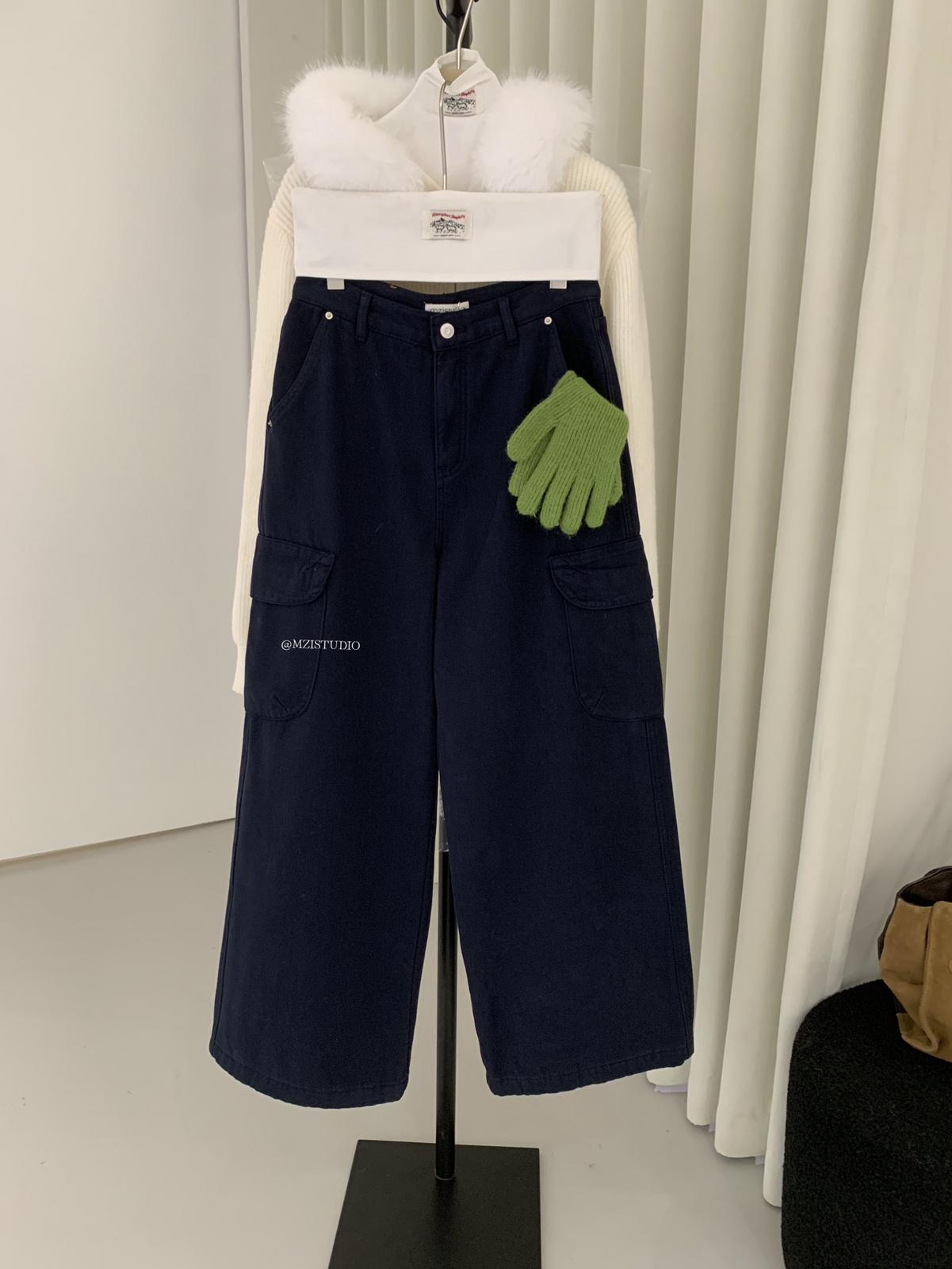 【C7971】慵懶冬日chill假期韓標水洗多色工裝複合絨設計感大口袋牛仔褲