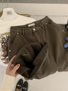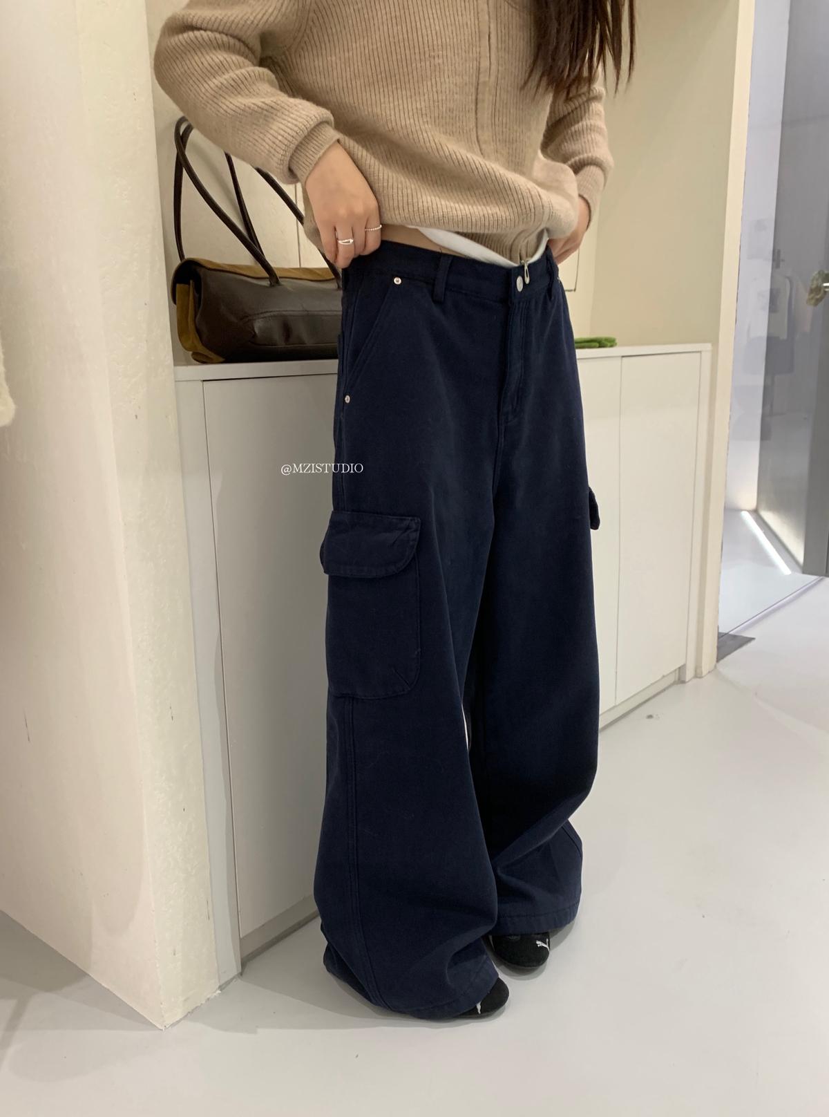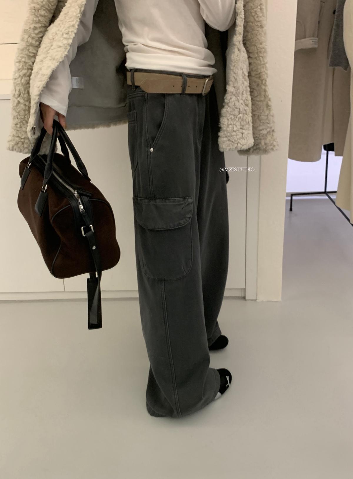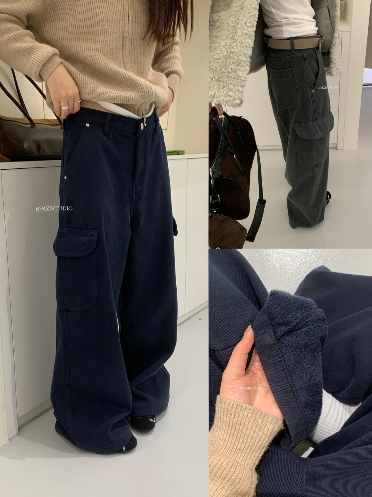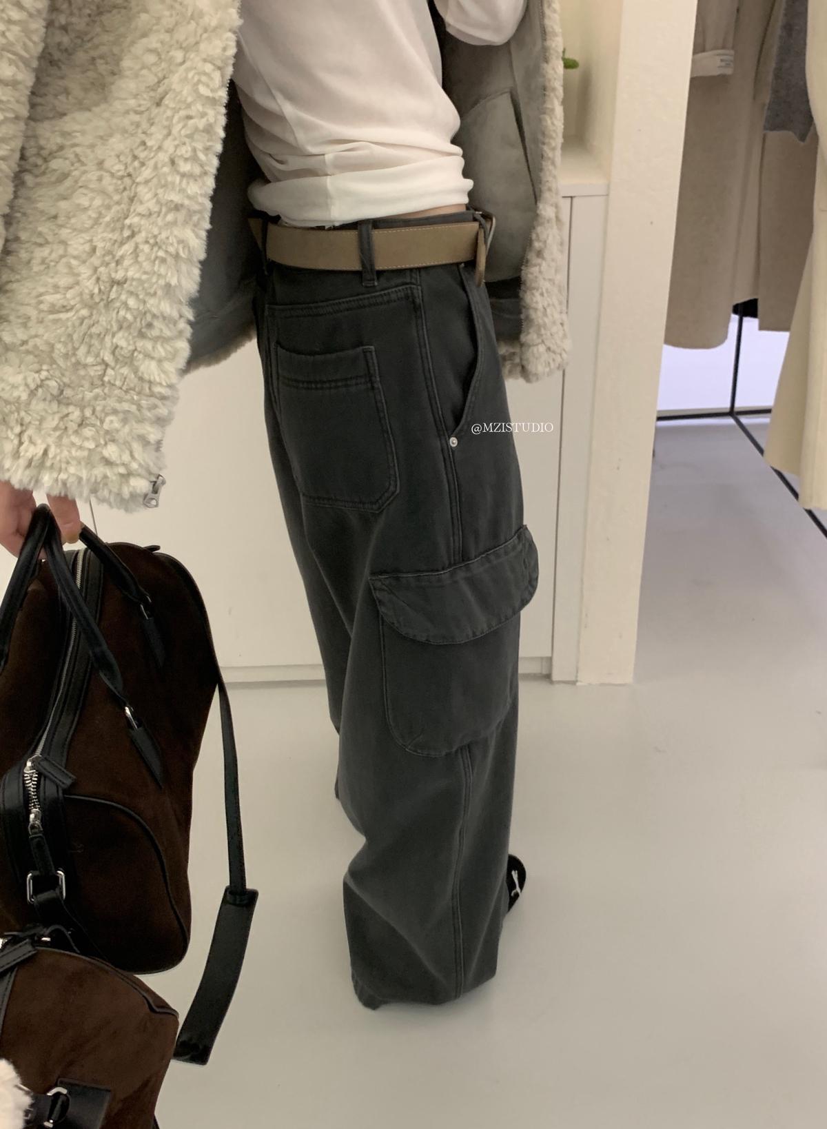 【C7971】慵懶冬日chill假期韓標水洗多色工裝複合絨設計感大口袋牛仔褲
