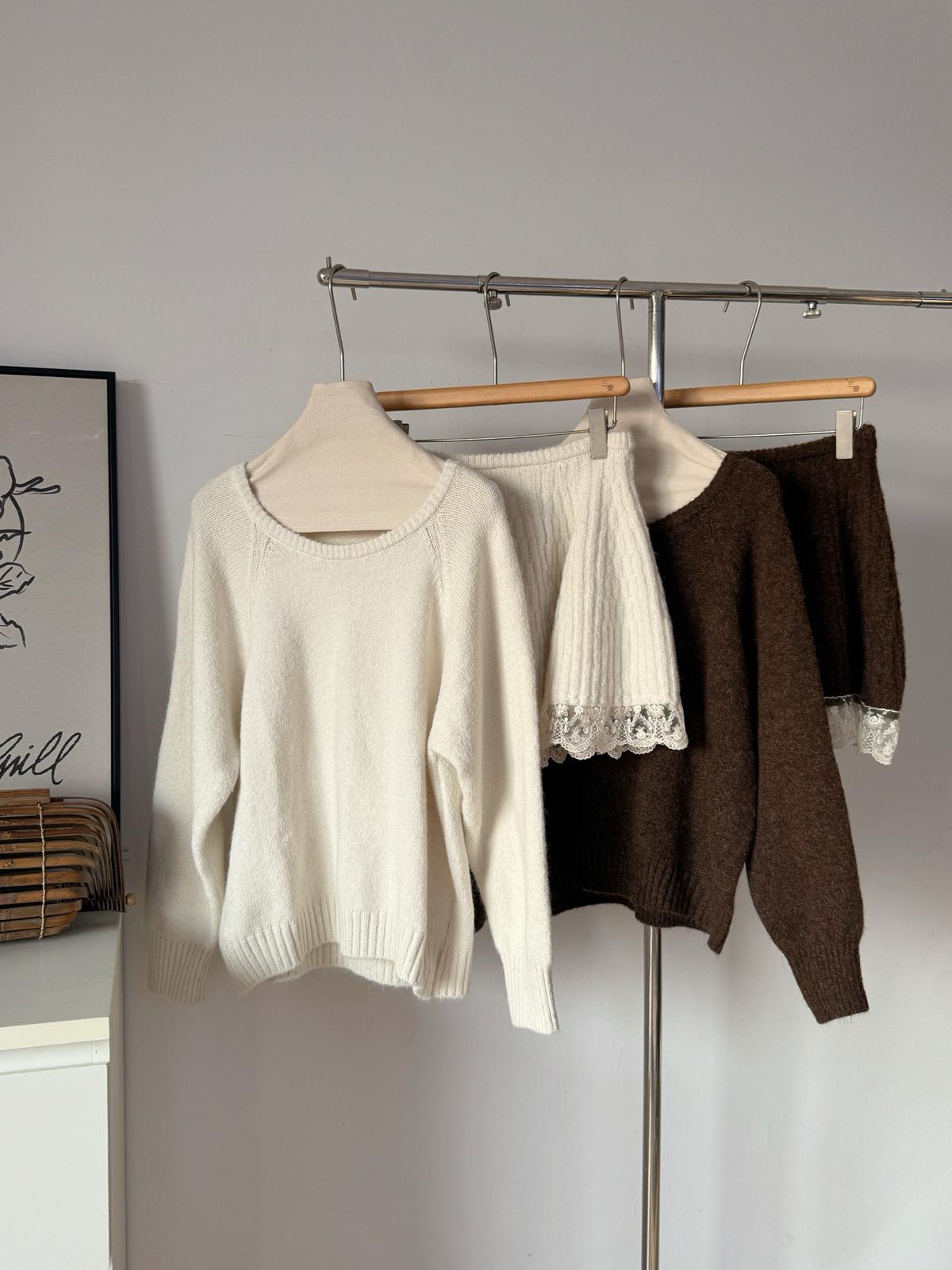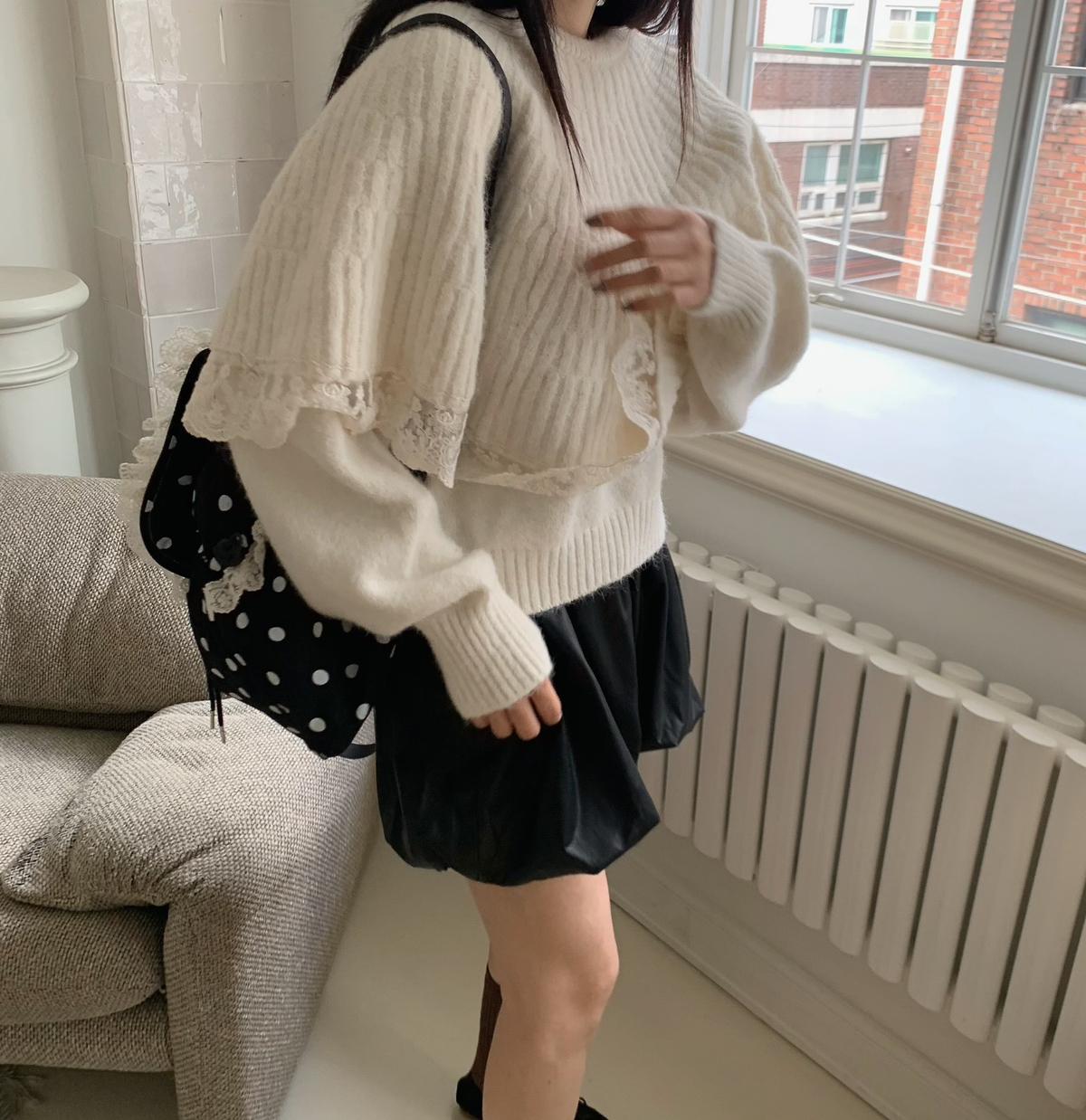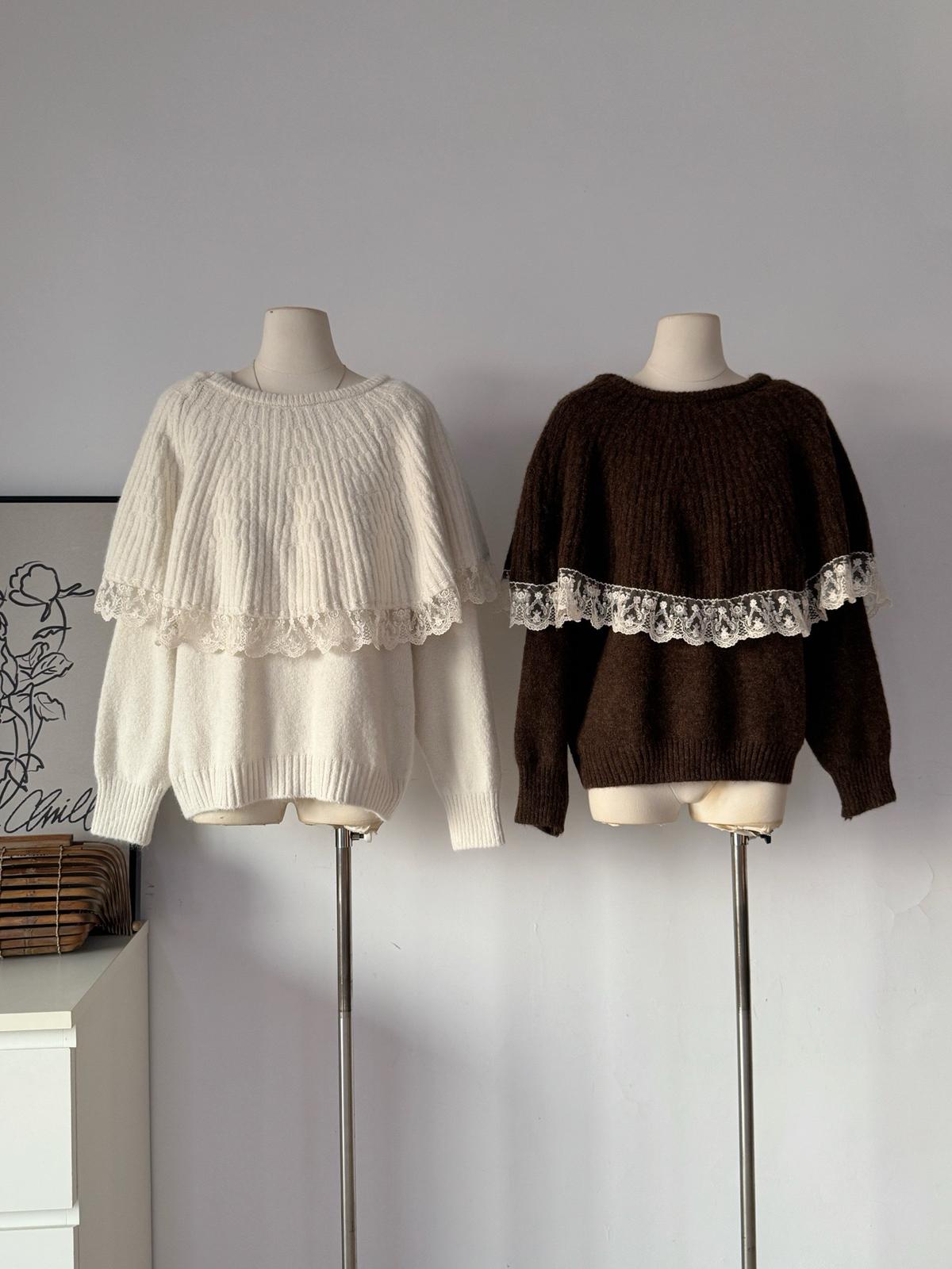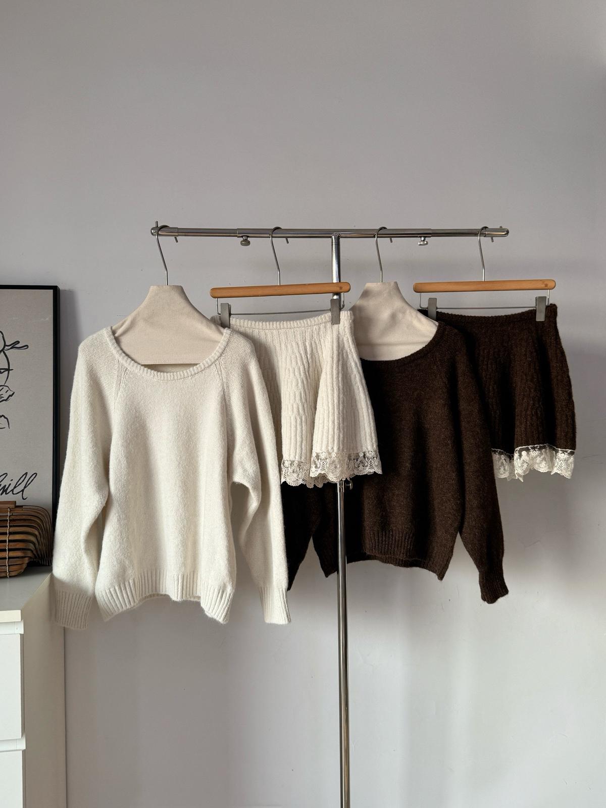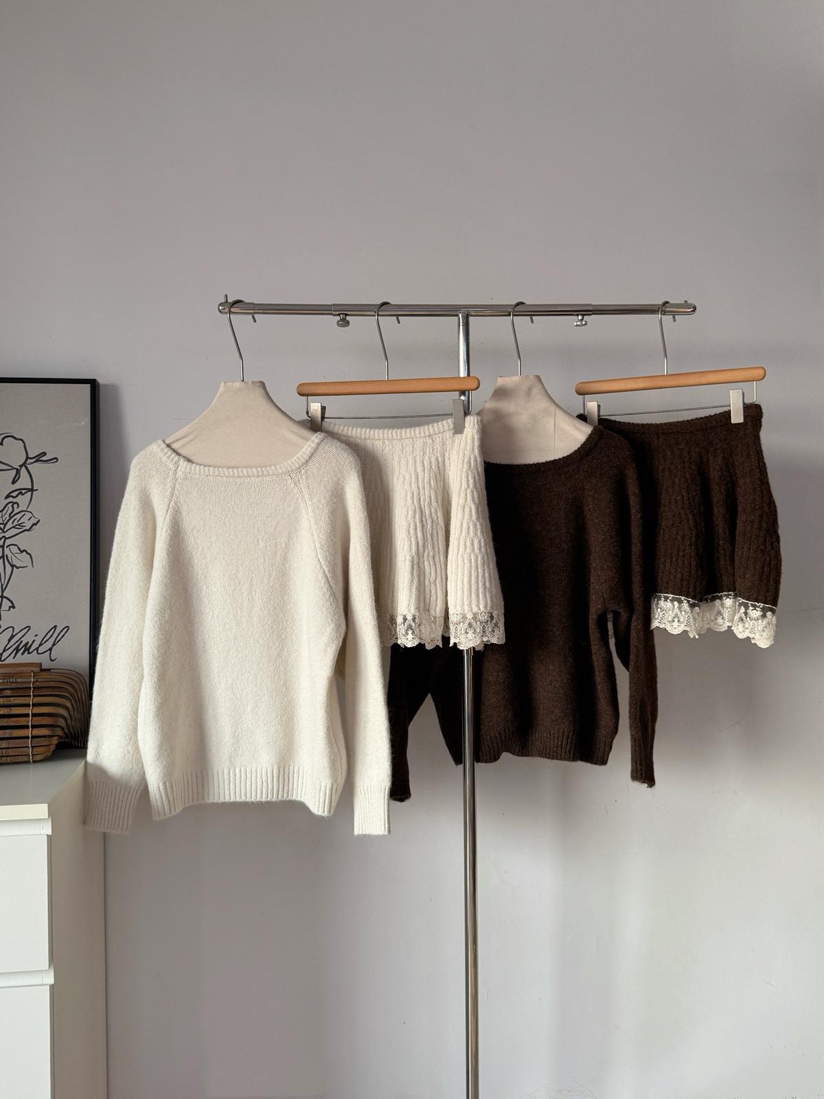 【C7972】韓系坑條針織衫毛衣➕兩穿披肩斗篷半身裙套裝
