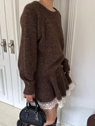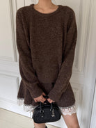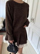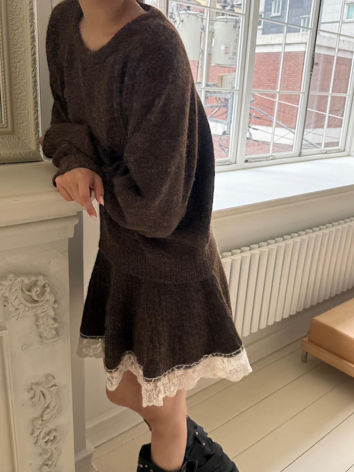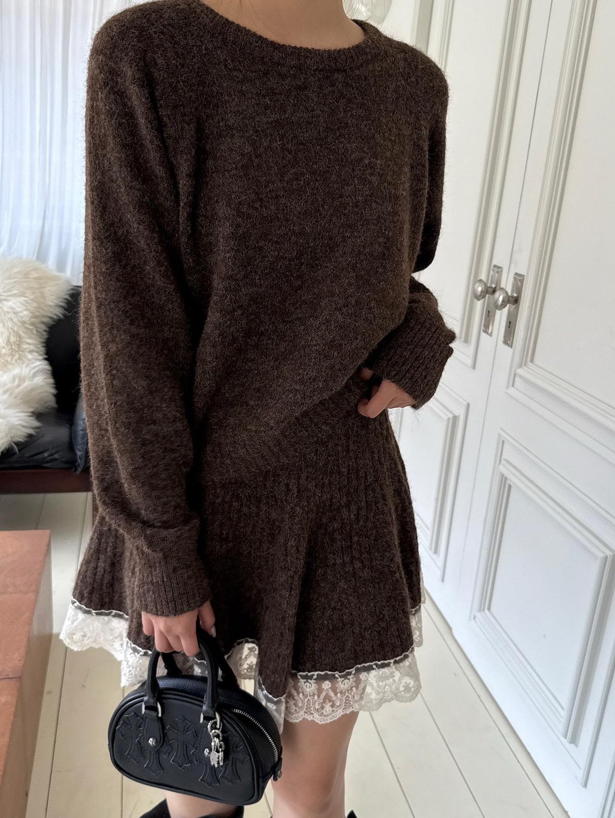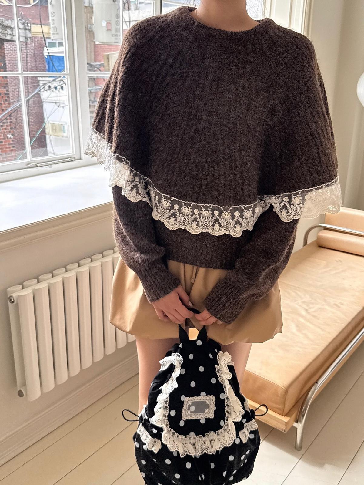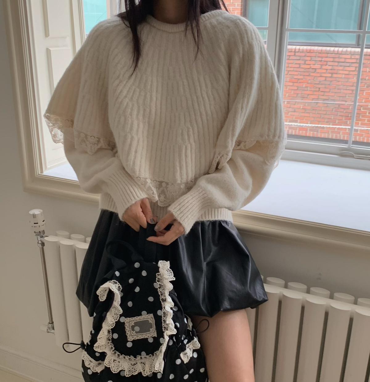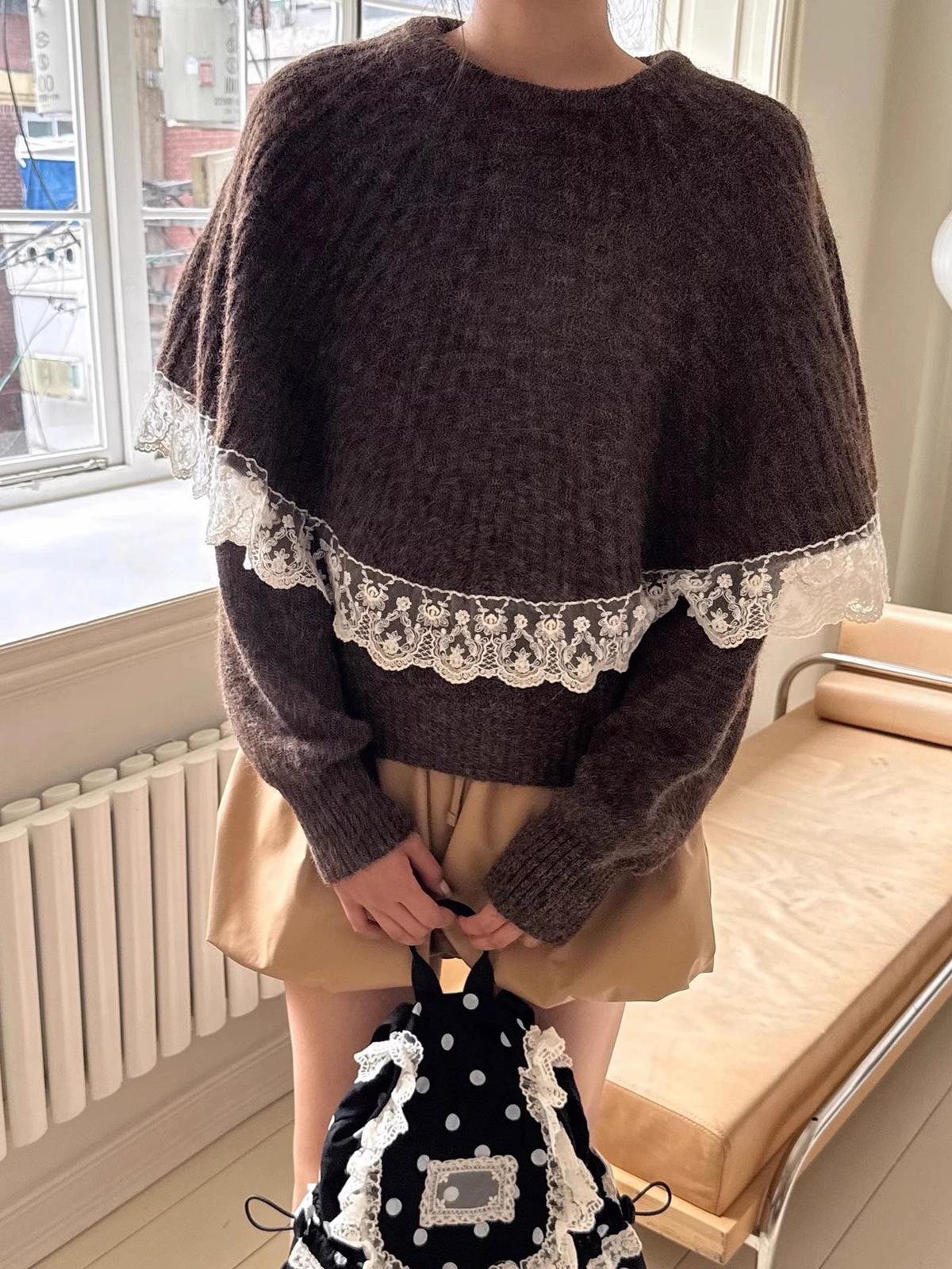【C7972】韓系坑條針織衫毛衣➕兩穿披肩斗篷半身裙套裝