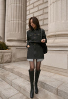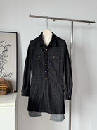 【C7973】韓系復古牛仔襯衫裙連衣裙(配腰帶)