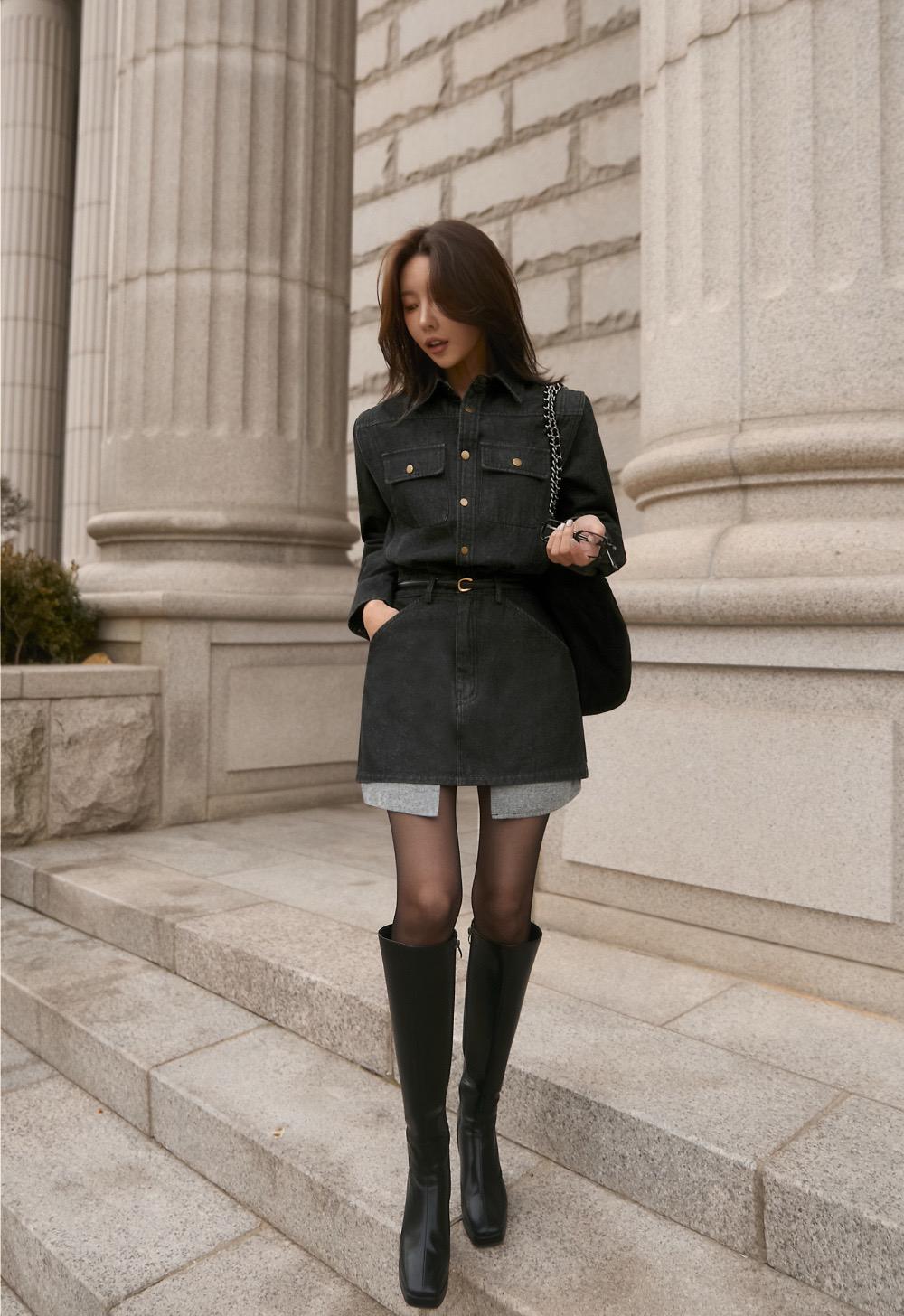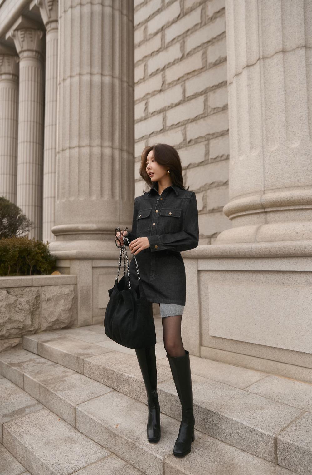 3. 【C7973】韓系復古牛仔襯衫裙連衣裙(配腰帶)