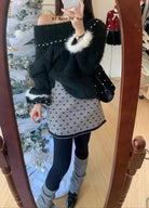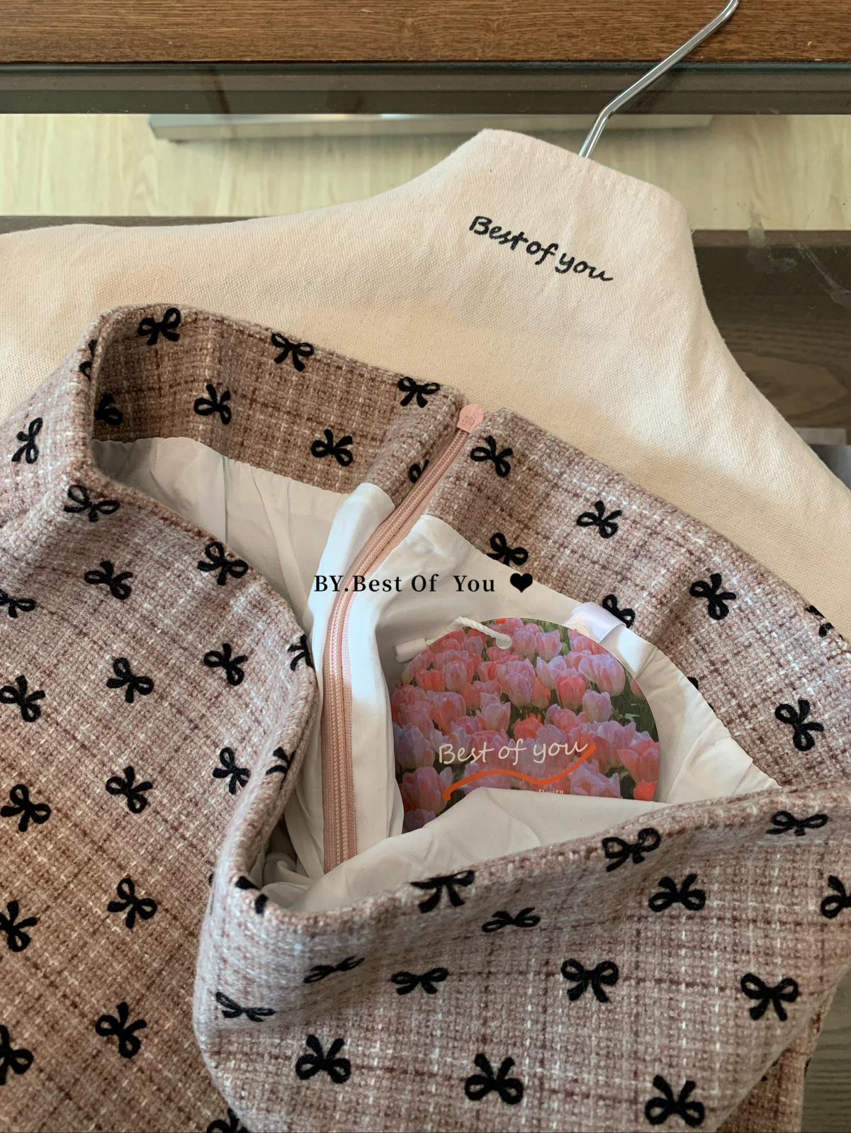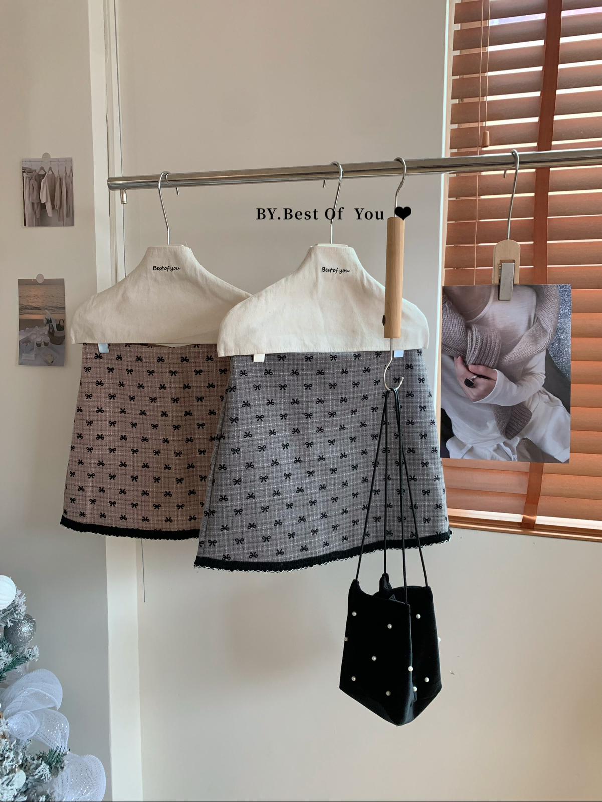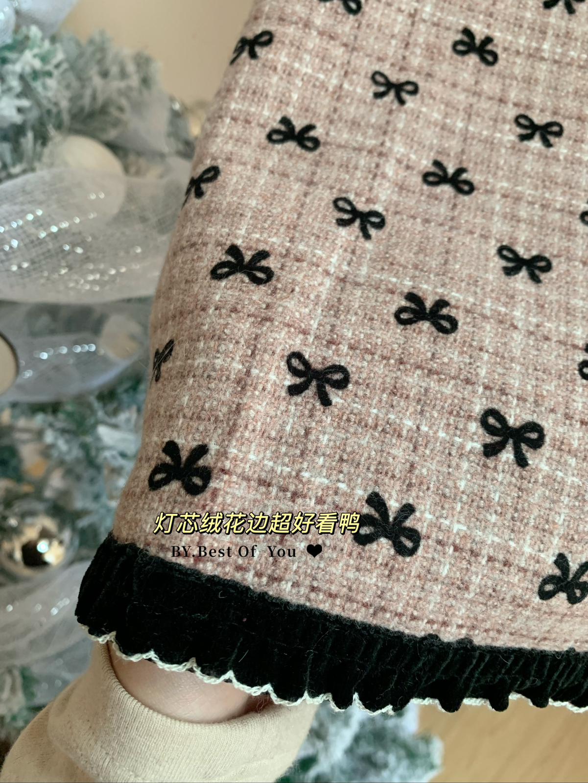 【C7977】復古風植絨蝴蝶結設計感半身裙