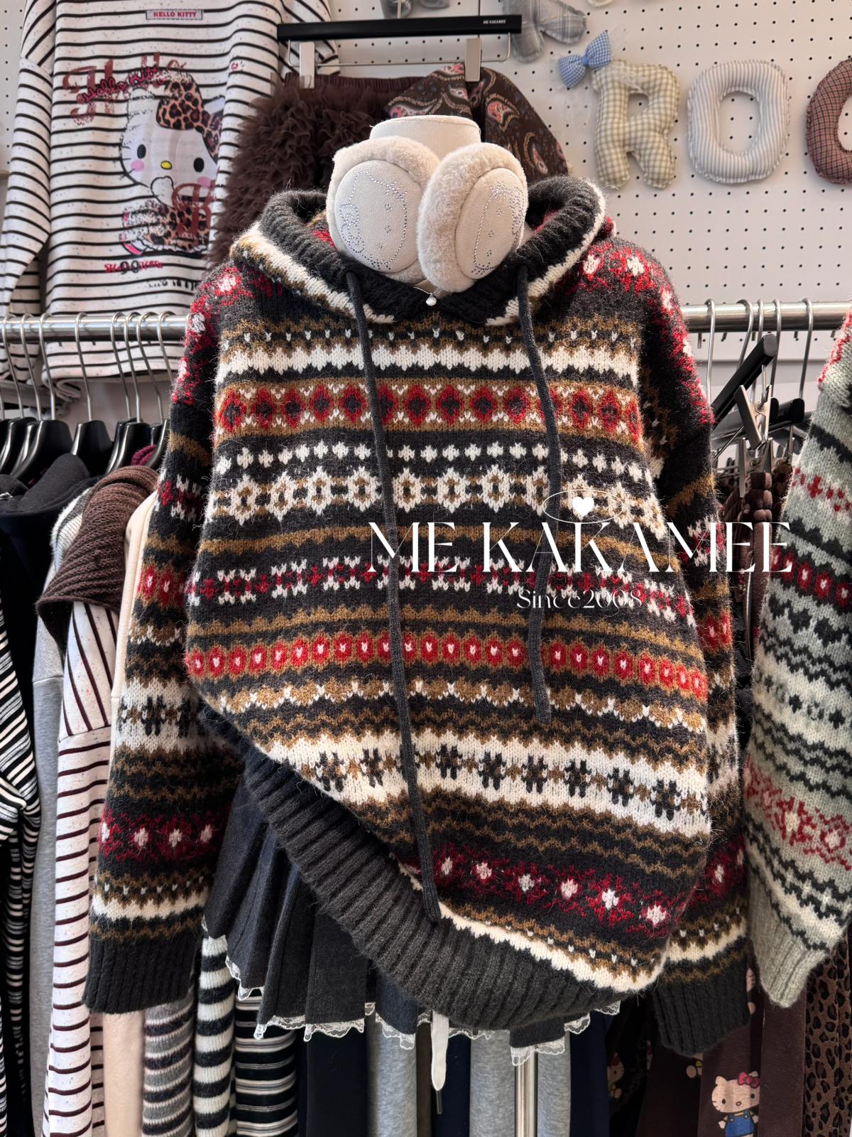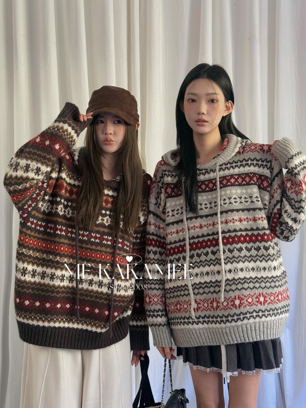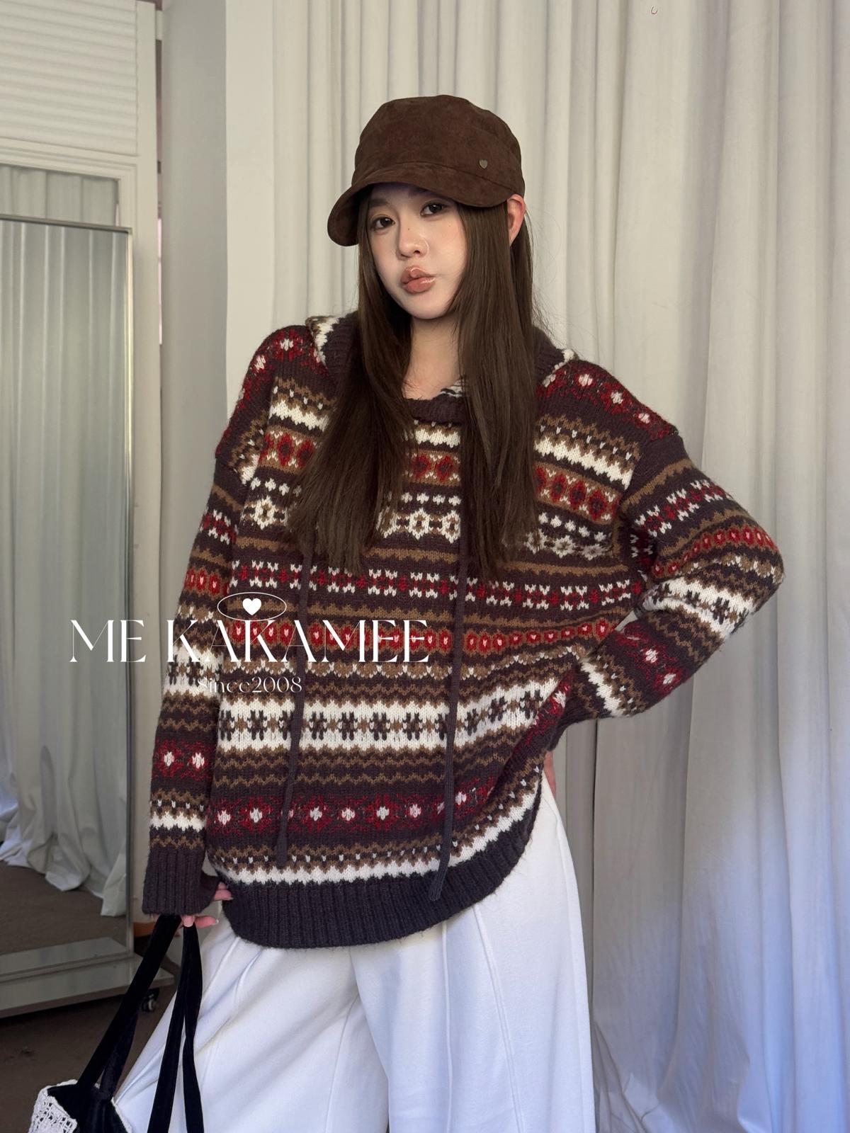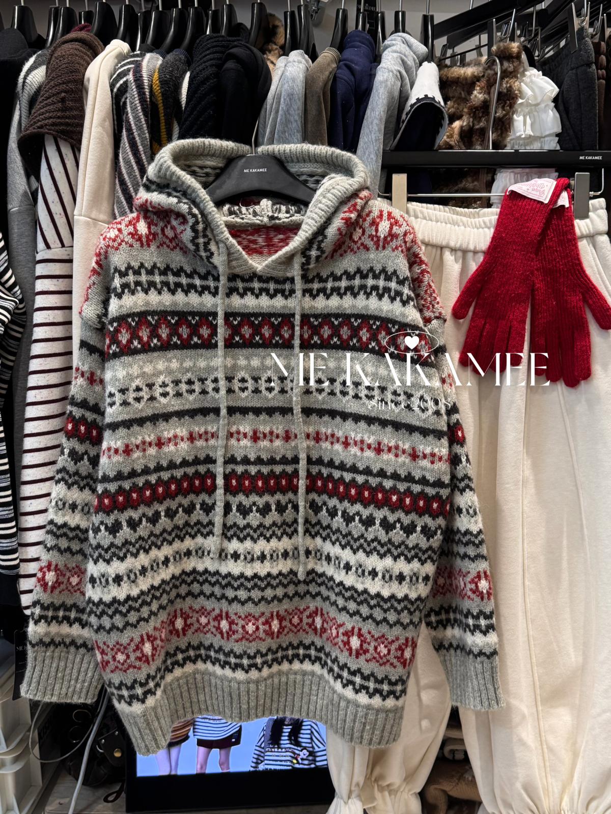 【C7981】冬新品復古費爾島軟糯厚實連帽套頭保暖毛衣