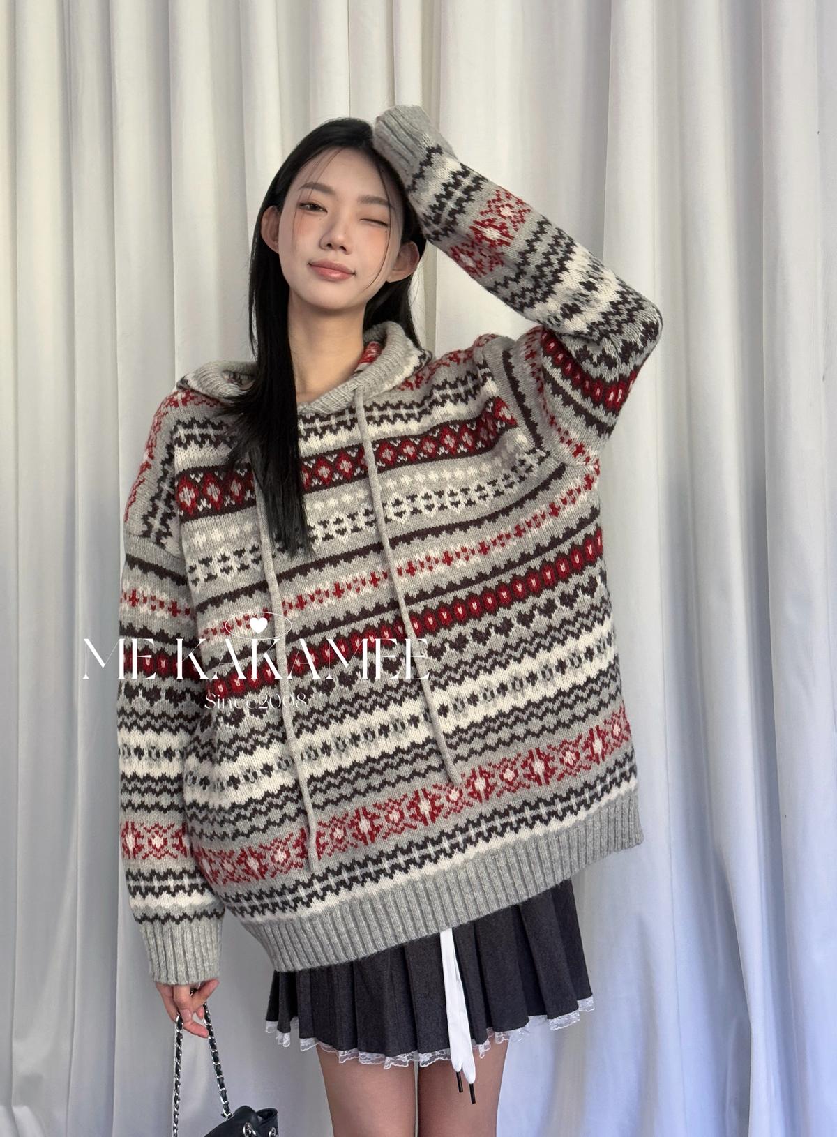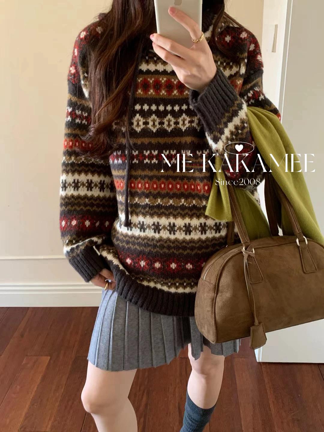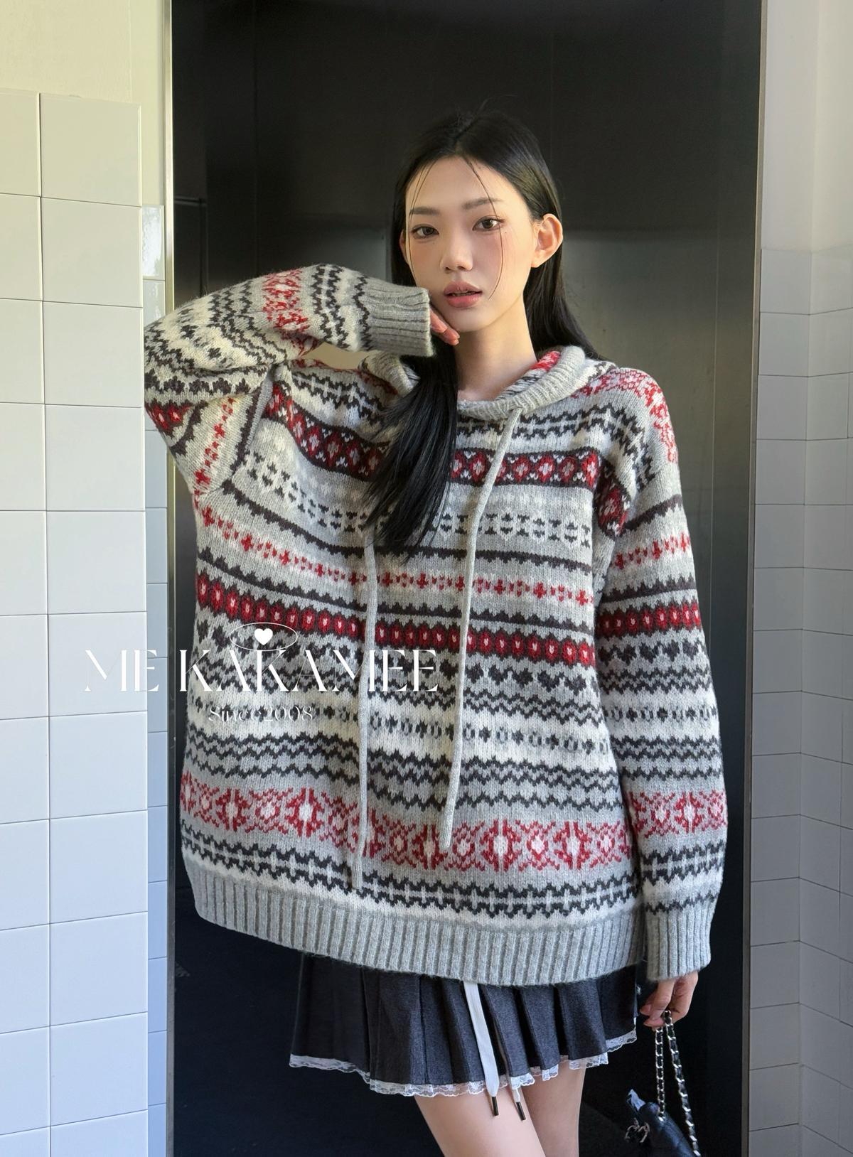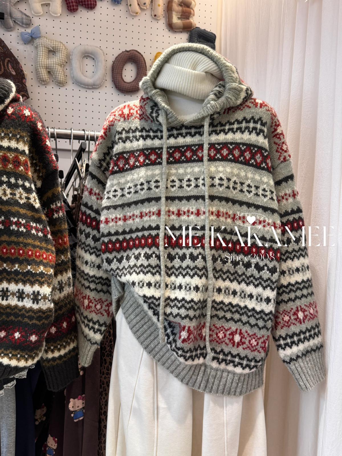 【C7981】冬新品復古費爾島軟糯厚實連帽套頭保暖毛衣