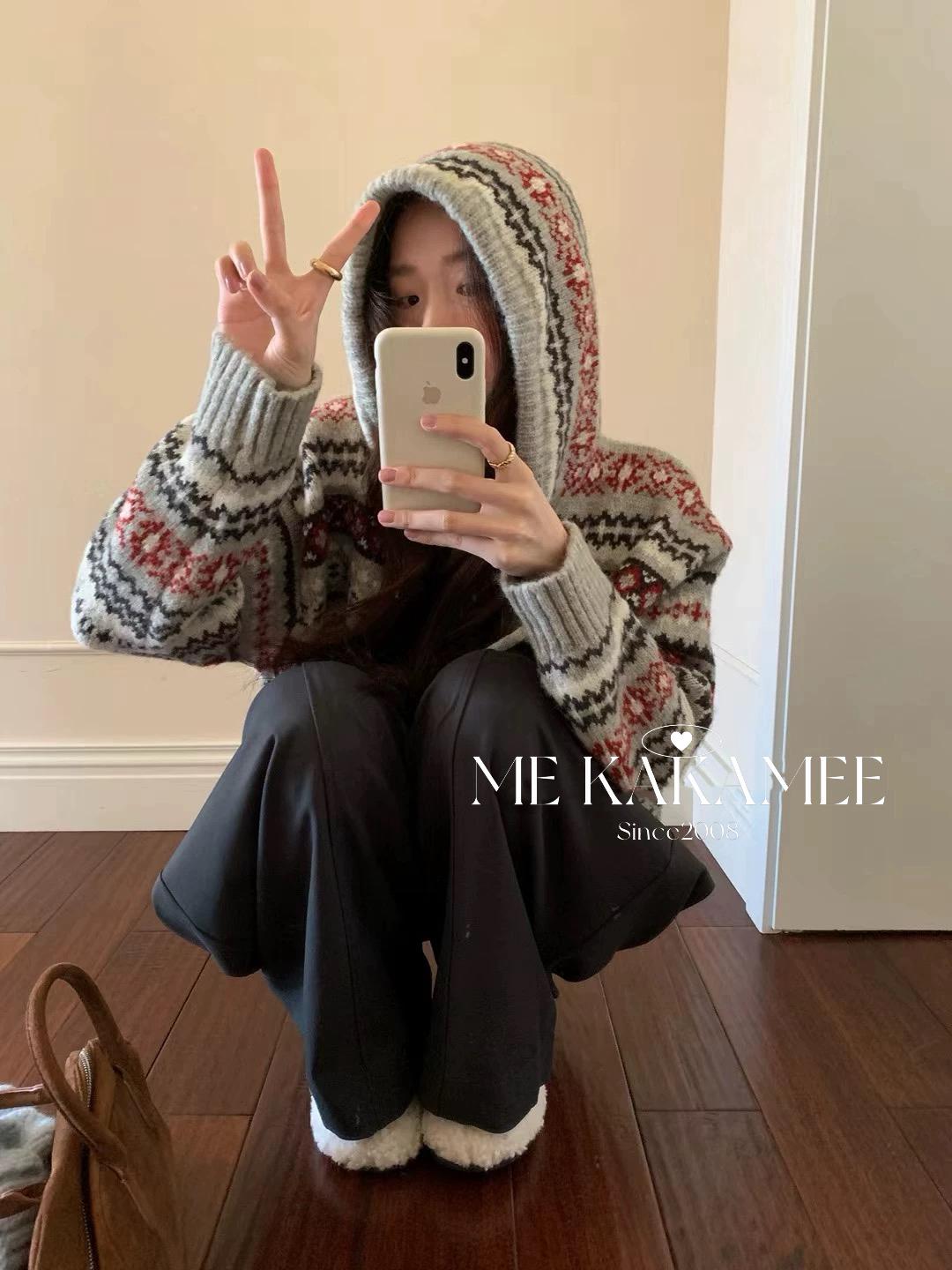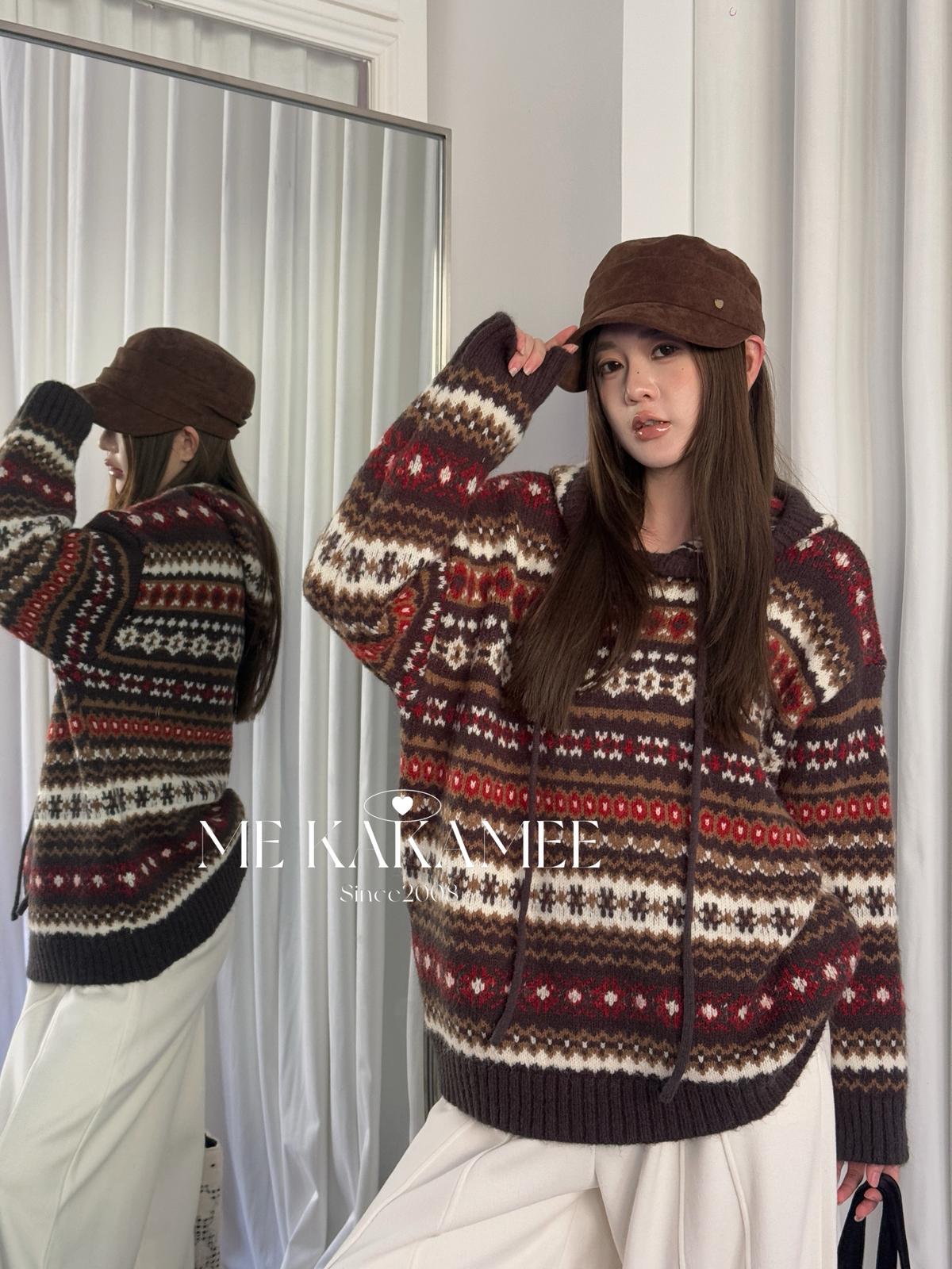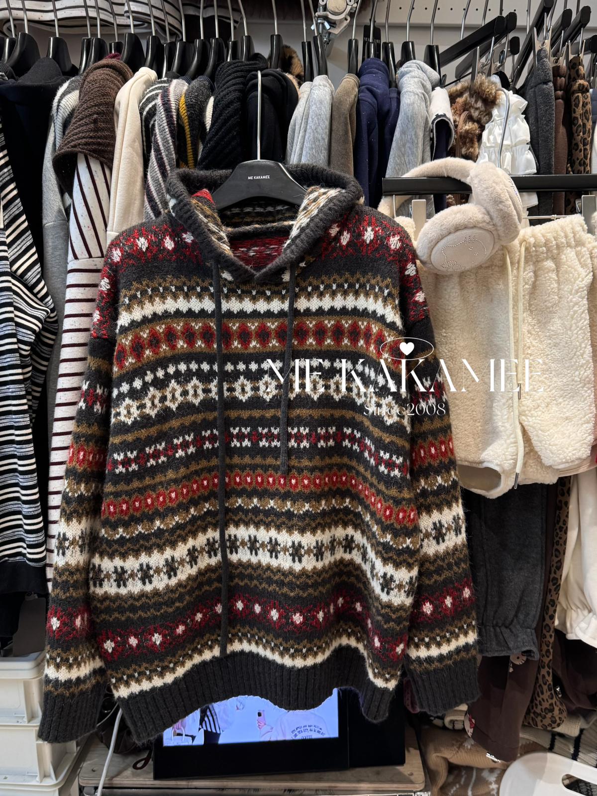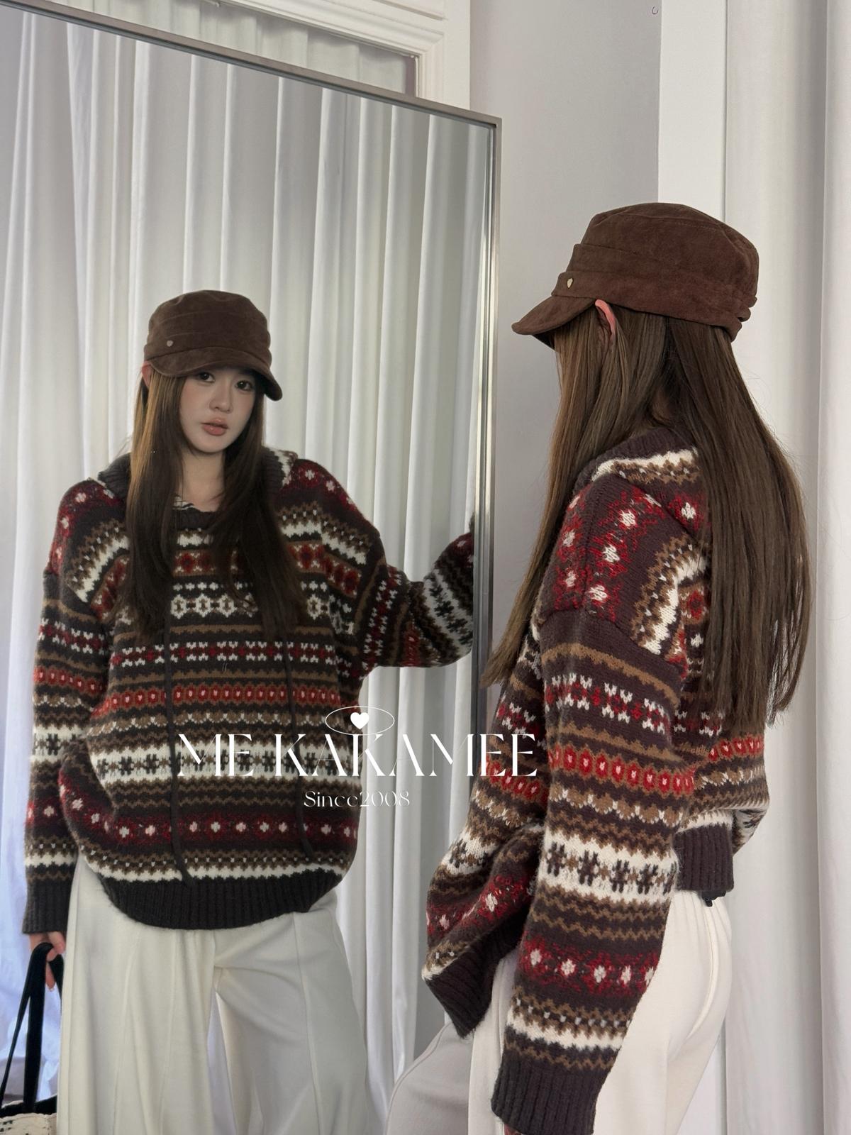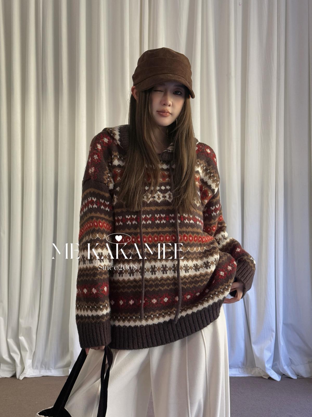 【C7981】冬新品復古費爾島軟糯厚實連帽套頭保暖毛衣