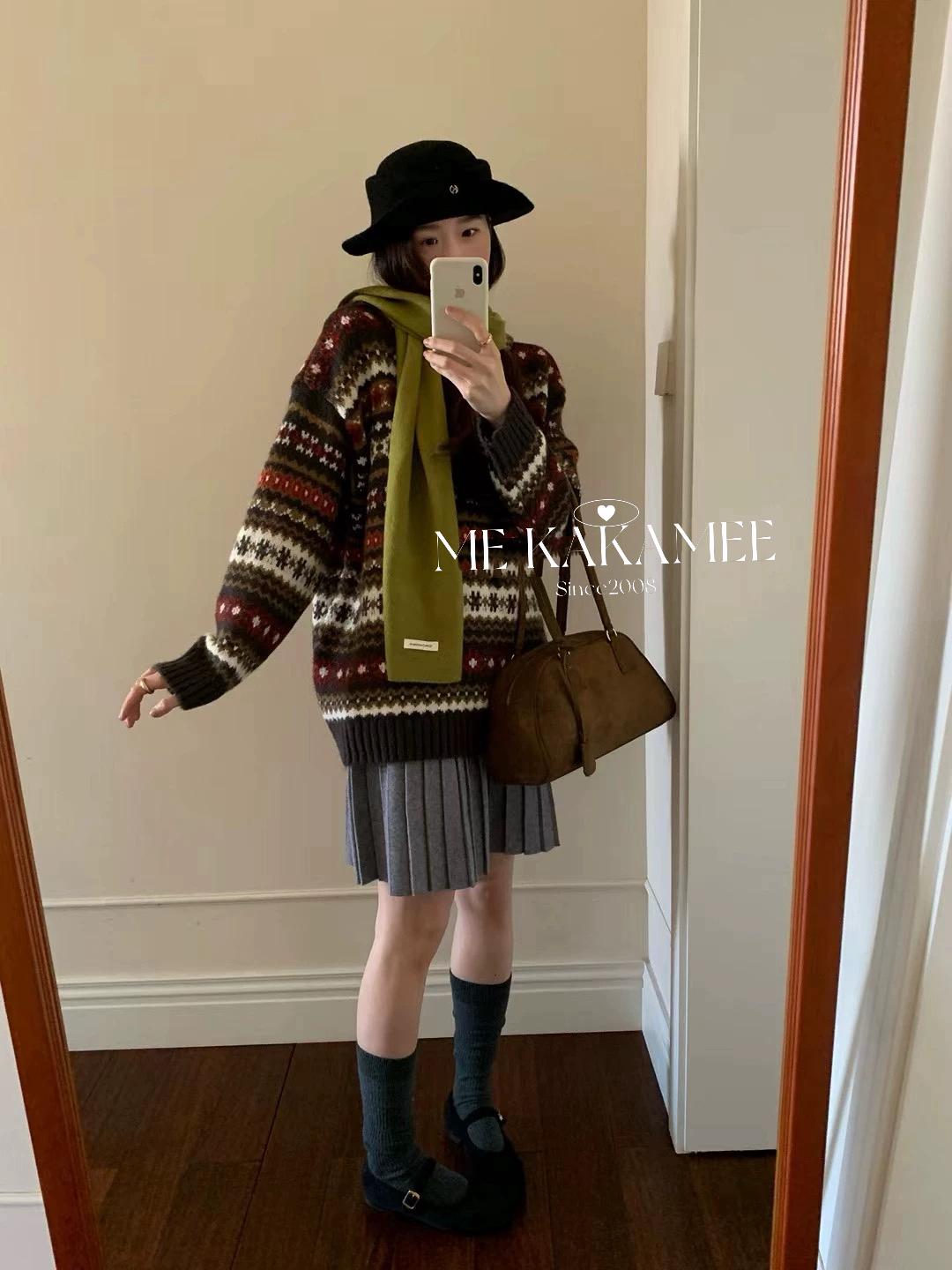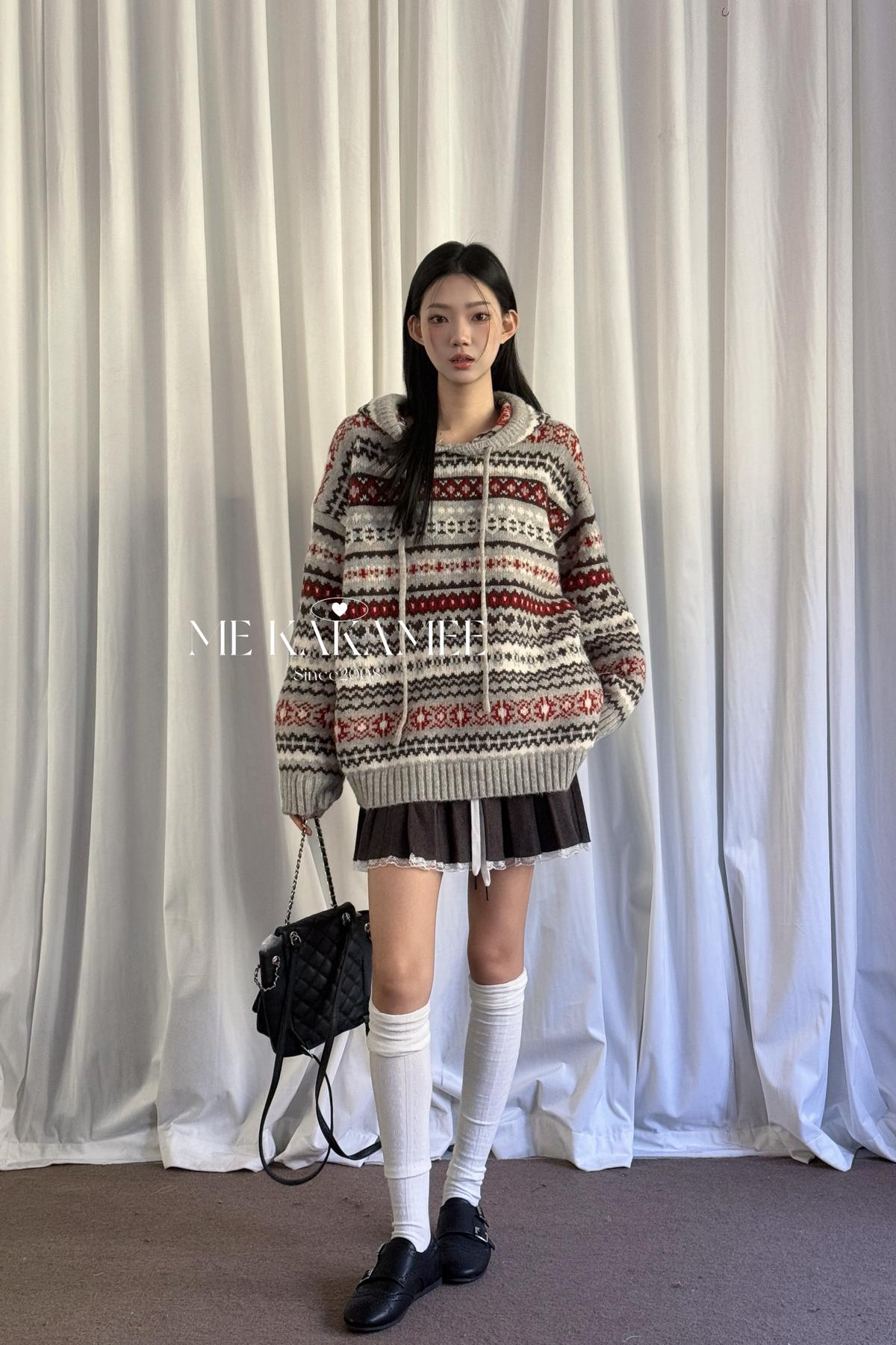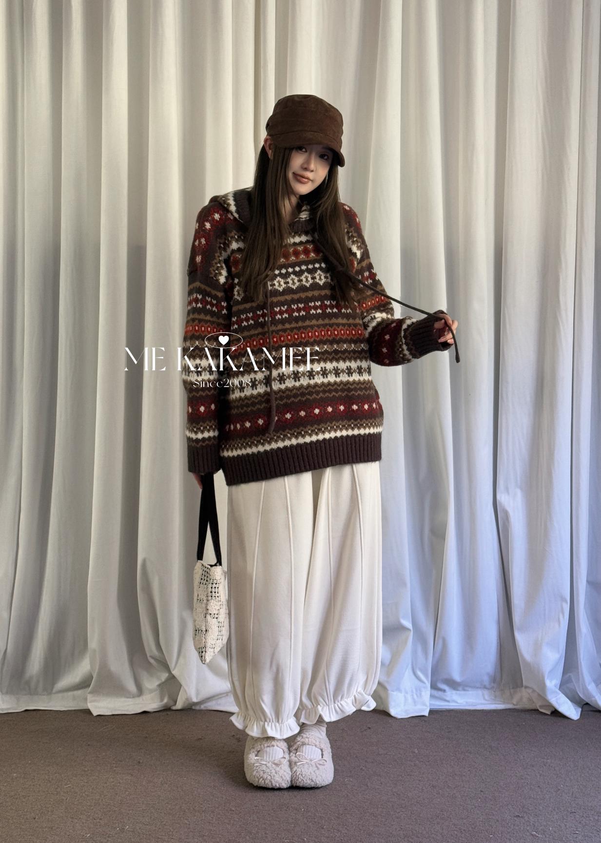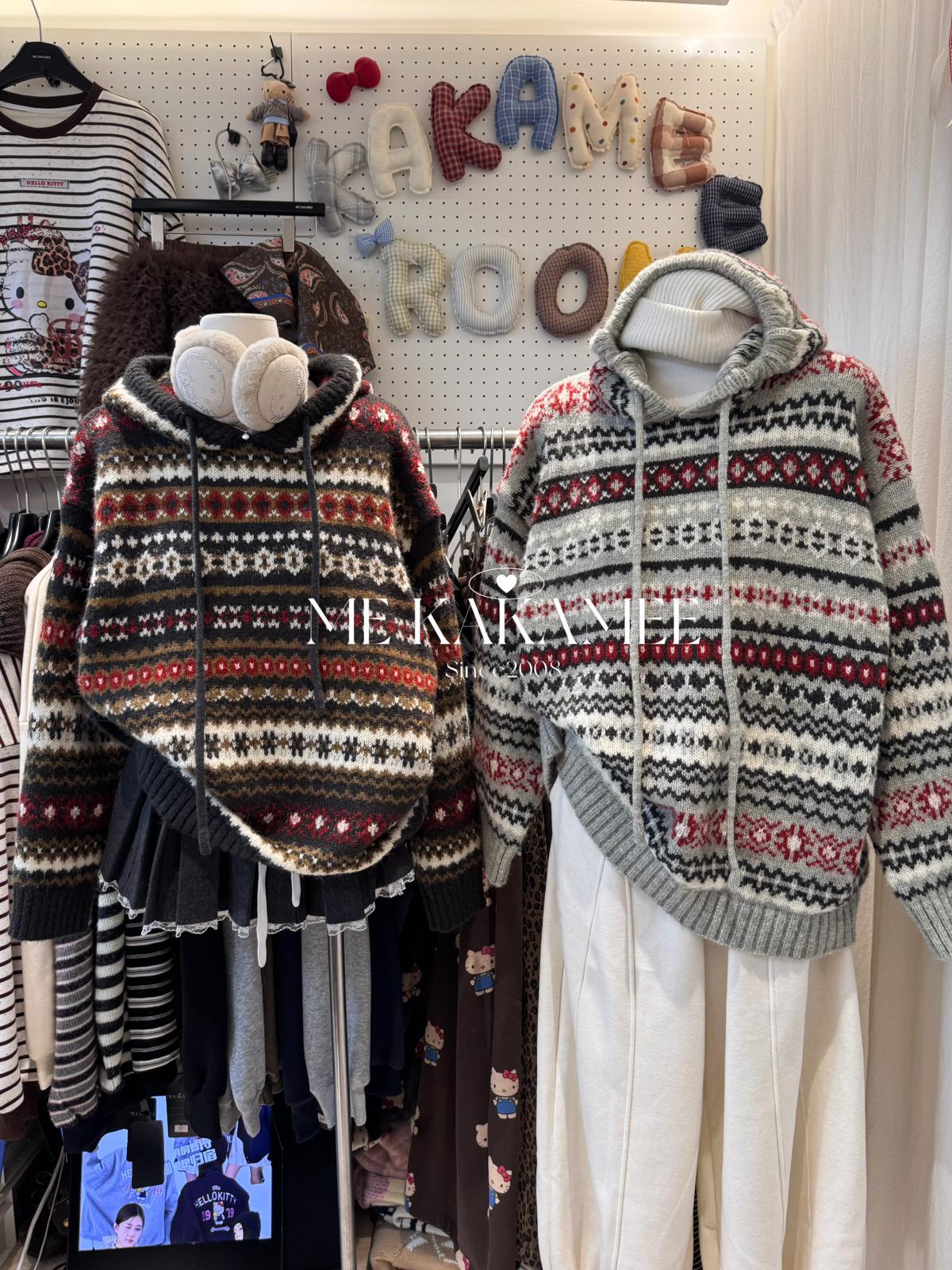 【C7981】冬新品復古費爾島軟糯厚實連帽套頭保暖毛衣