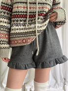 3. 【C7982】冬新品韓系簡約木耳花邊加厚加絨純色百搭顯瘦休閒短褲