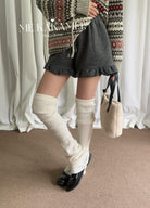【C7982】冬新品韓系簡約木耳花邊加厚加絨純色百搭顯瘦休閒短褲