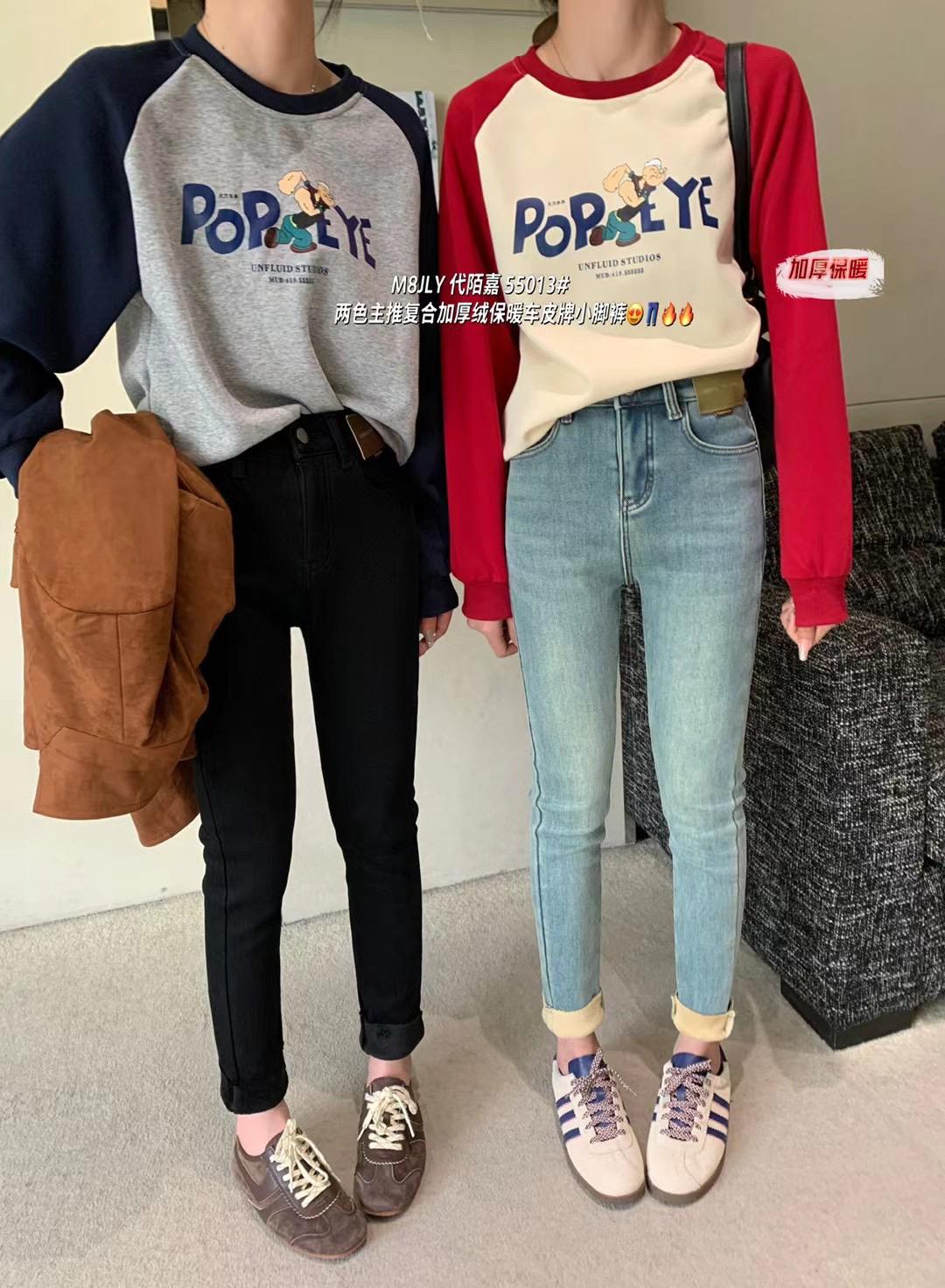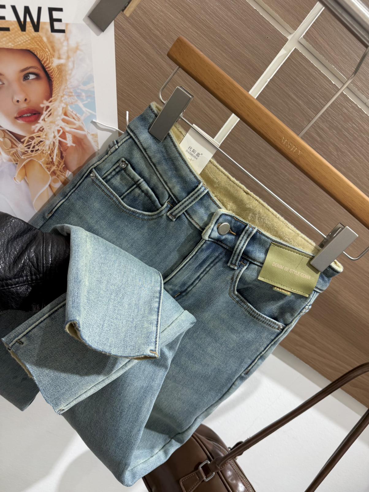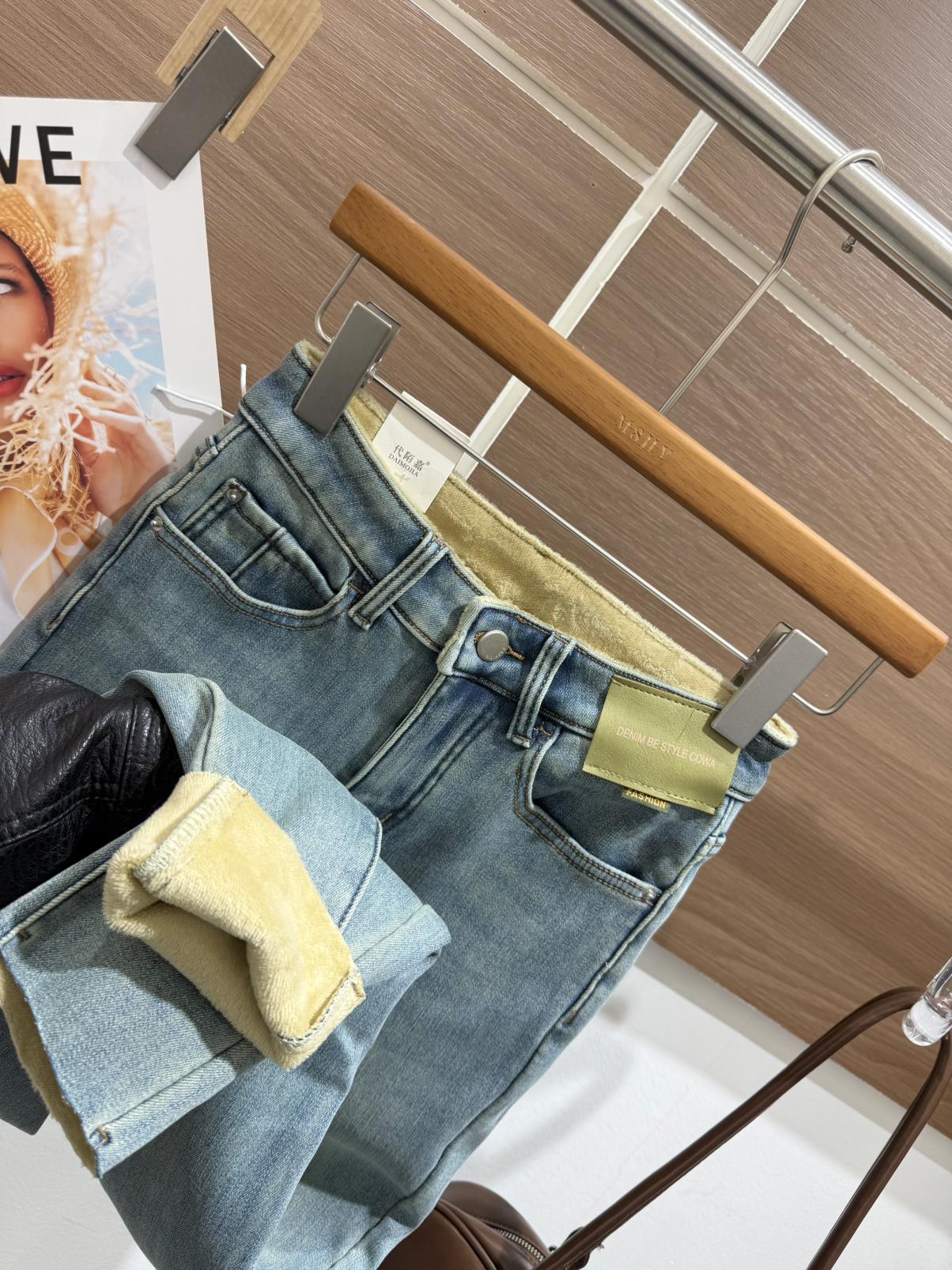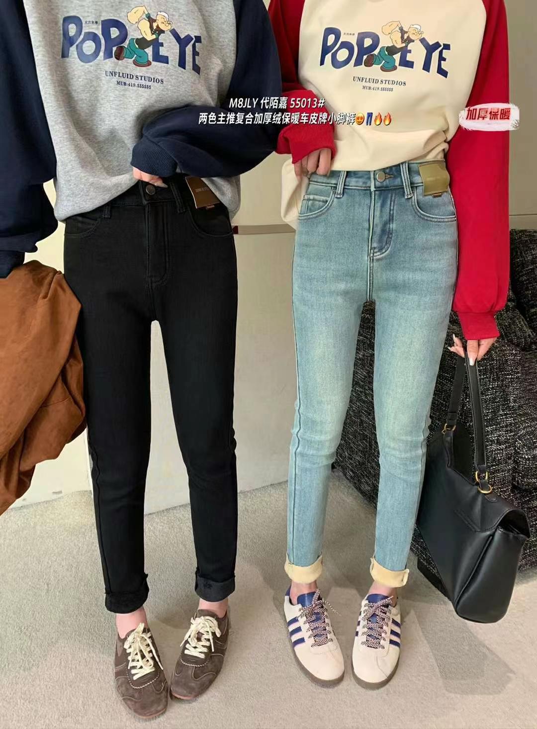 3. 【C7985】冬季加厚複合水貂絨修身顯瘦彈力反季色小腳褲牛仔褲