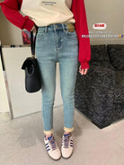 【C7985】冬季加厚複合水貂絨修身顯瘦彈力反季色小腳褲牛仔褲