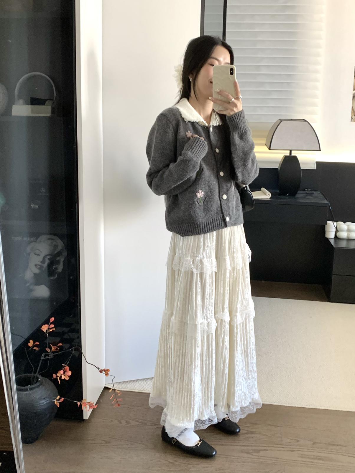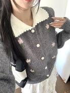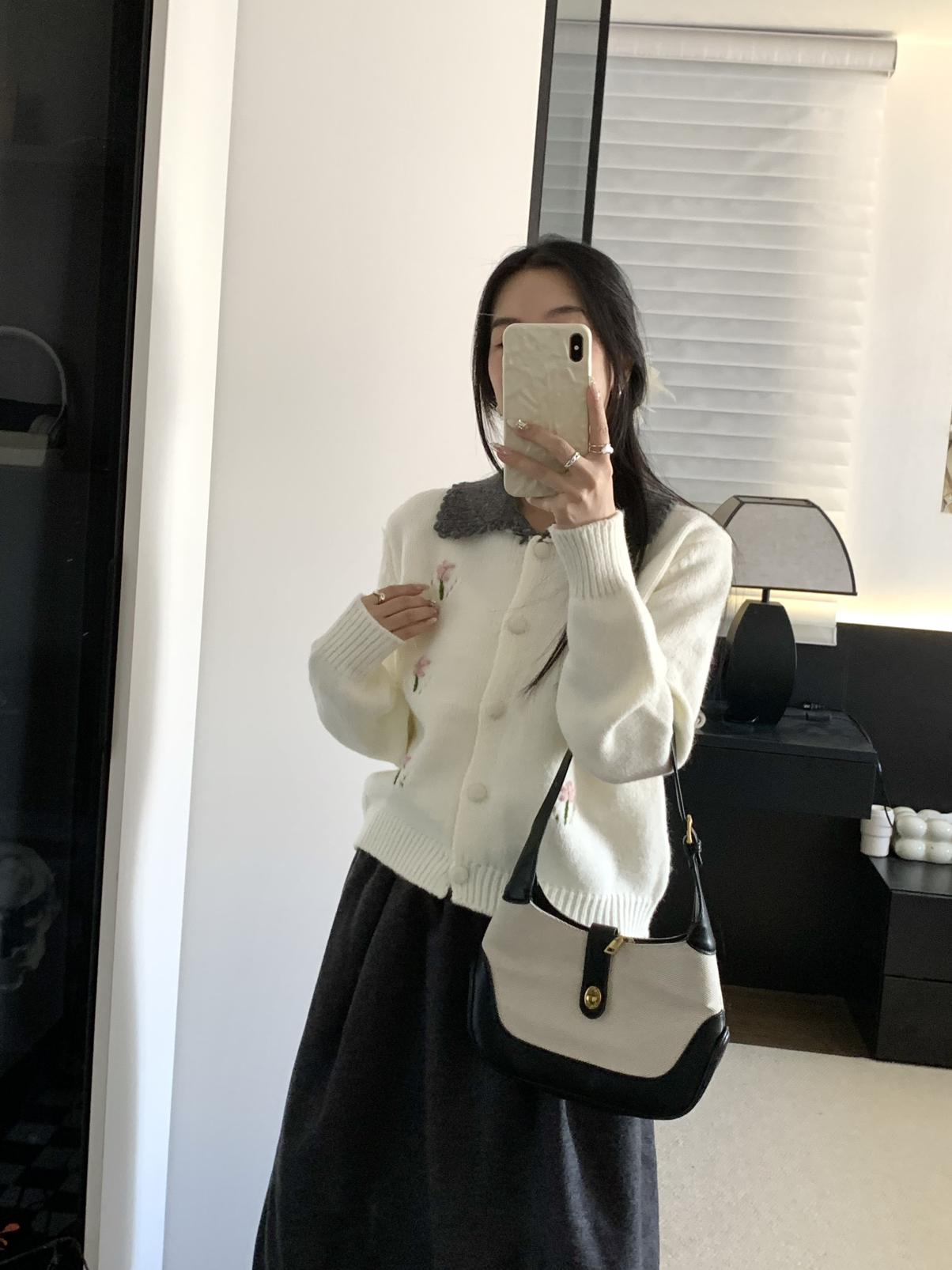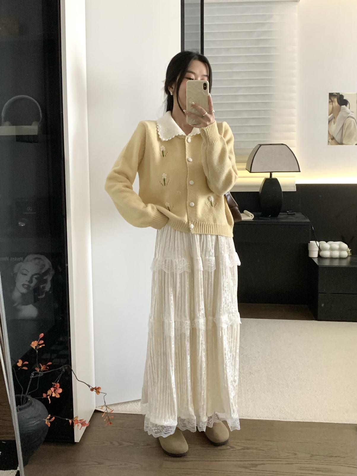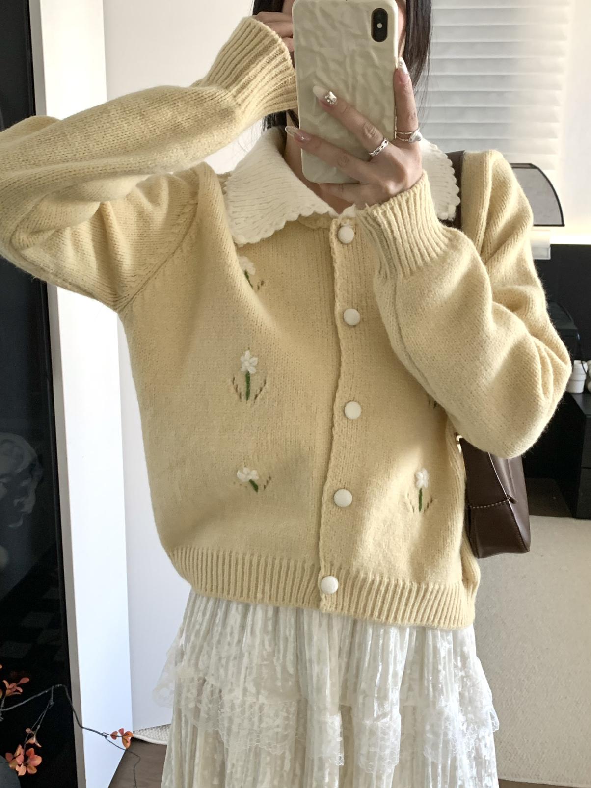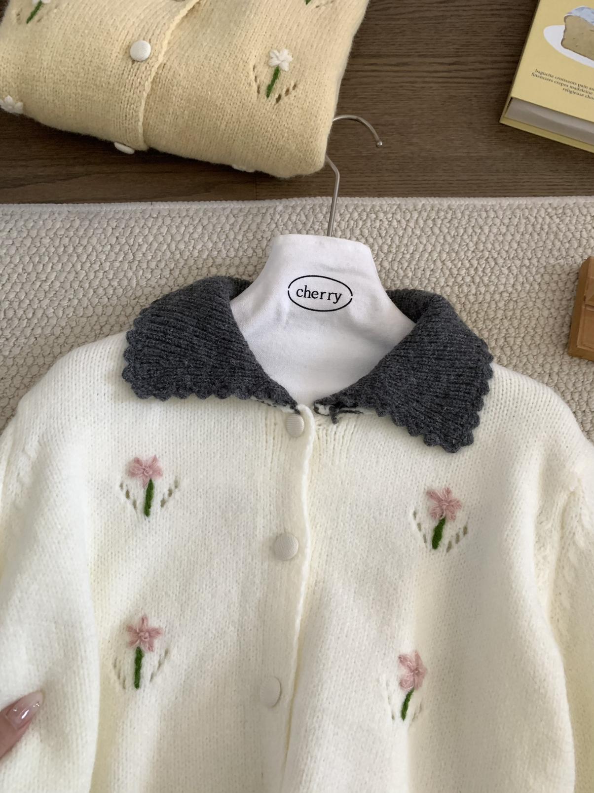 3. 【C7986】小清新重工手工鉤花翻領保暖毛衣