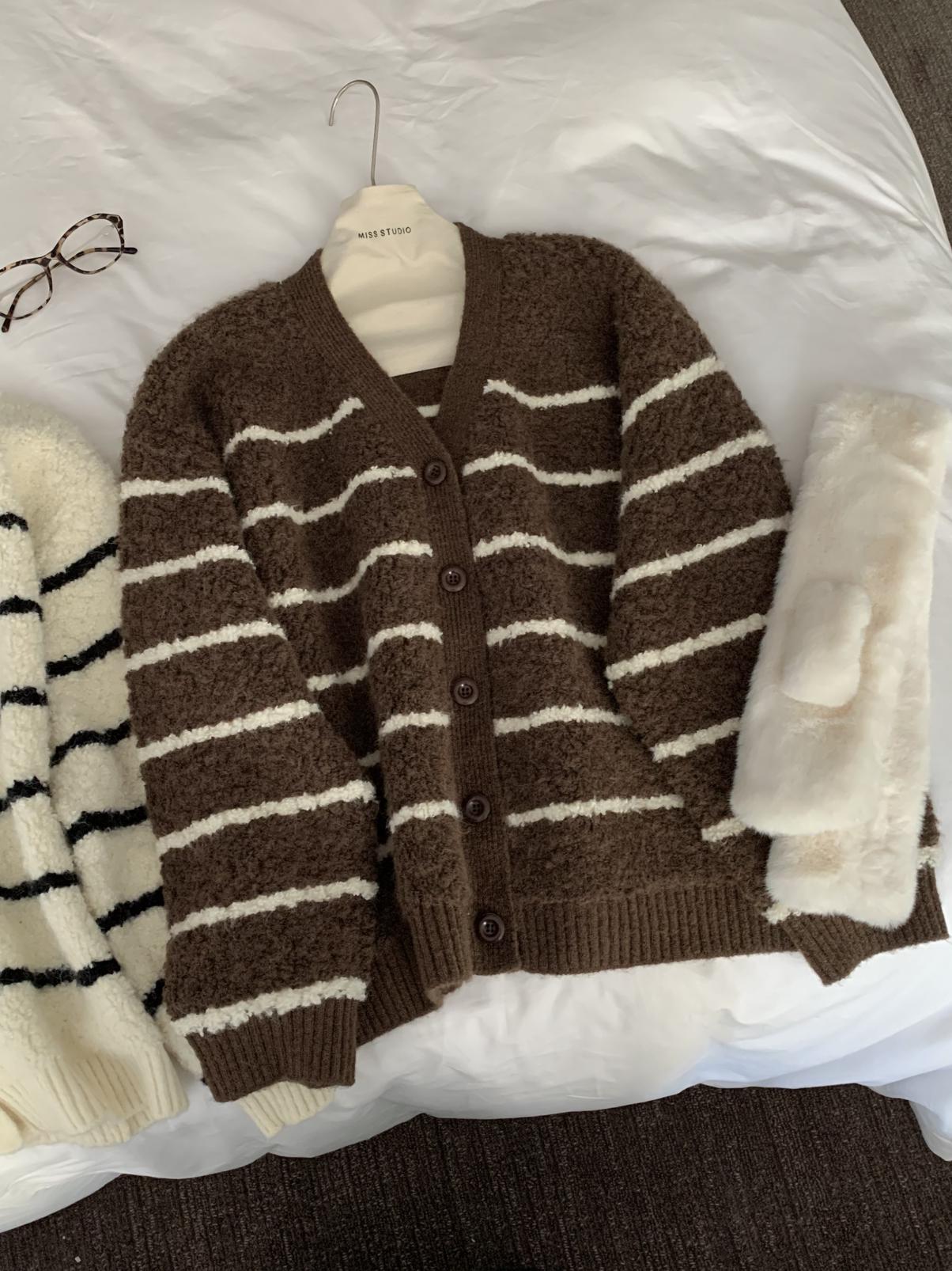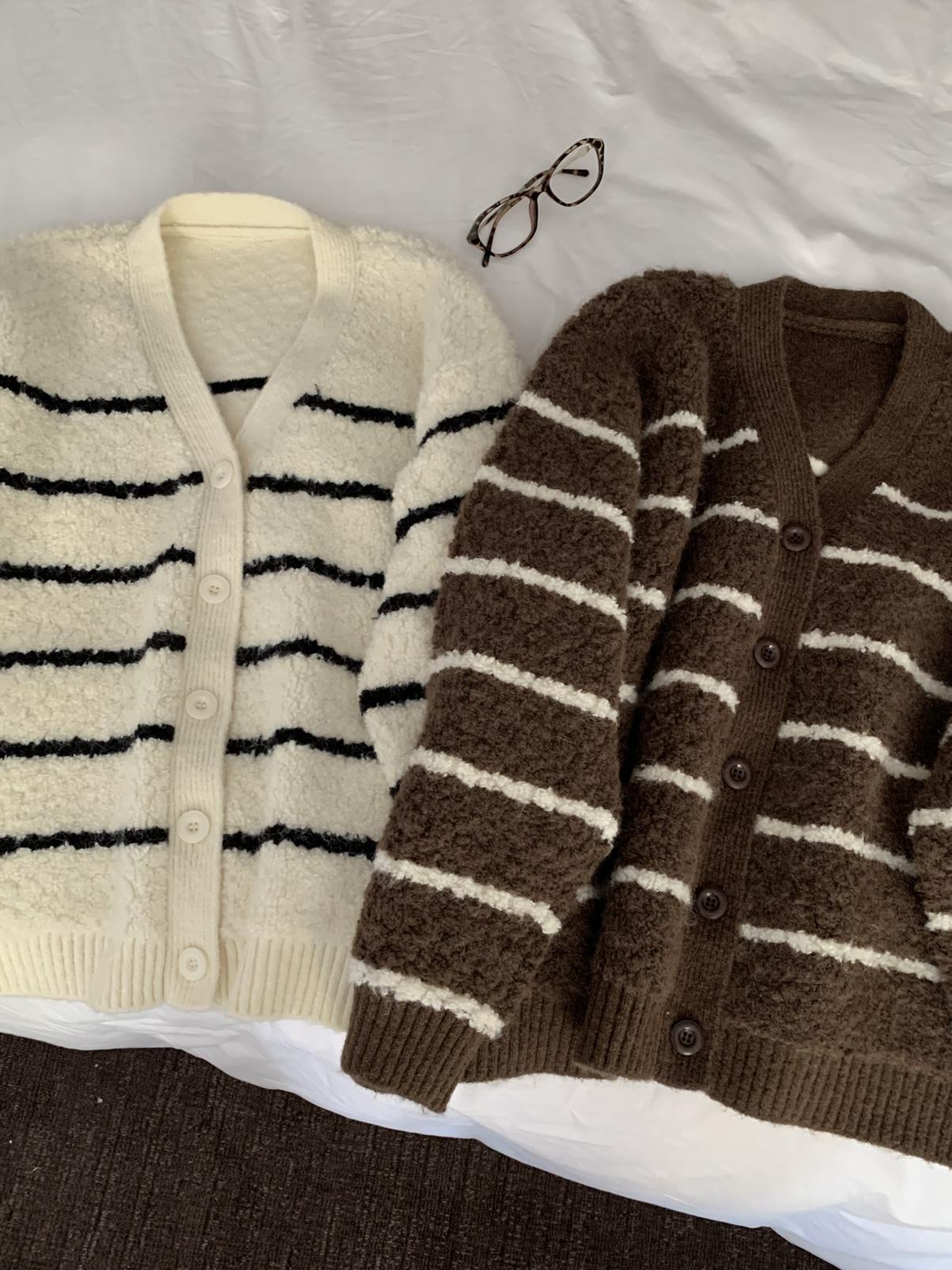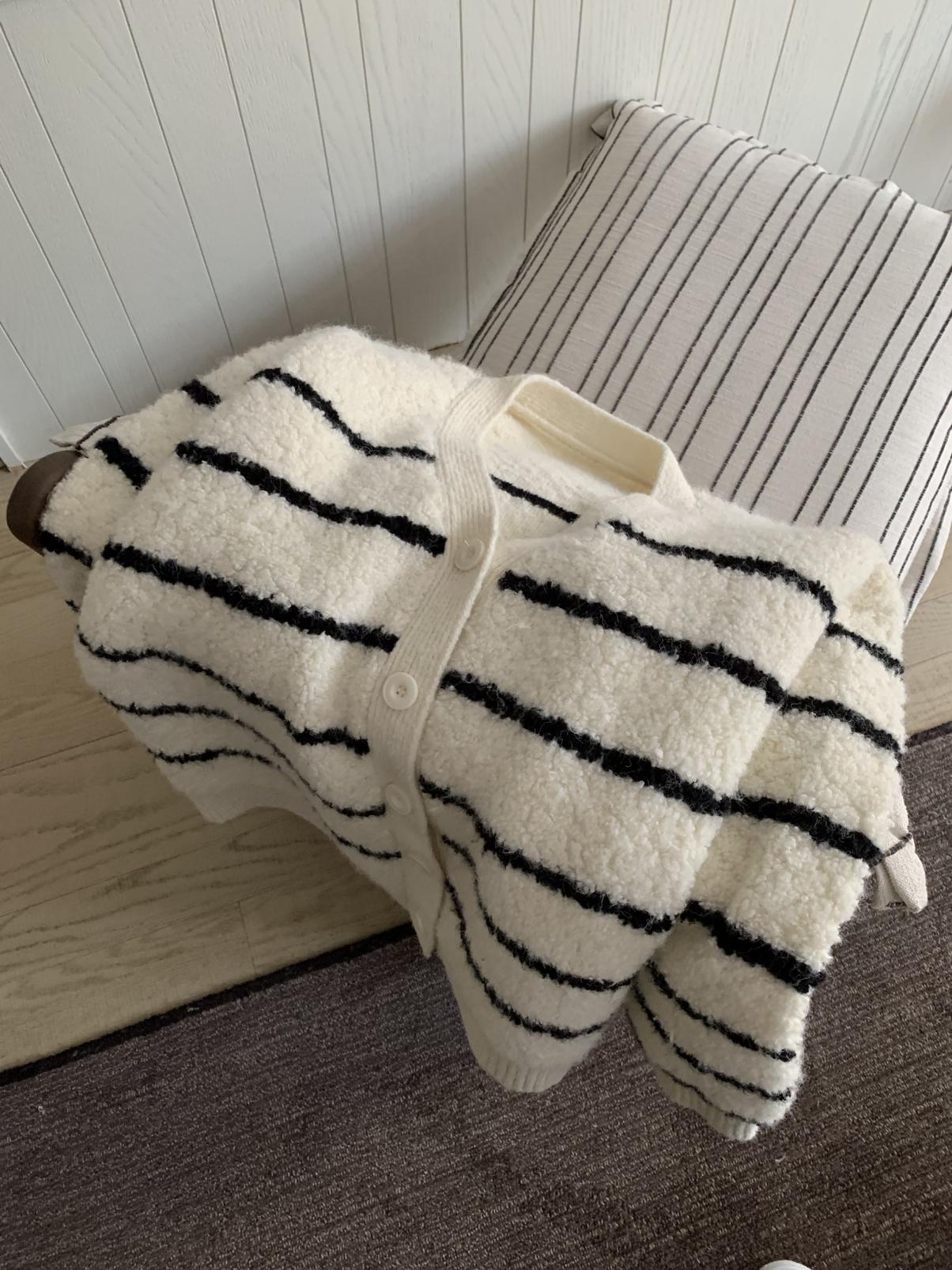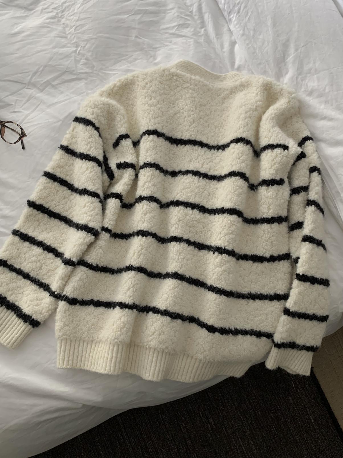 【C7991】條紋氛圍感✨軟糯糯超舒適條紋開衫保暖毛衣(含6.3%綿羊毛)