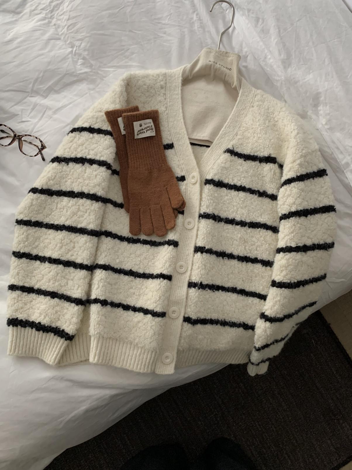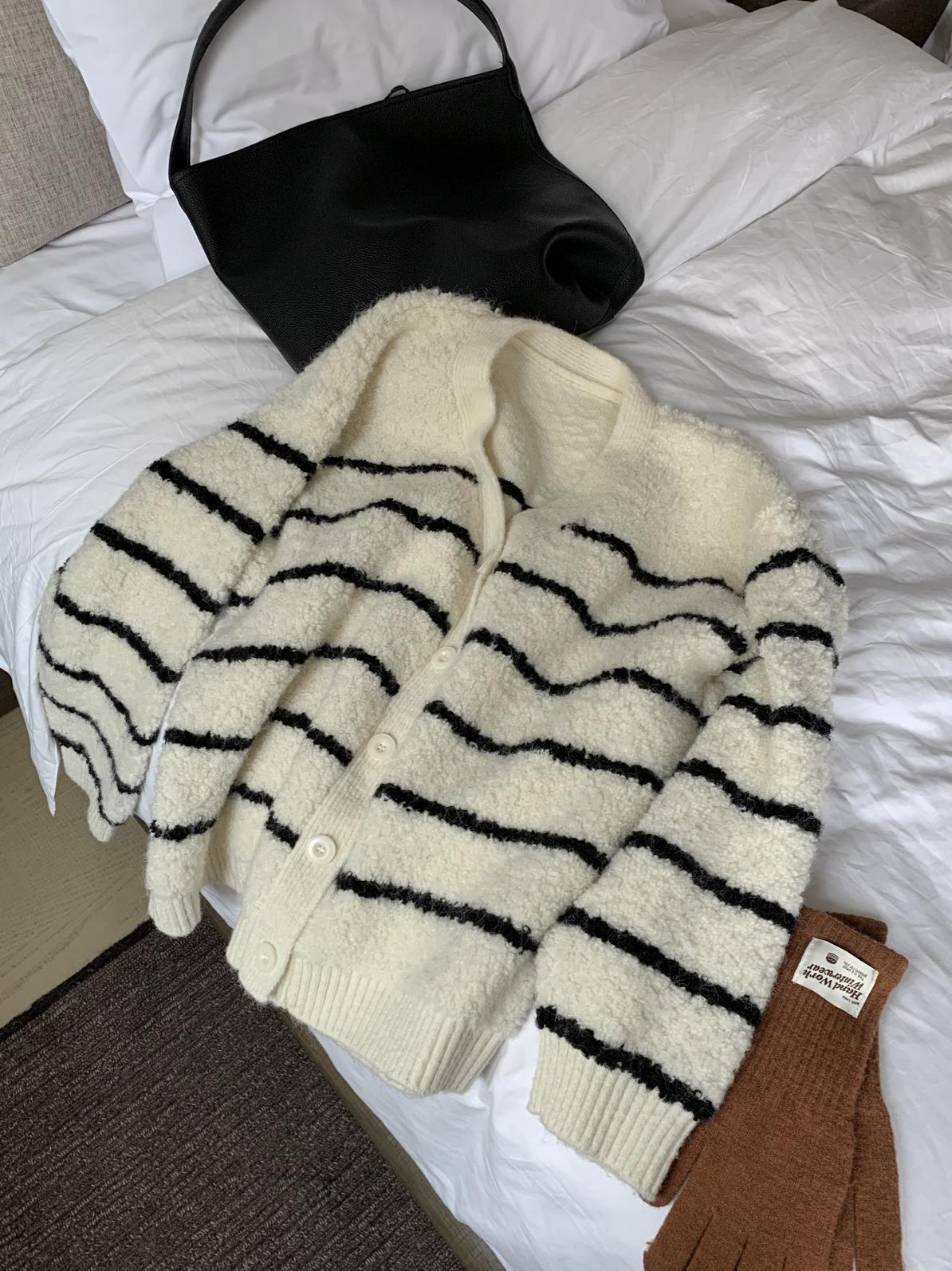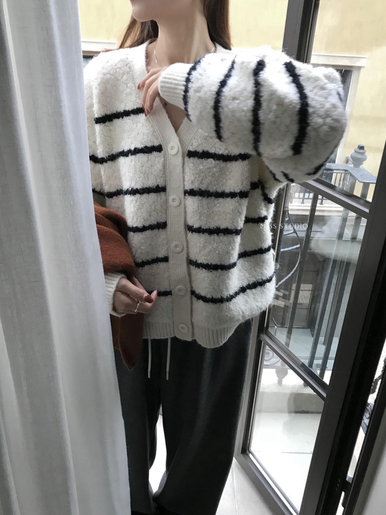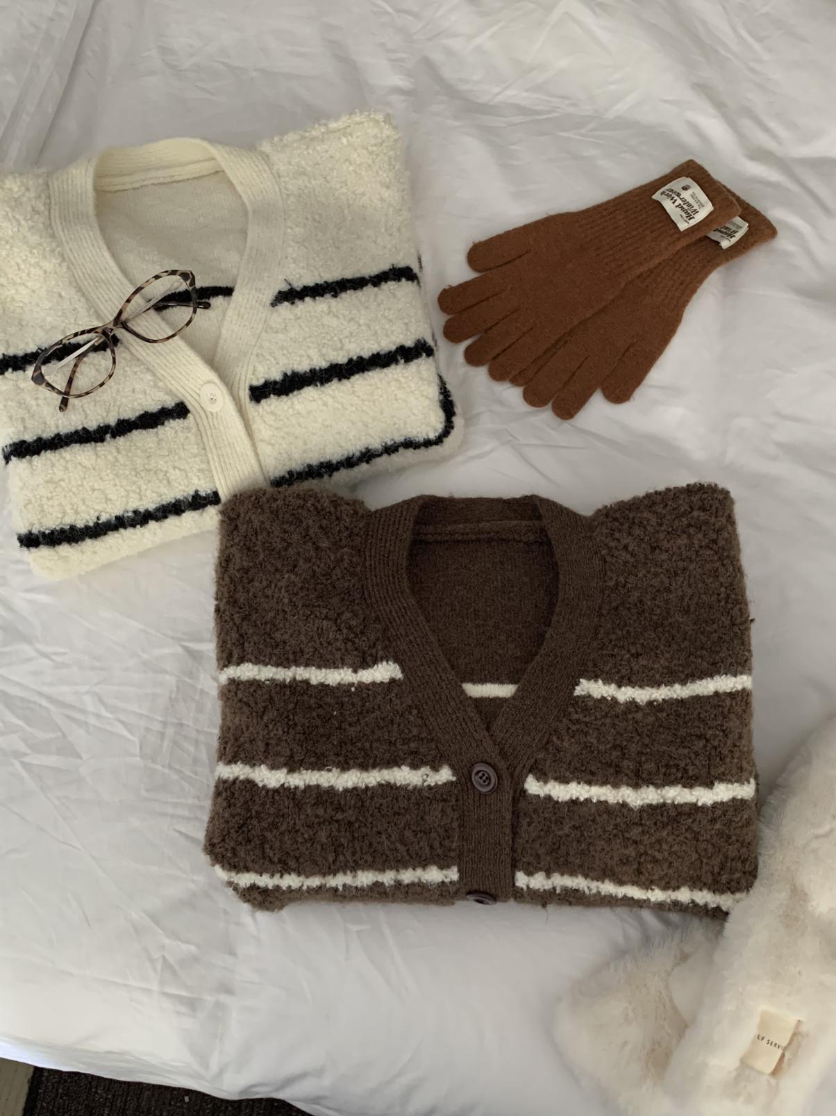 【C7991】條紋氛圍感✨軟糯糯超舒適條紋開衫保暖毛衣(含6.3%綿羊毛)