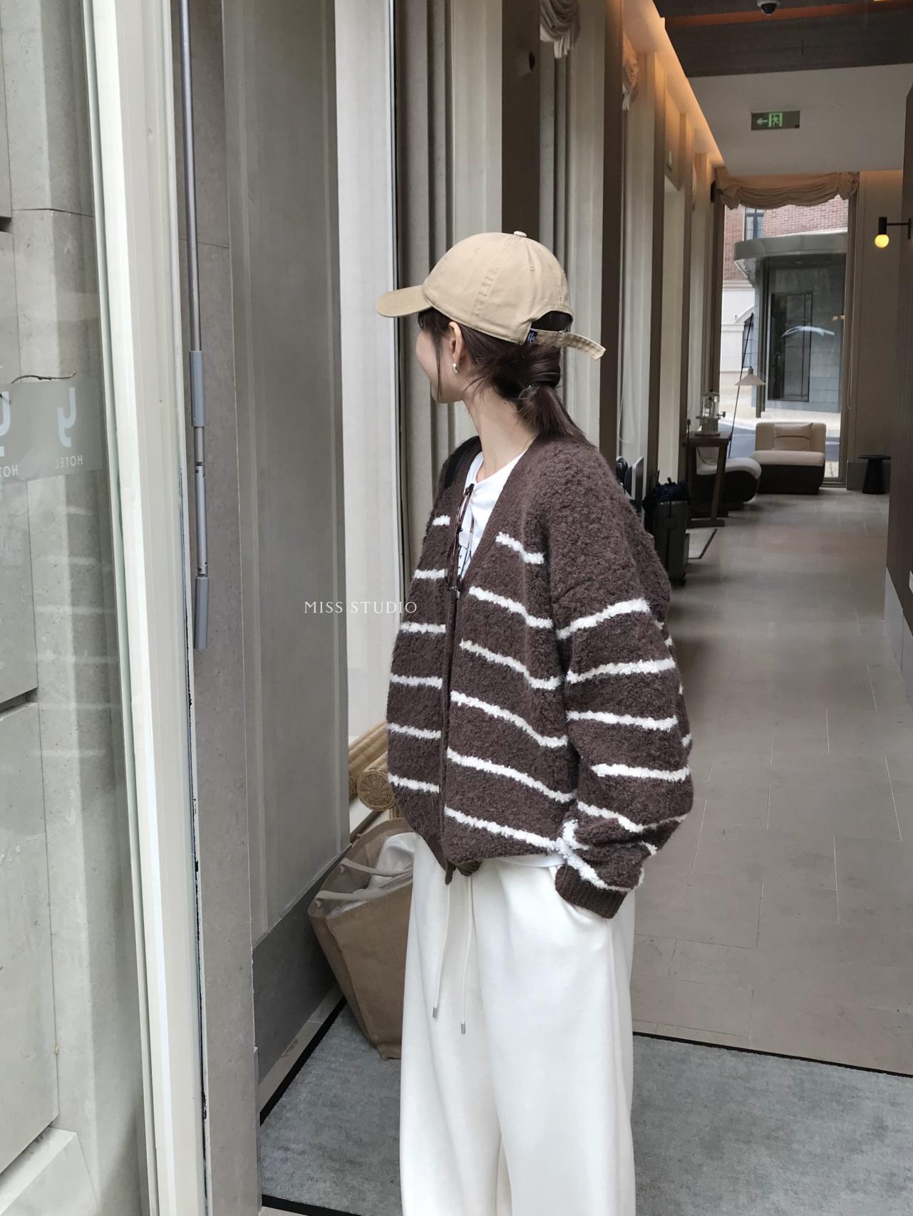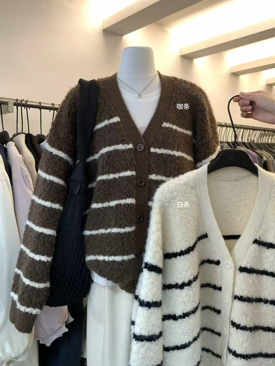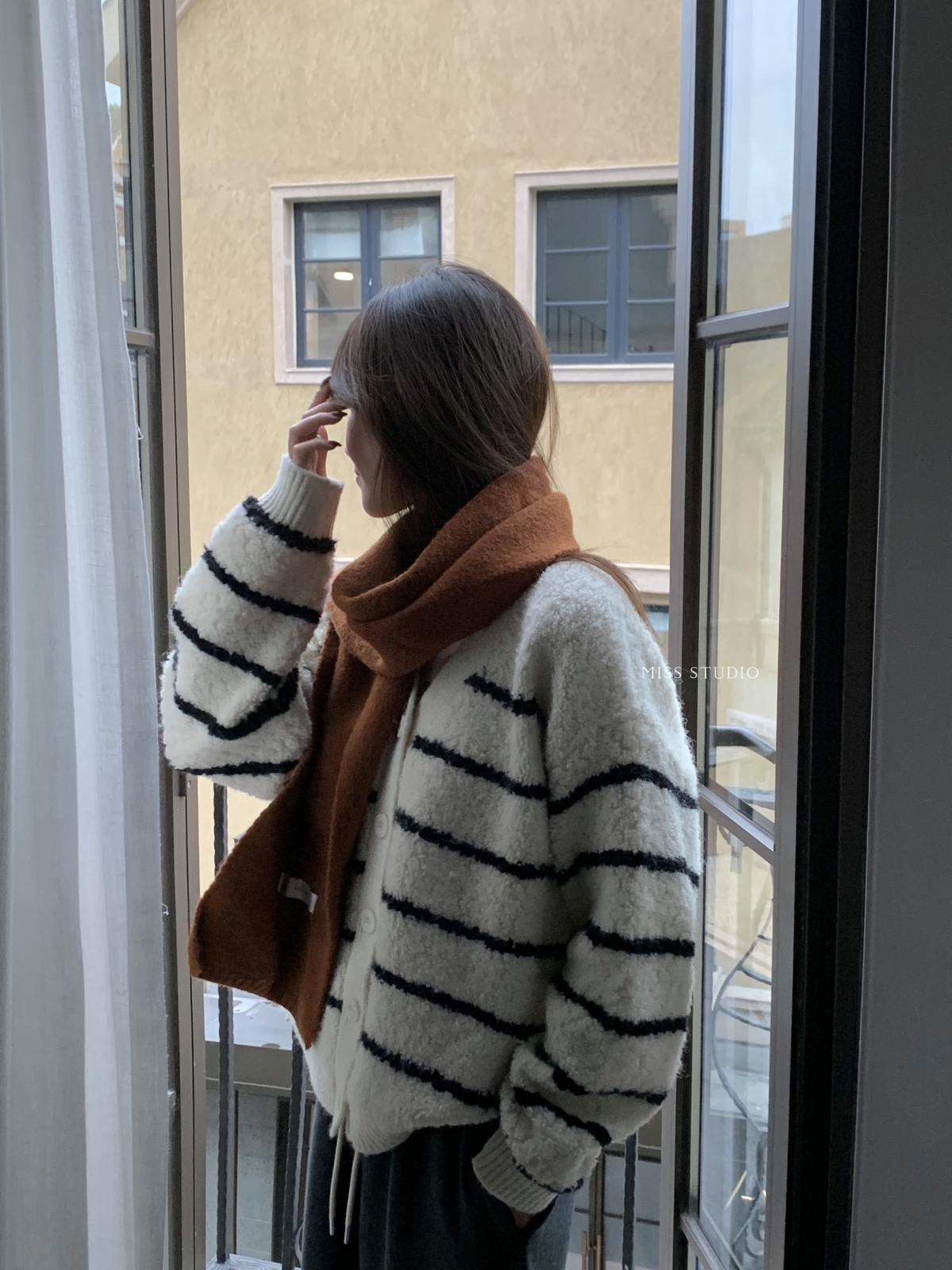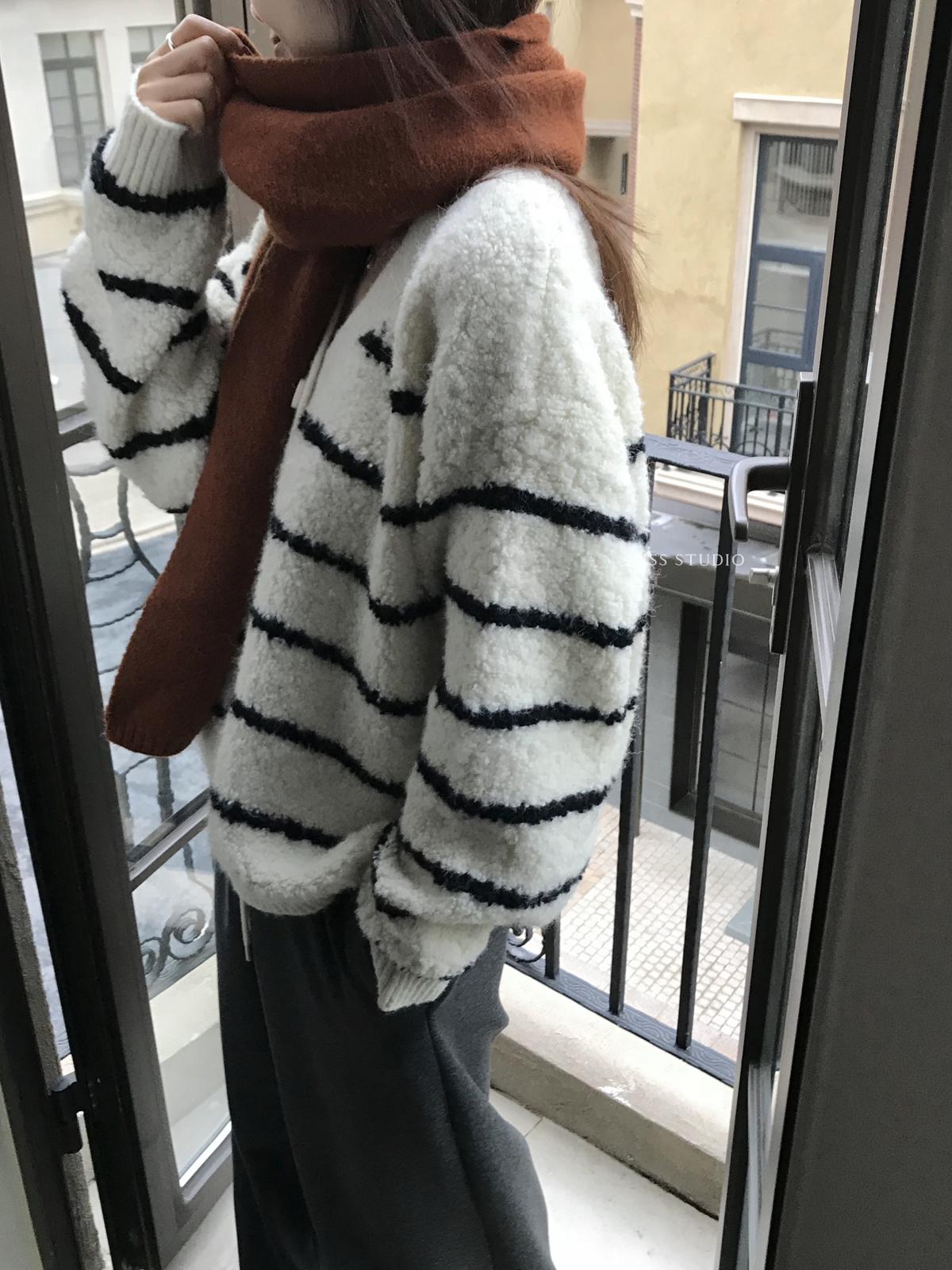 【C7991】條紋氛圍感✨軟糯糯超舒適條紋開衫保暖毛衣(含6.3%綿羊毛)
