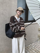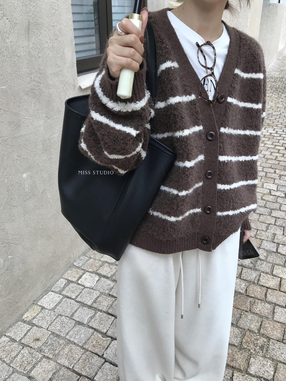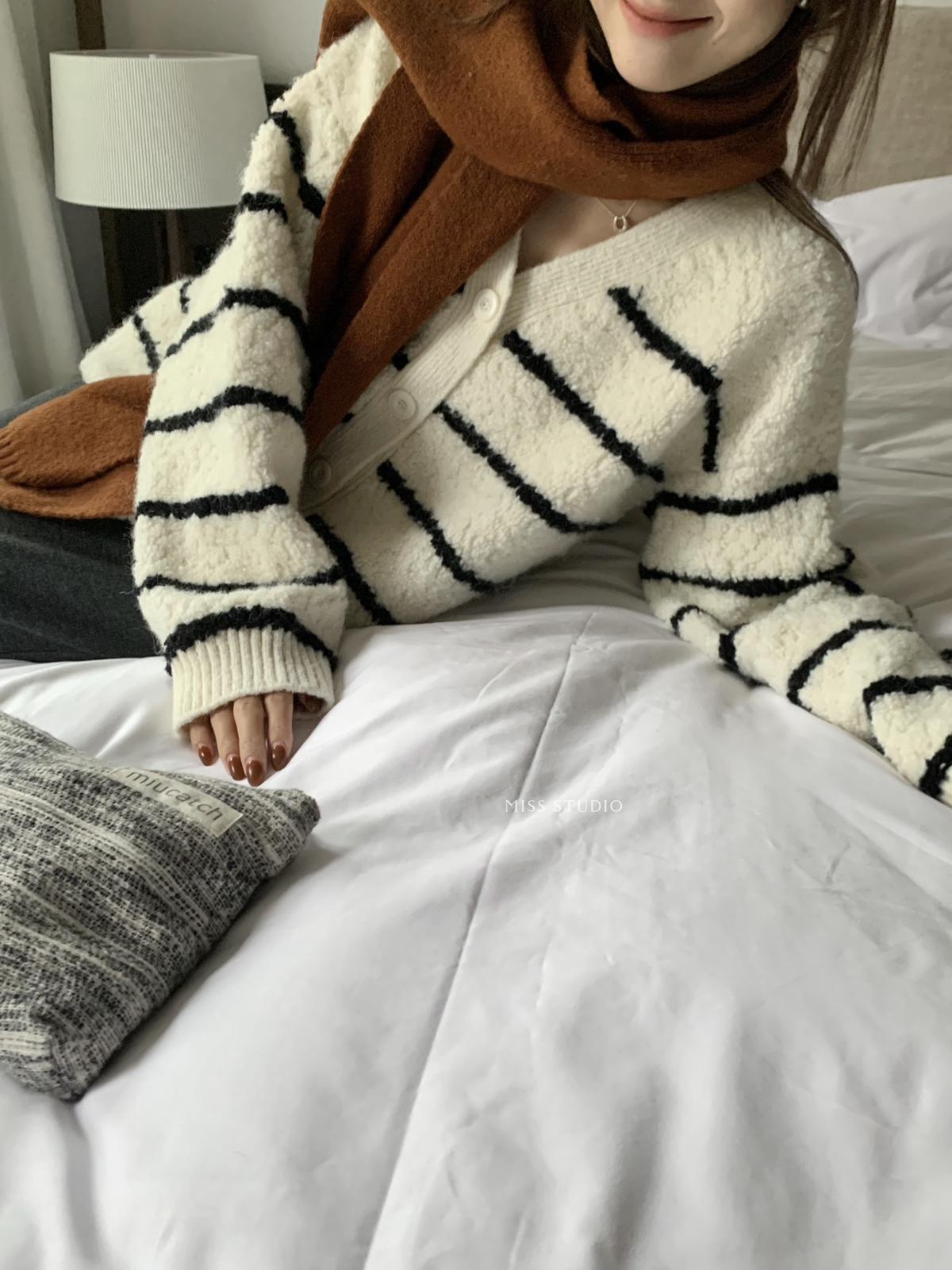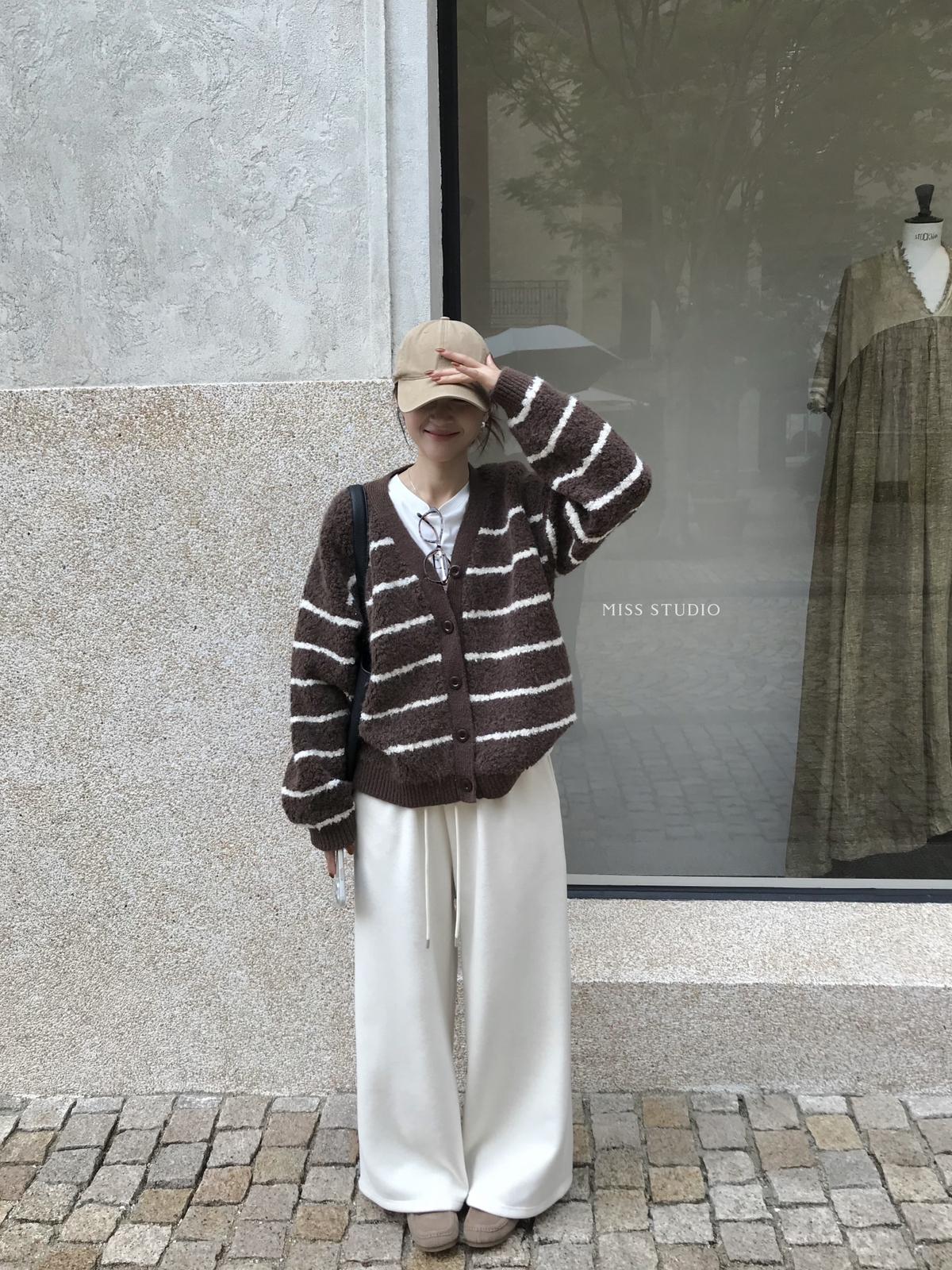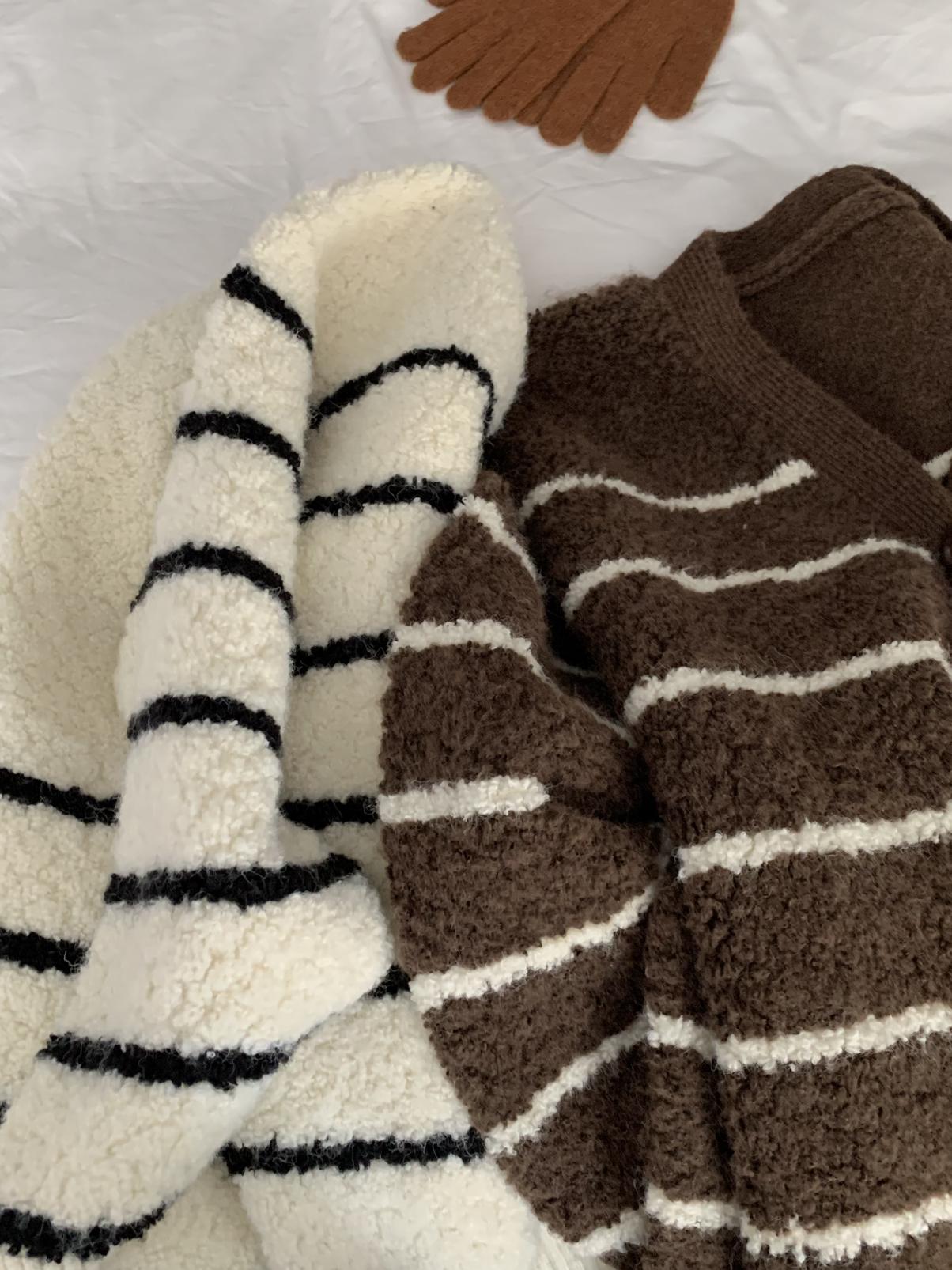 【C7991】條紋氛圍感✨軟糯糯超舒適條紋開衫保暖毛衣(含6.3%綿羊毛)
