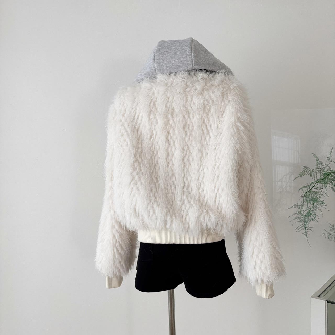 3. 【C7994】韓系環保毛拼接連帽短外套