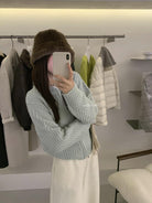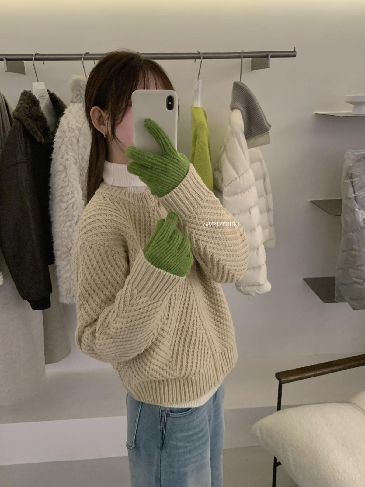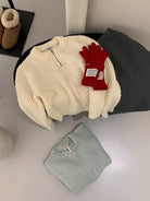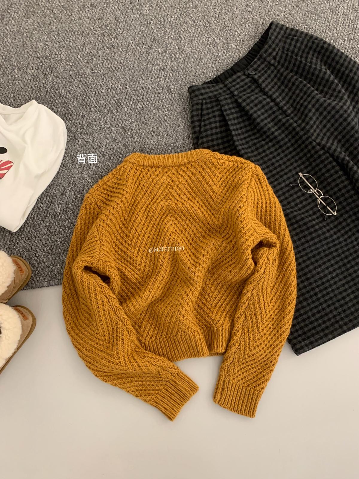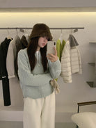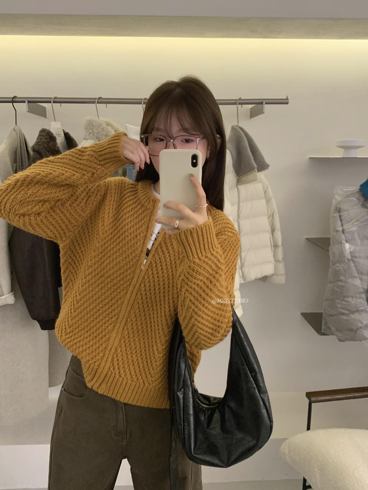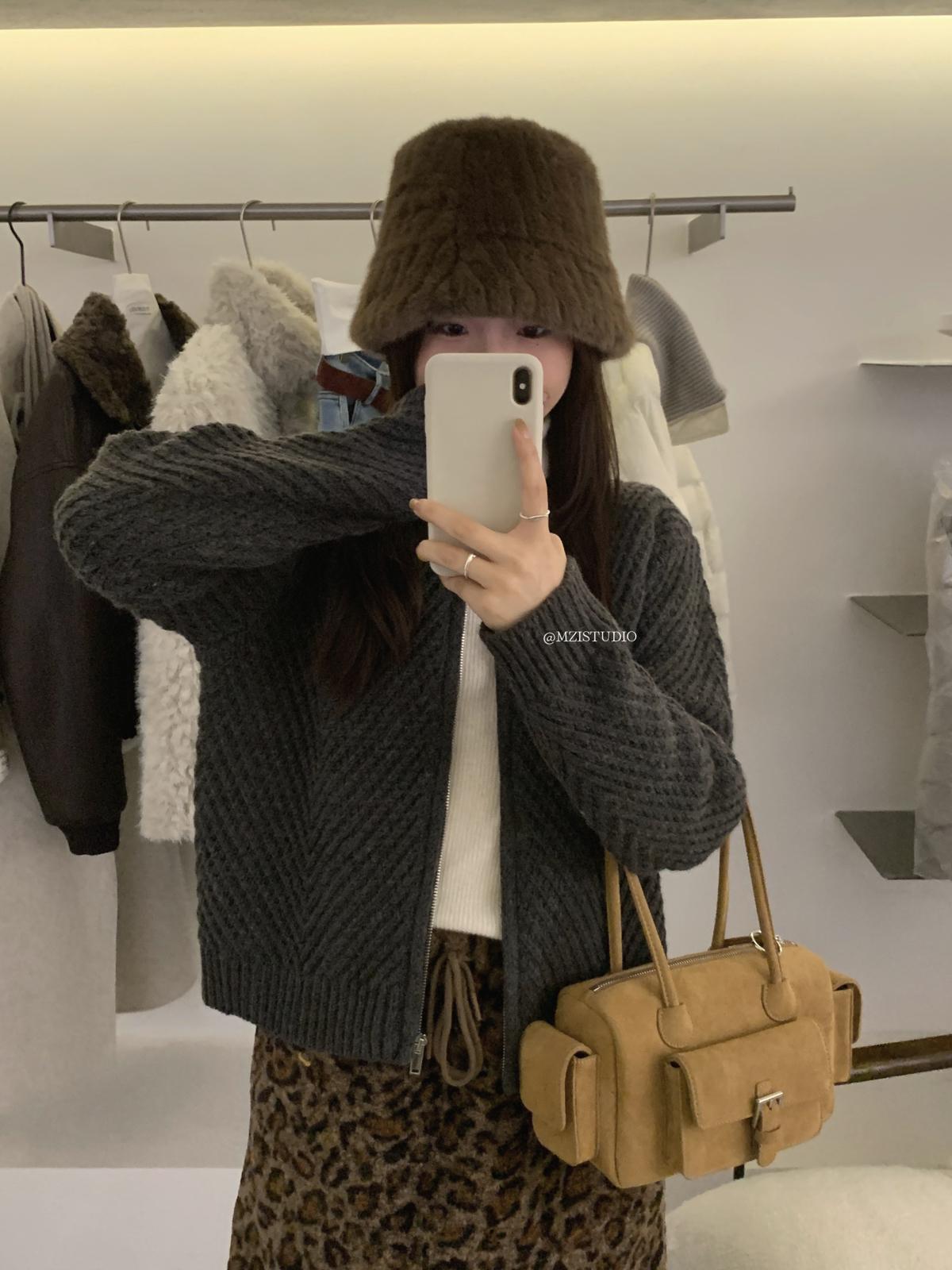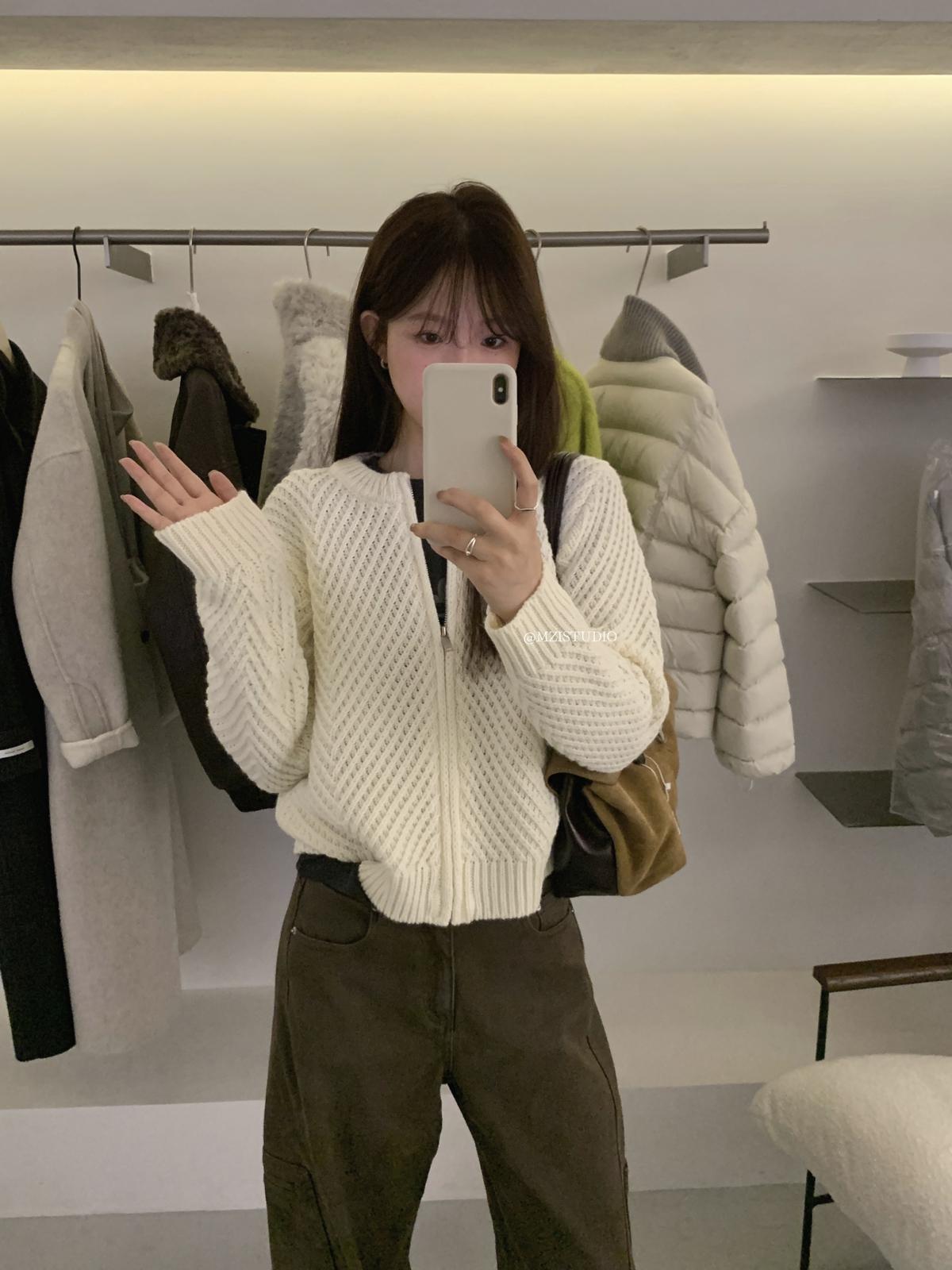 【C7998】輕盈自在冬季中性色調利落溫暖提花重工拉鍊圓領開衫保暖毛衣