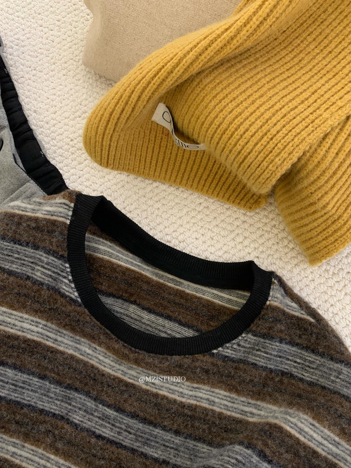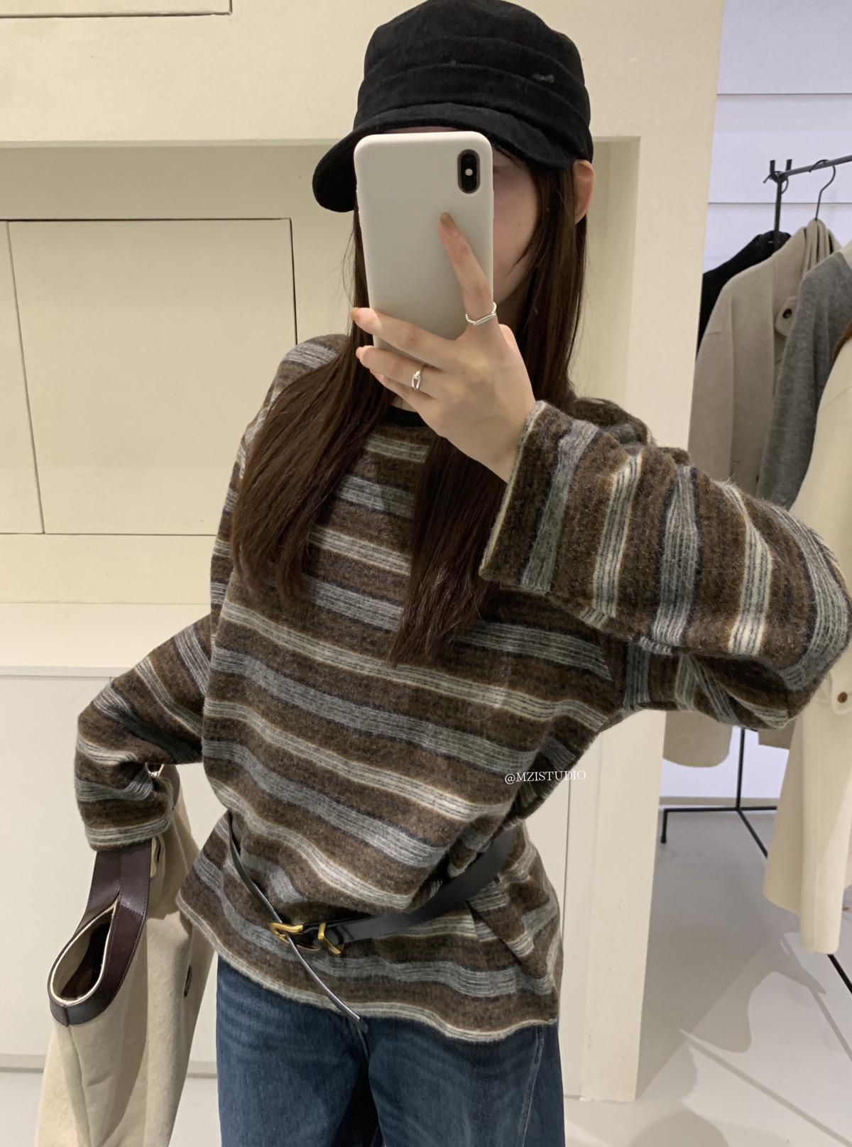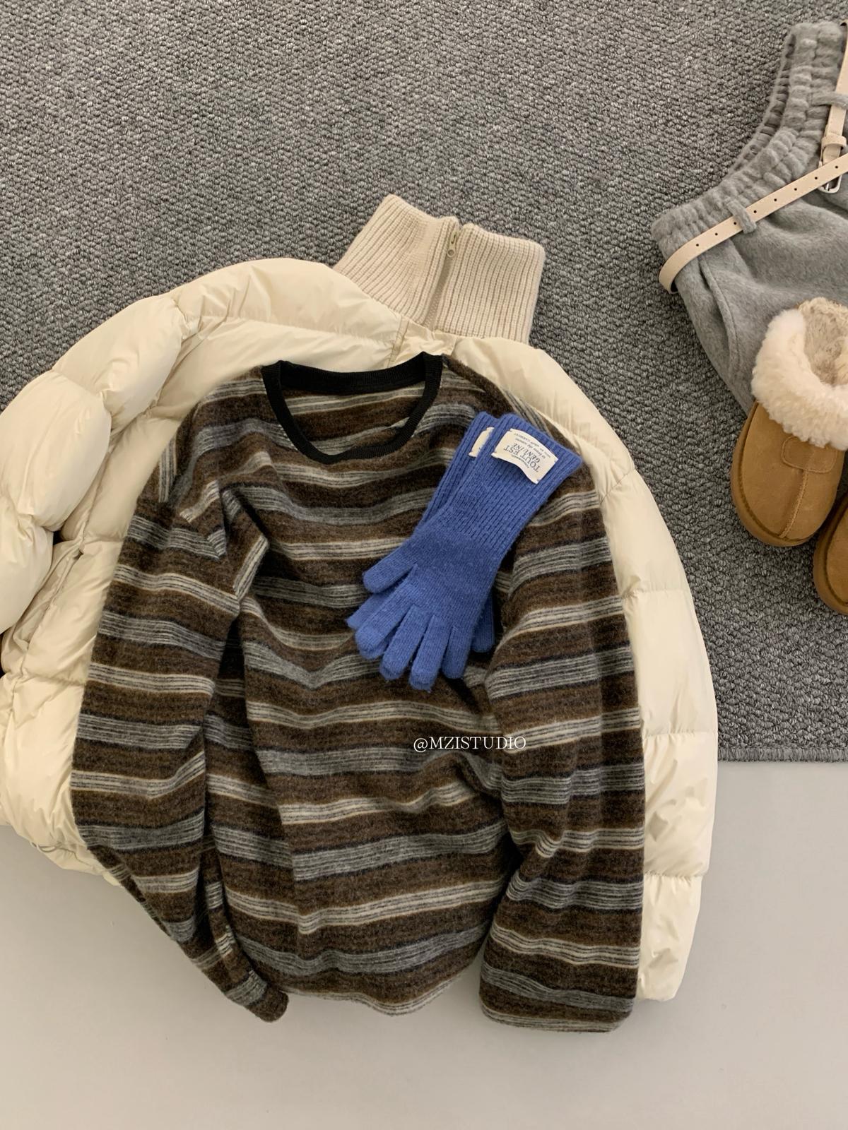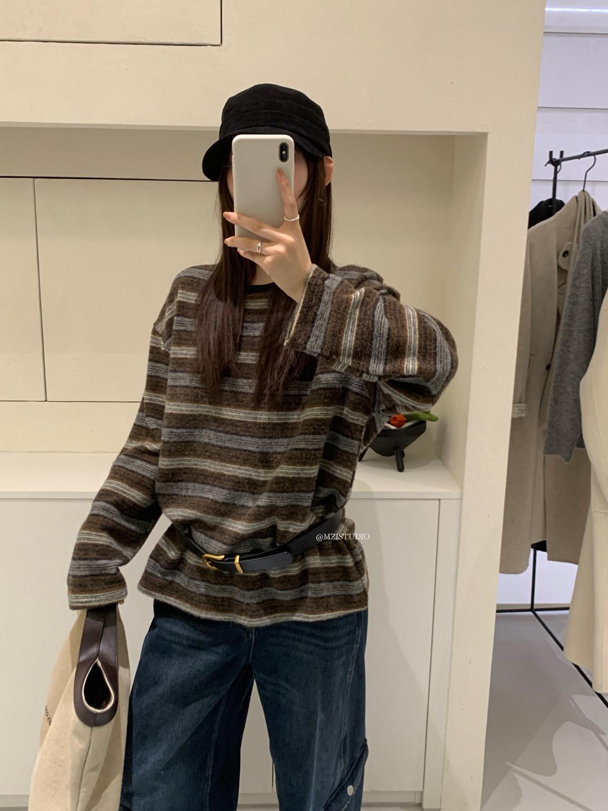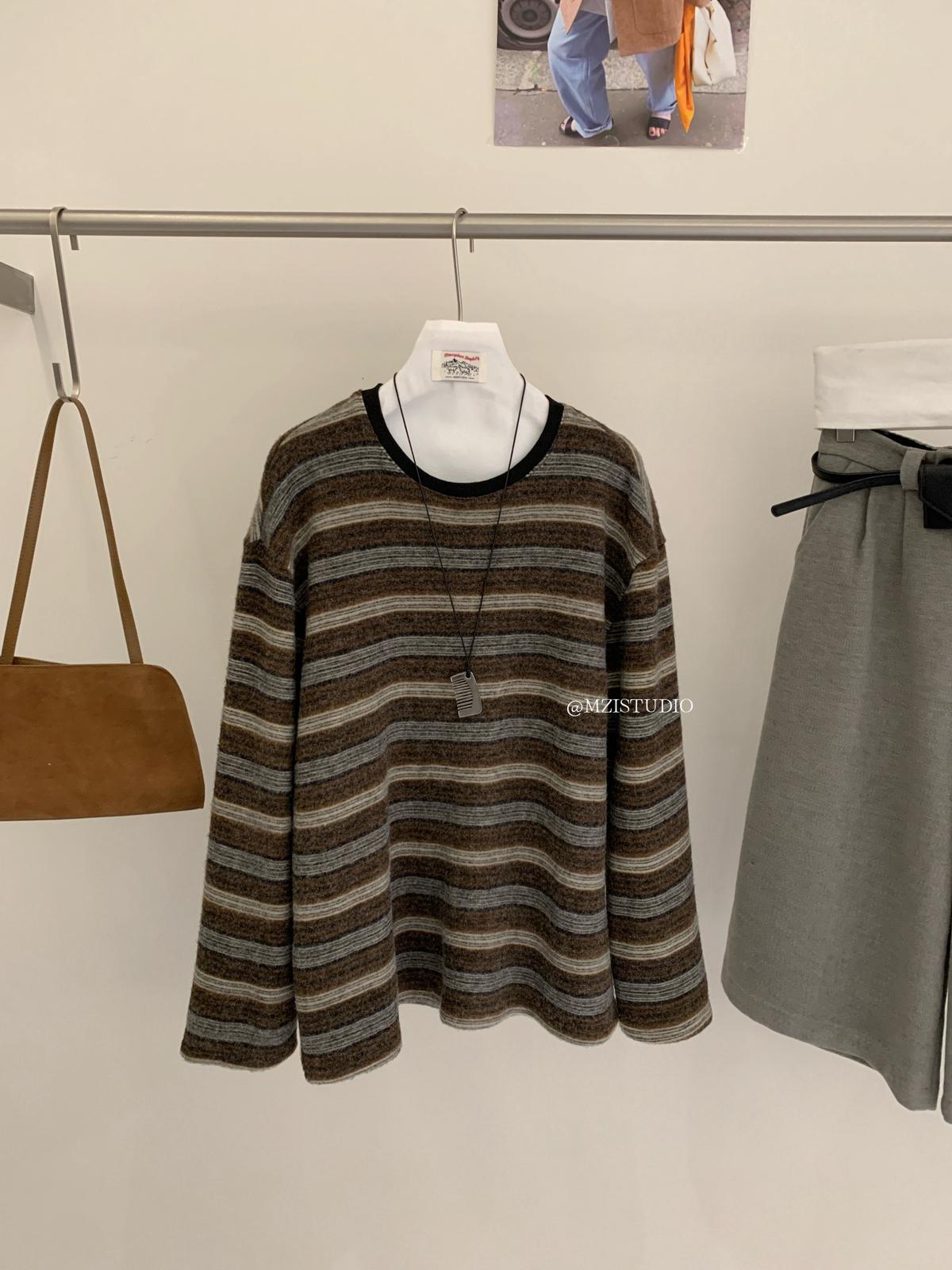 3. 【C8001】輕擁冬日溫柔毛絨條紋軟糯舒適保暖套頭長袖T恤