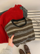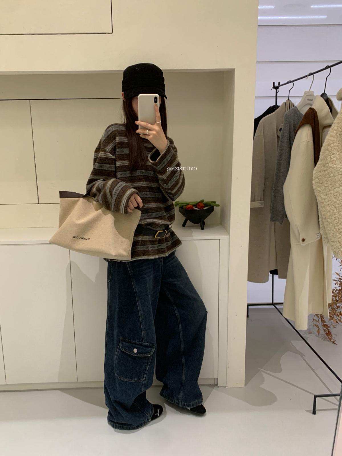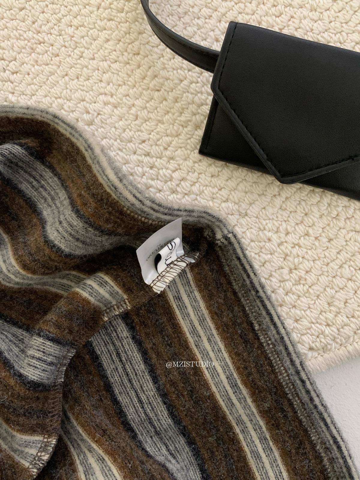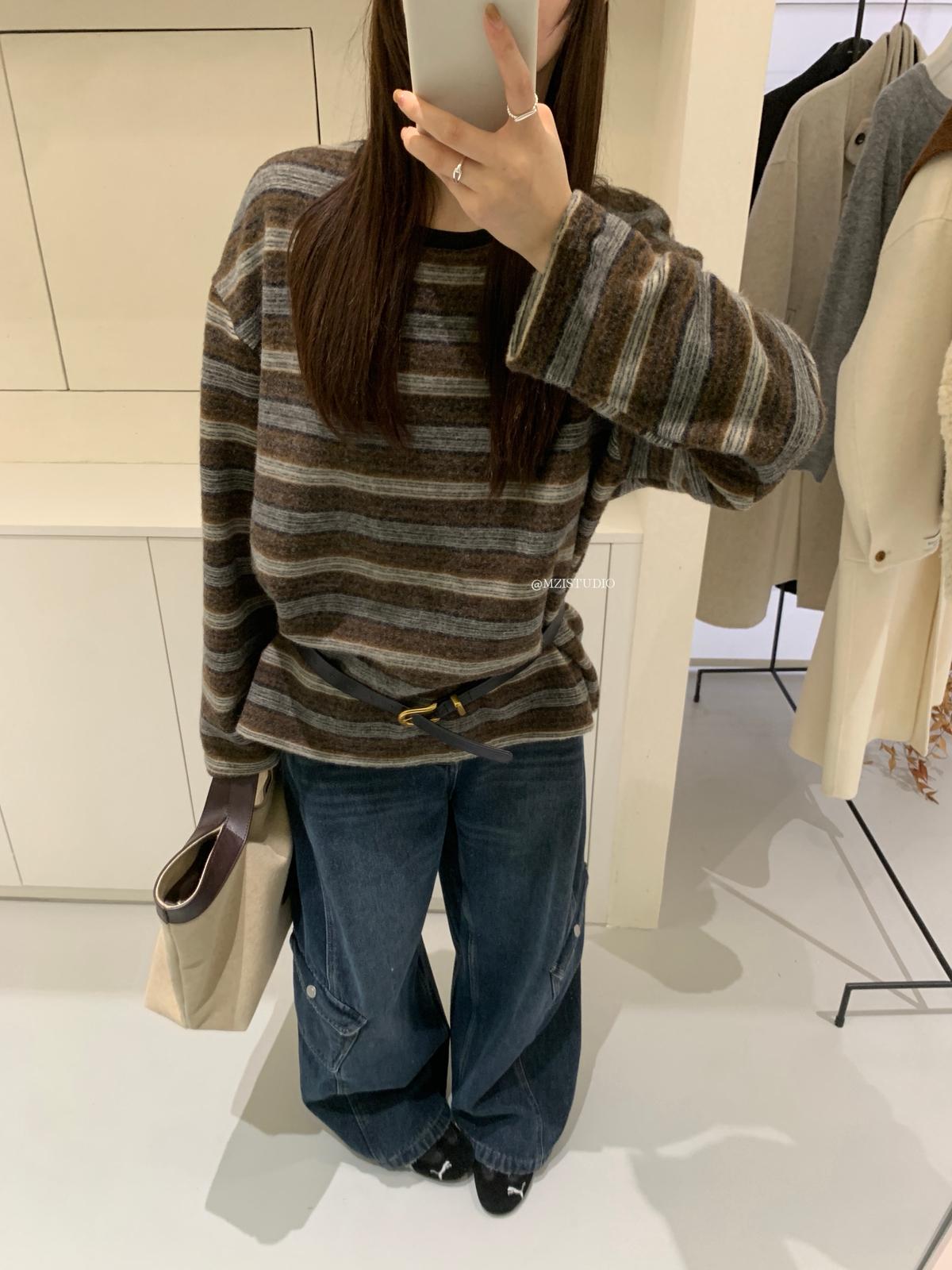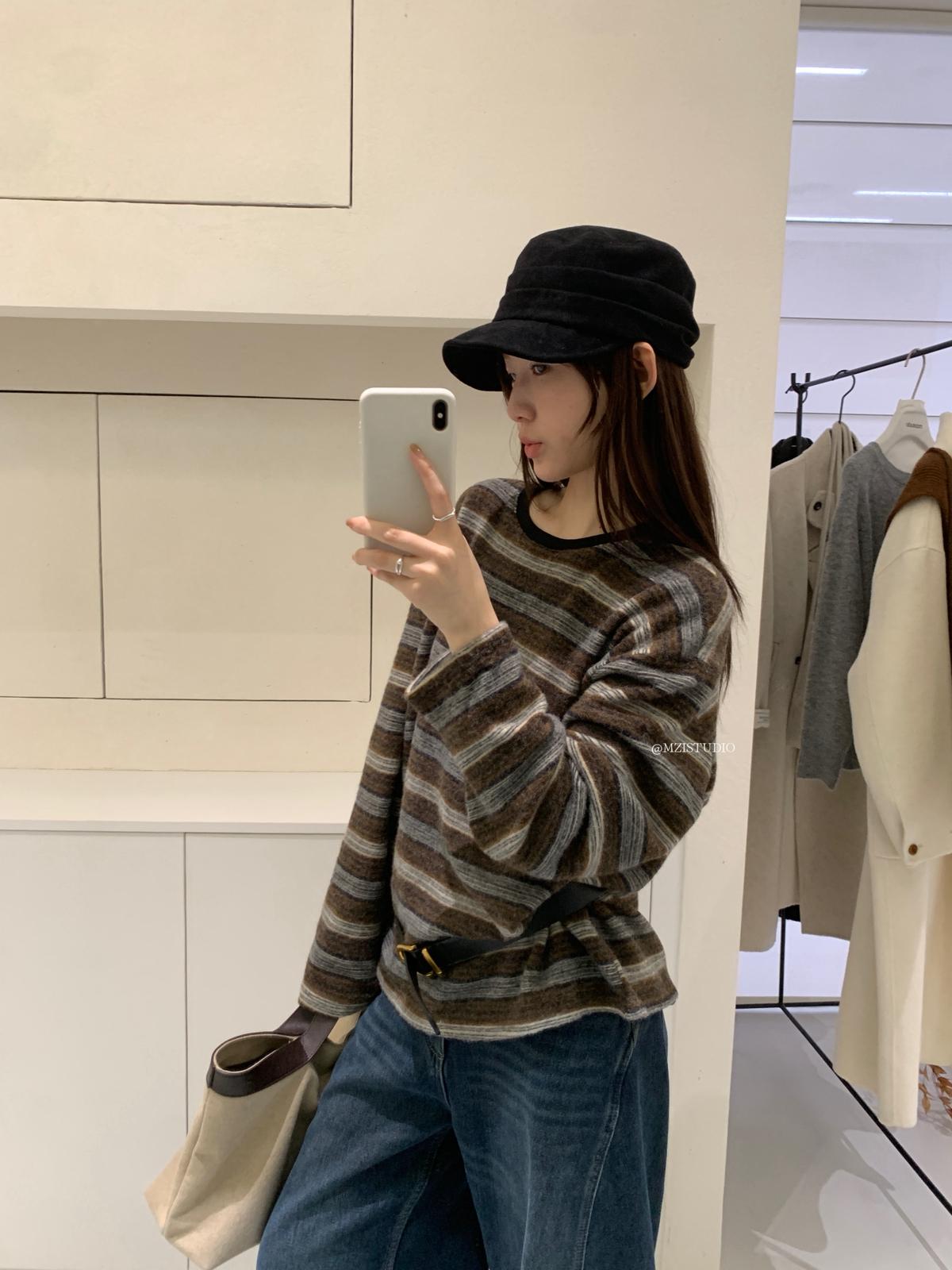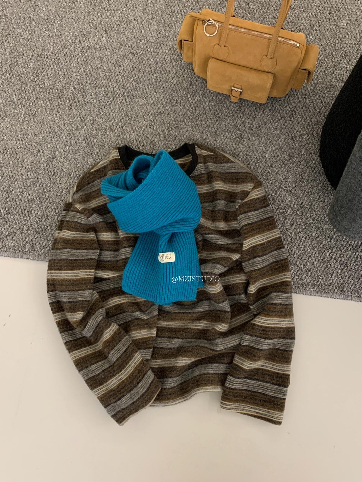 3. 【C8001】輕擁冬日溫柔毛絨條紋軟糯舒適保暖套頭長袖T恤
