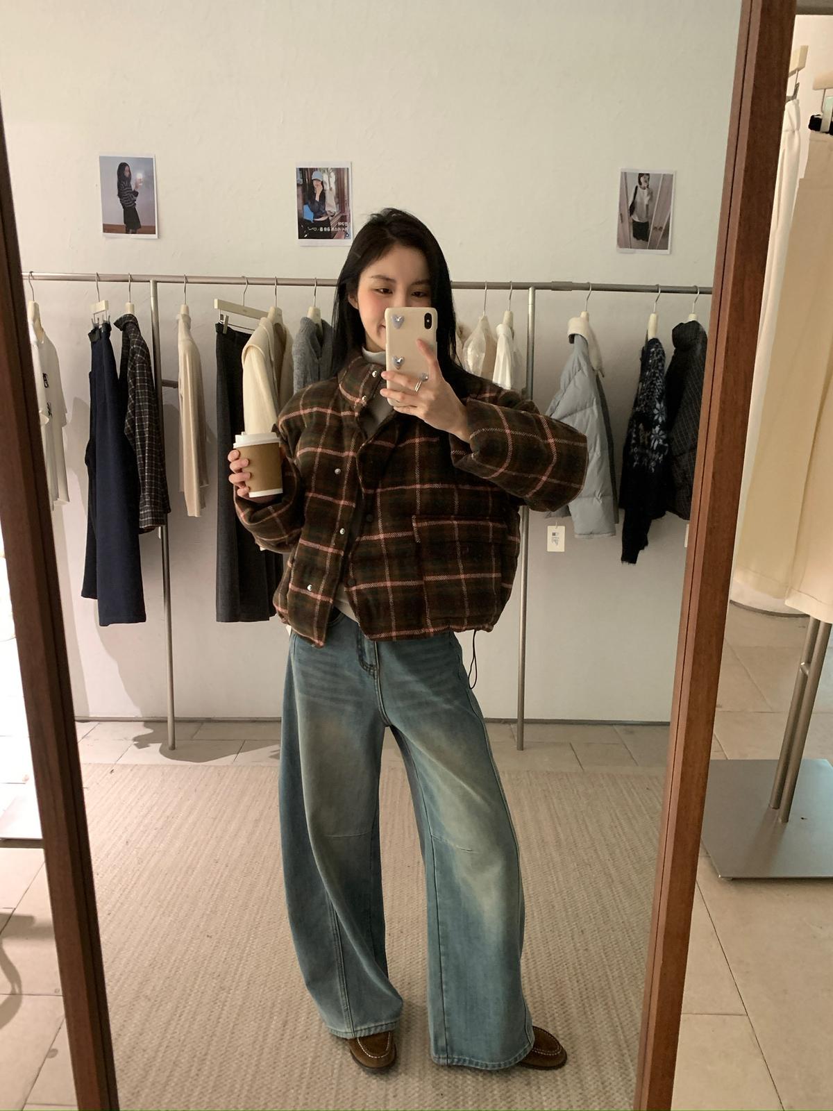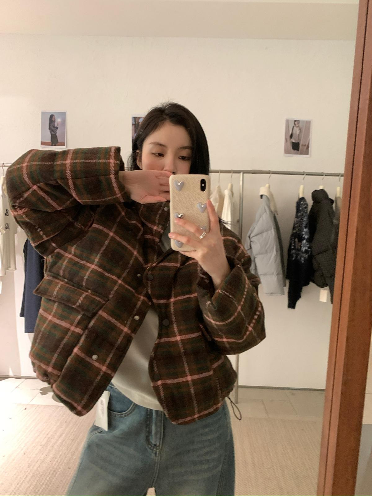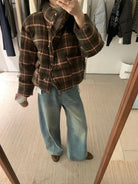 【C8004】復古大格子不規則單排扣棉服